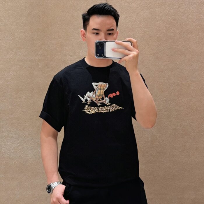 Burberry Print pattern loose Round neck T-SHIRTS Black バーバリー ロゴ プリント パターン ゆったり クルーネック Tシャツ ブラック