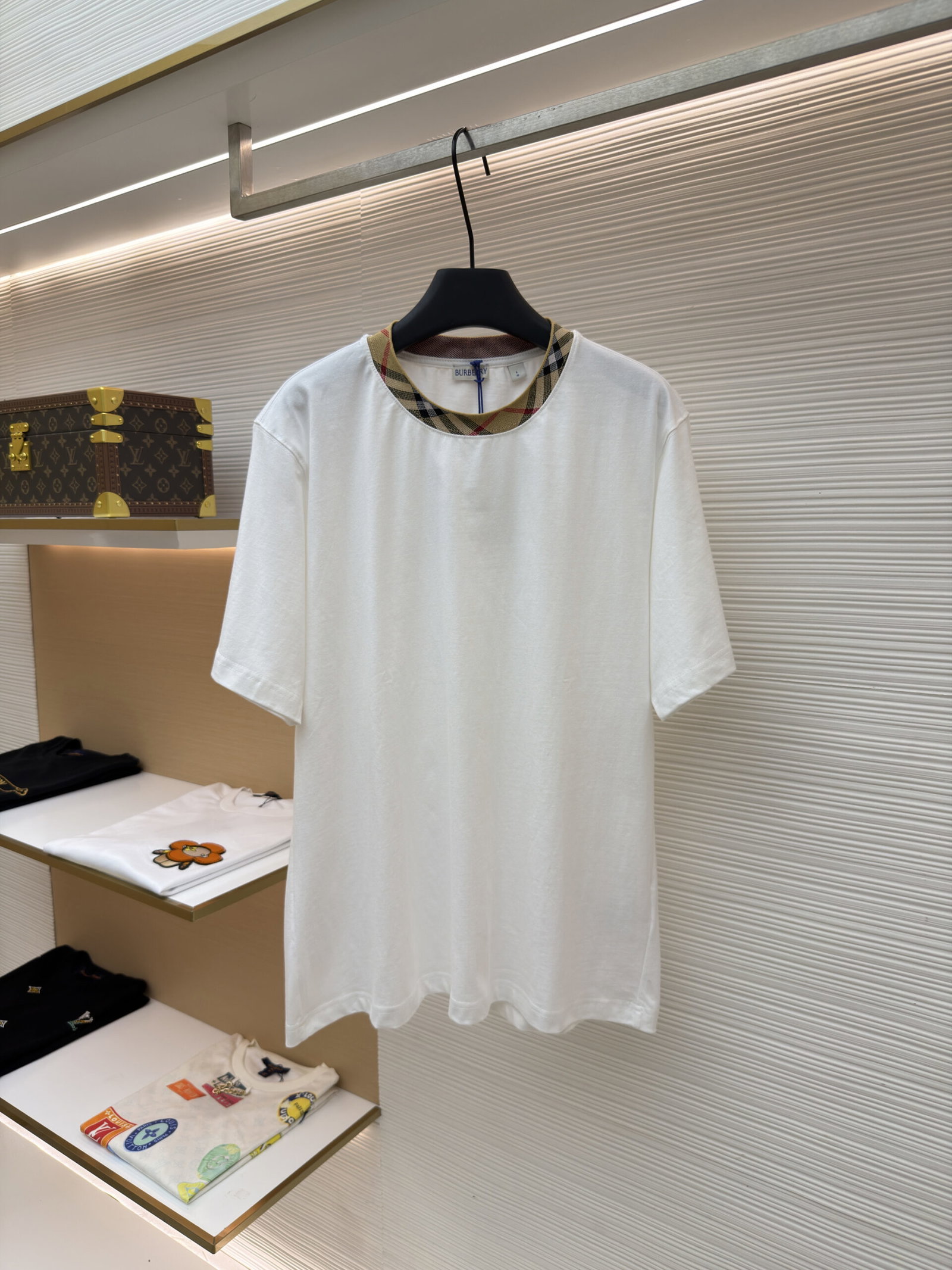 Burberry Round neck Plaid loose T-SHIRTS White バーバリー ロゴ クルーネック 格子柄 Tシャツ ホワイト