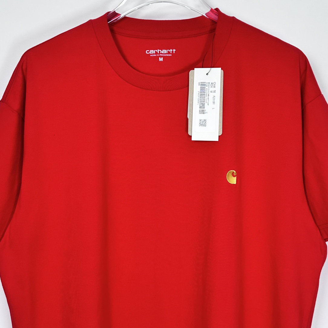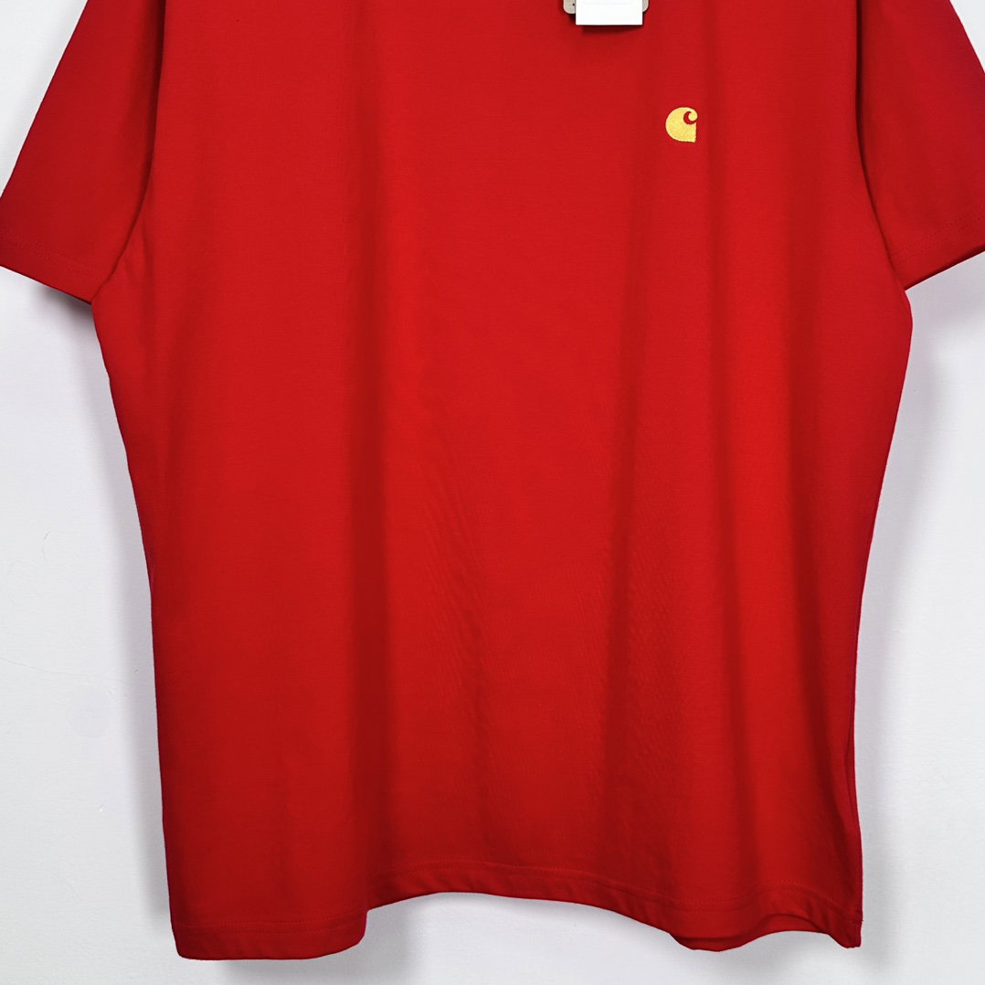 CARHARTT Embroidery gold logo loose Round neck T-shirt Red ヴィンテージ 刺繍 ゴールド logo ゆったり クルーネック Tシャツ レッド