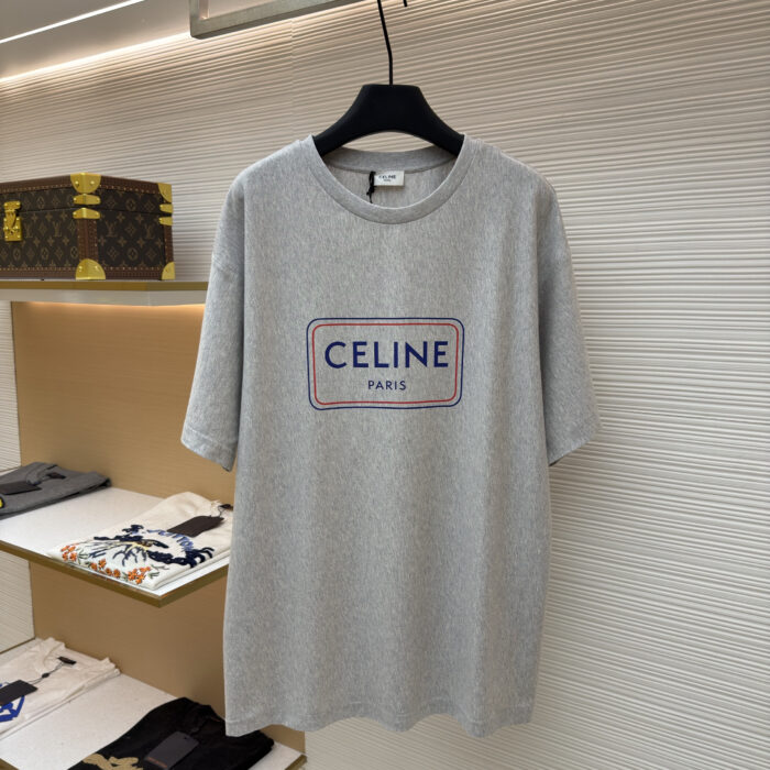 CELINE Print pattern Round neck T-shirt Gray セリーヌ プリント パターン クルーネック Tシャツ グレー