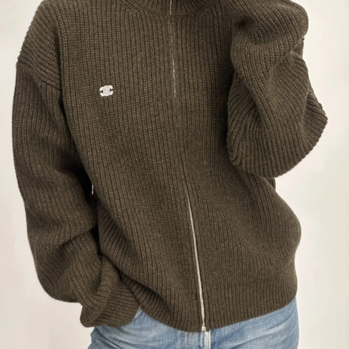 CELINE Embroidery LOGO knit ZIP-UP Sweater jacket セリーヌ 刺繍 LOGO ジップアップ ニットセーター ジャケット