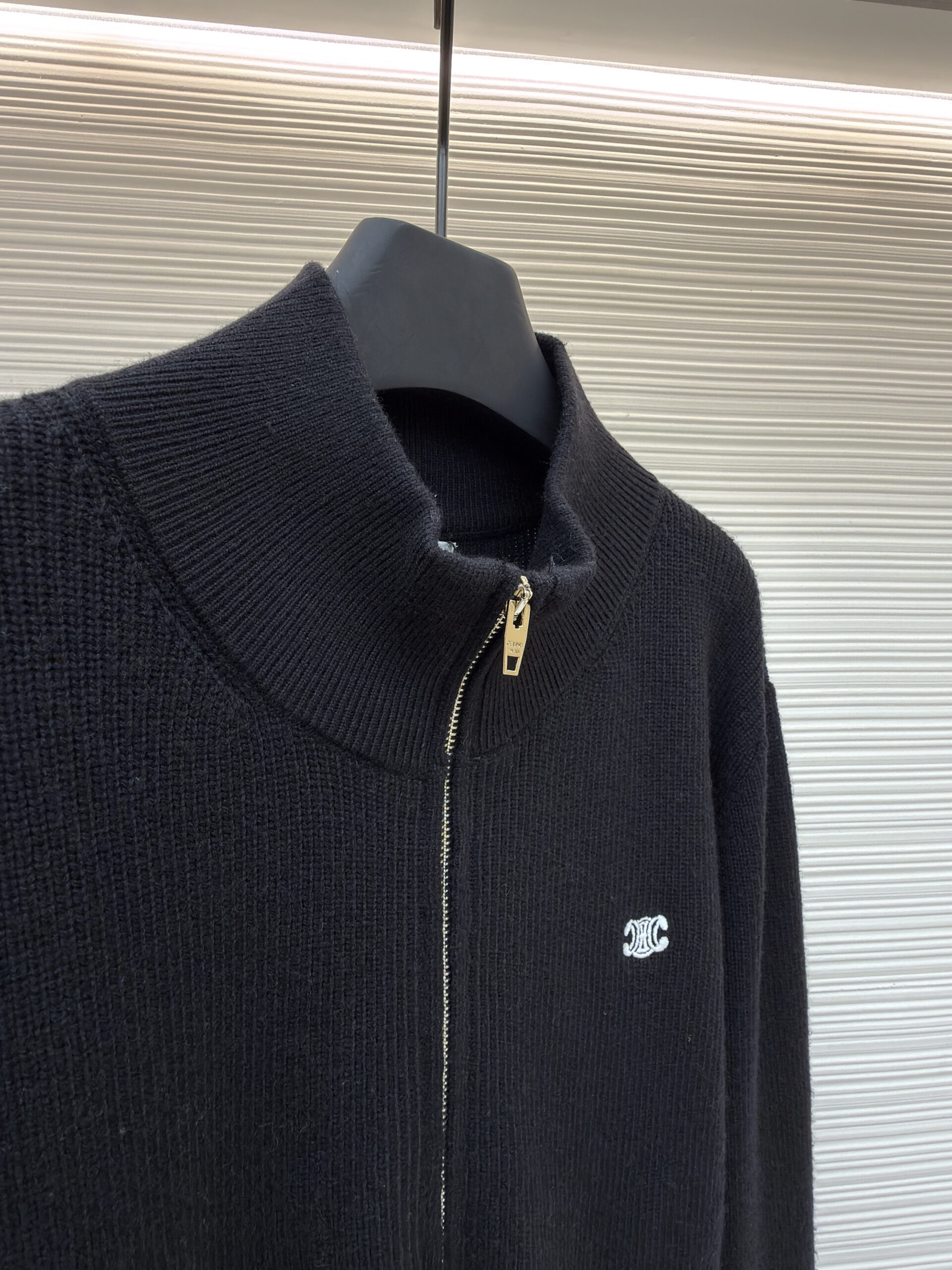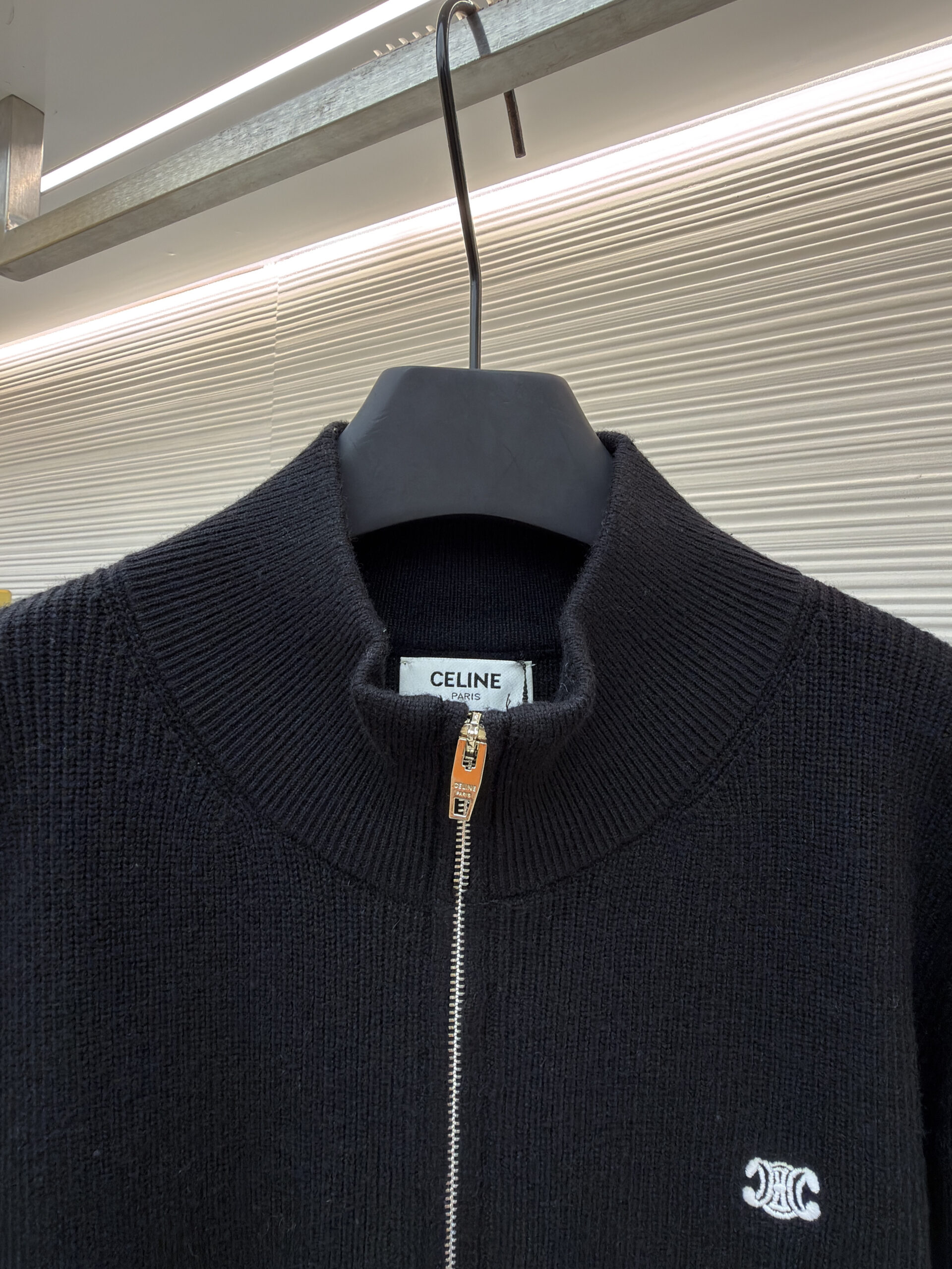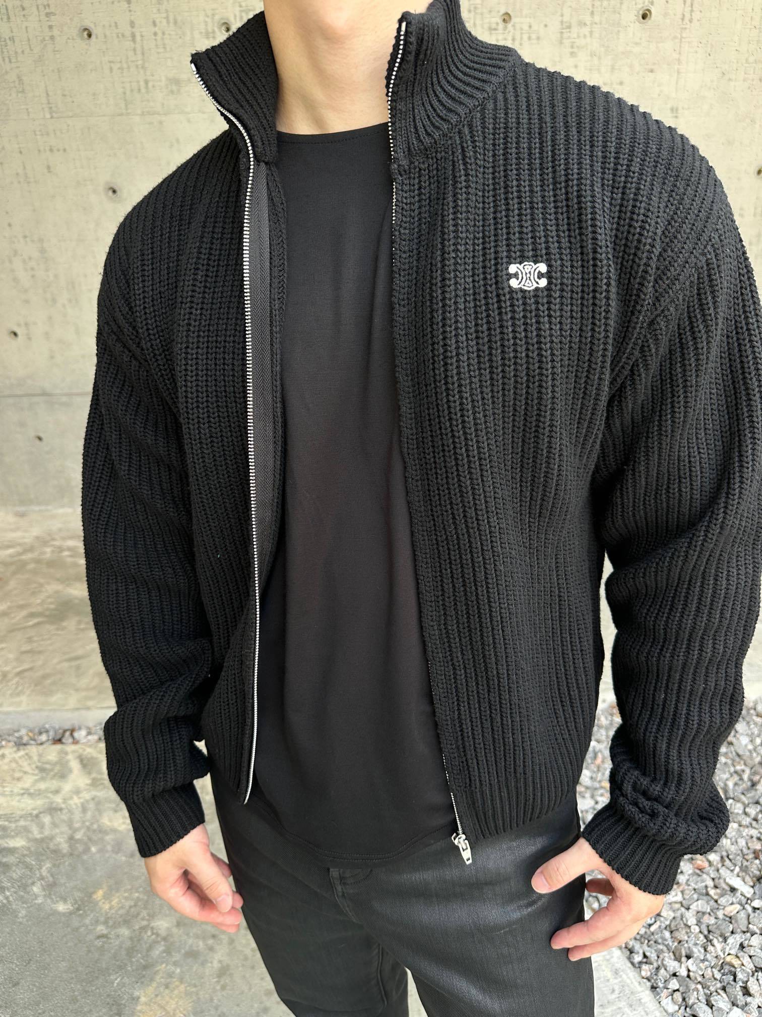 CELINE Embroidery LOGO knit ZIP-UP Sweater jacket Black セリーヌ 刺繍 LOGO ジップアップ ニットセーター ジャケット ブラック