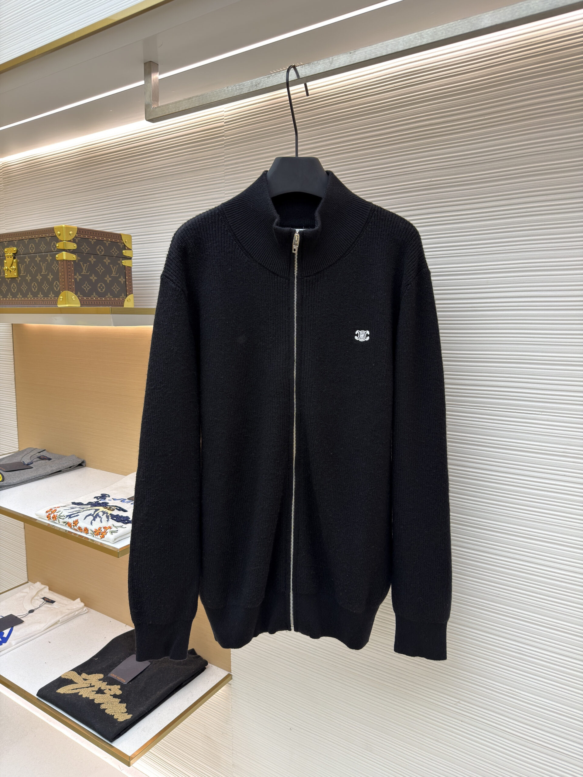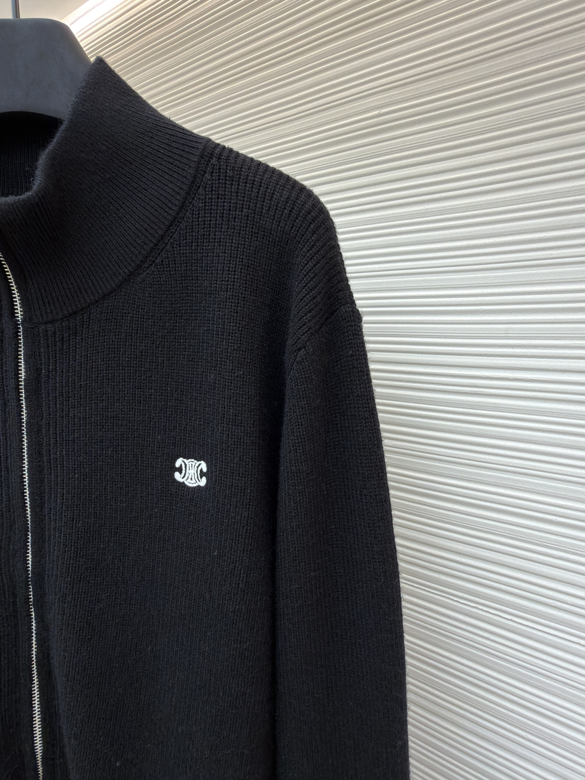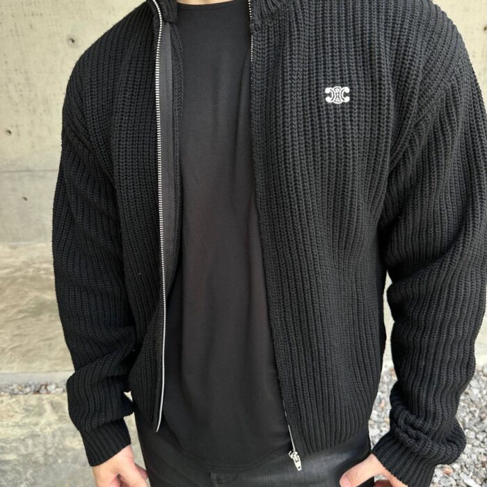 CELINE Embroidery LOGO knit ZIP-UP Sweater jacket Black セリーヌ 刺繍 LOGO ジップアップ ニットセーター ジャケット ブラック