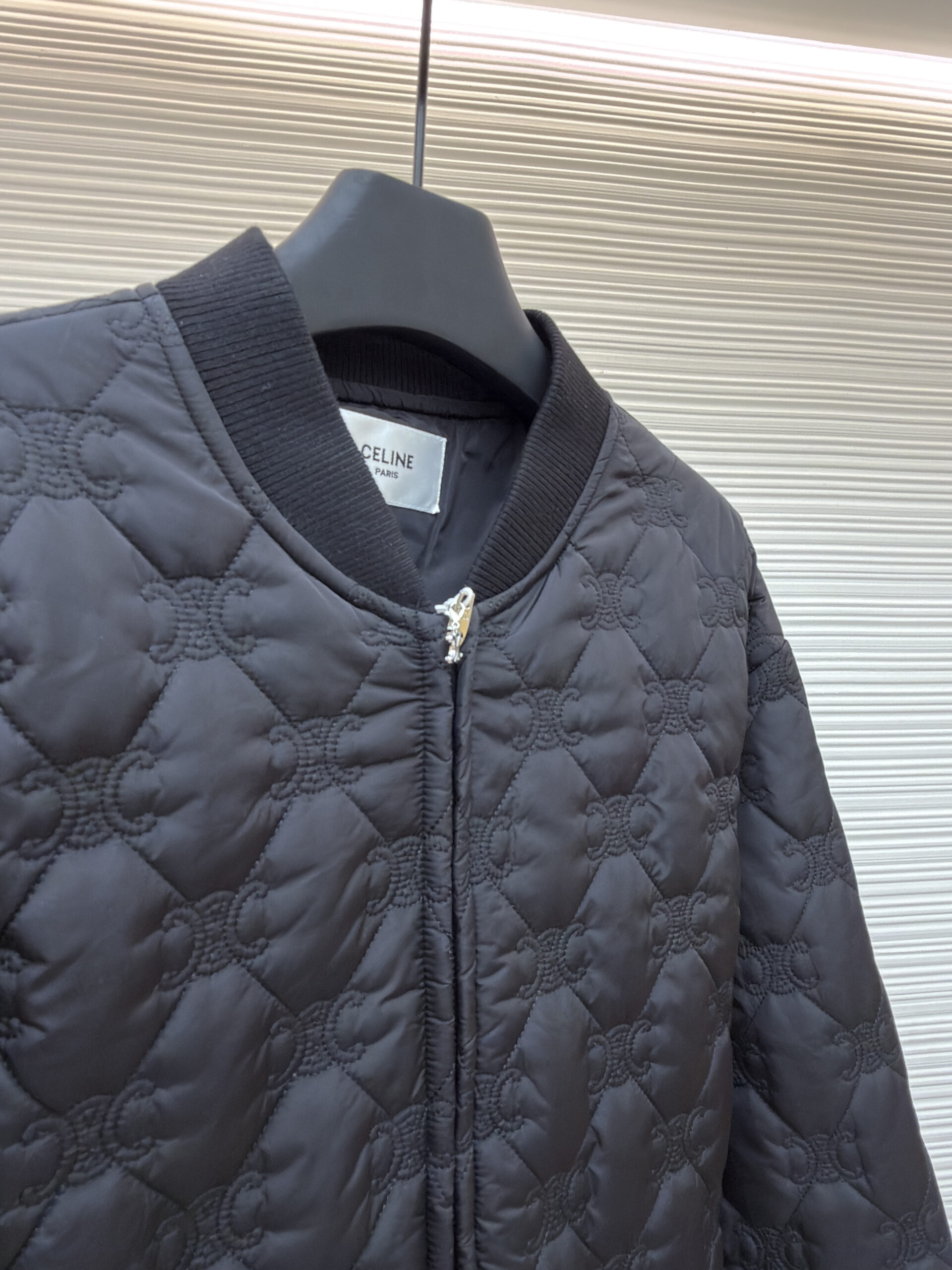 CELINE Print LOGO ZIP-UP interlayer cotton jacket Black セリーヌ プリント LOGO ジップアップ 中綿 ジャケット ブラック