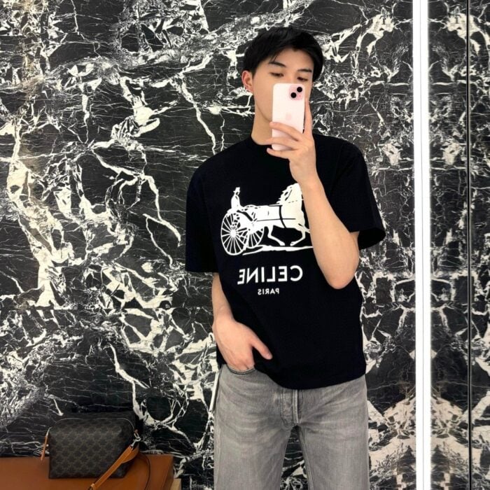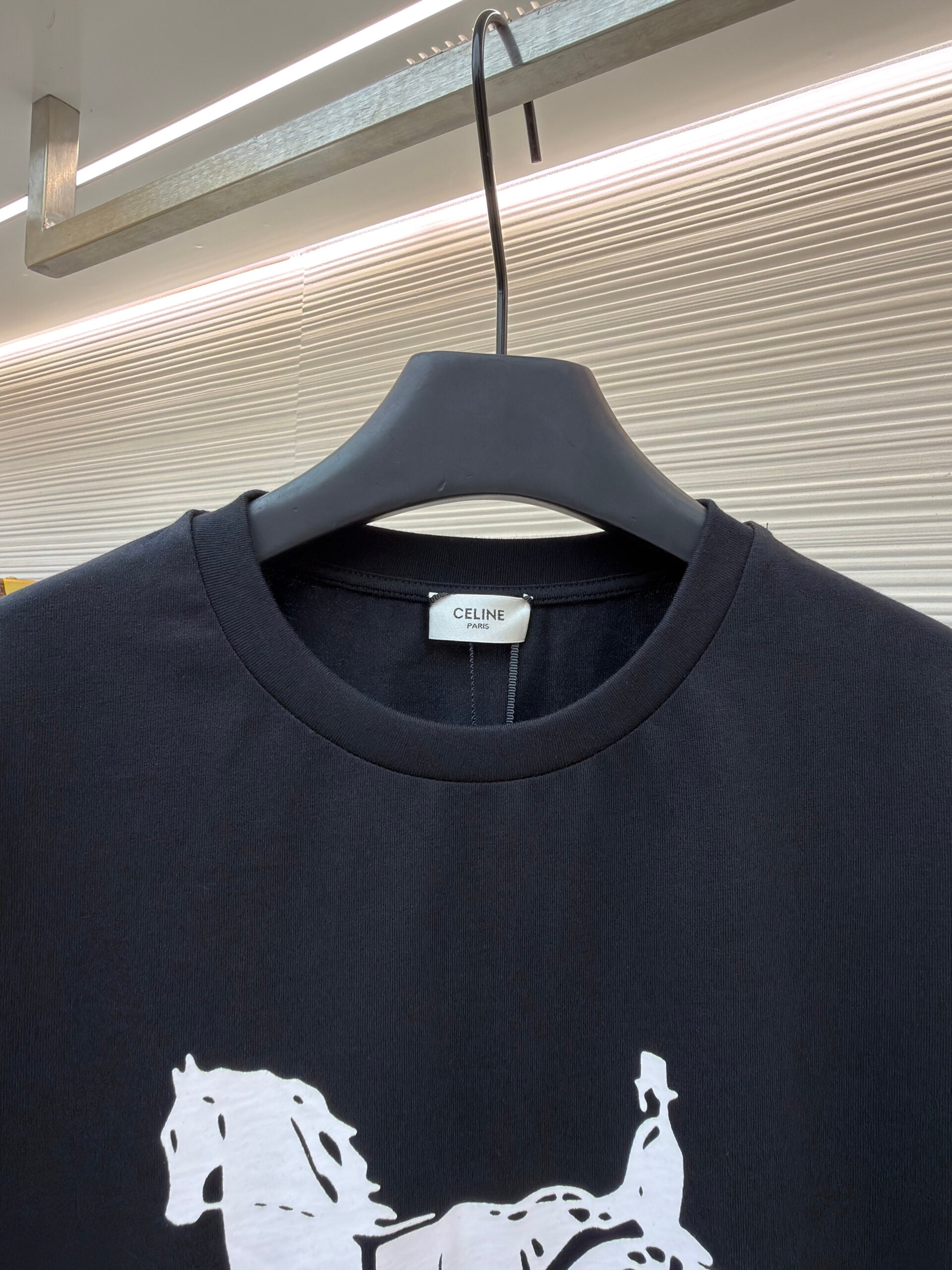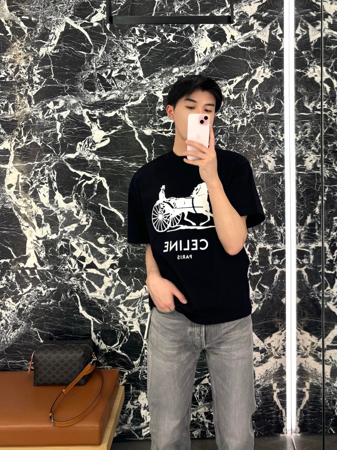 CELINE Print pattern logo Round neck T-shirt Black セリーヌ プリント パターン logo クルーネック Tシャツ ブラック