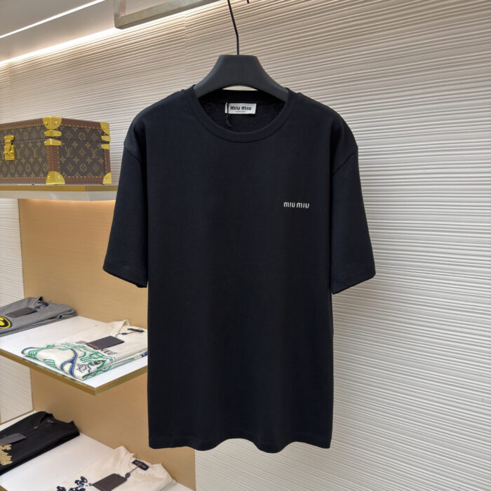 Miu Miu Embroidery LOGO Round Neck loose T-shirt Black ミュウミュウ 刺繍 LOGO クルー ネック ゆったり Tシャツ ブラック