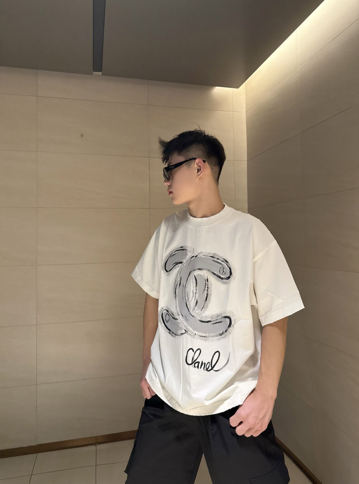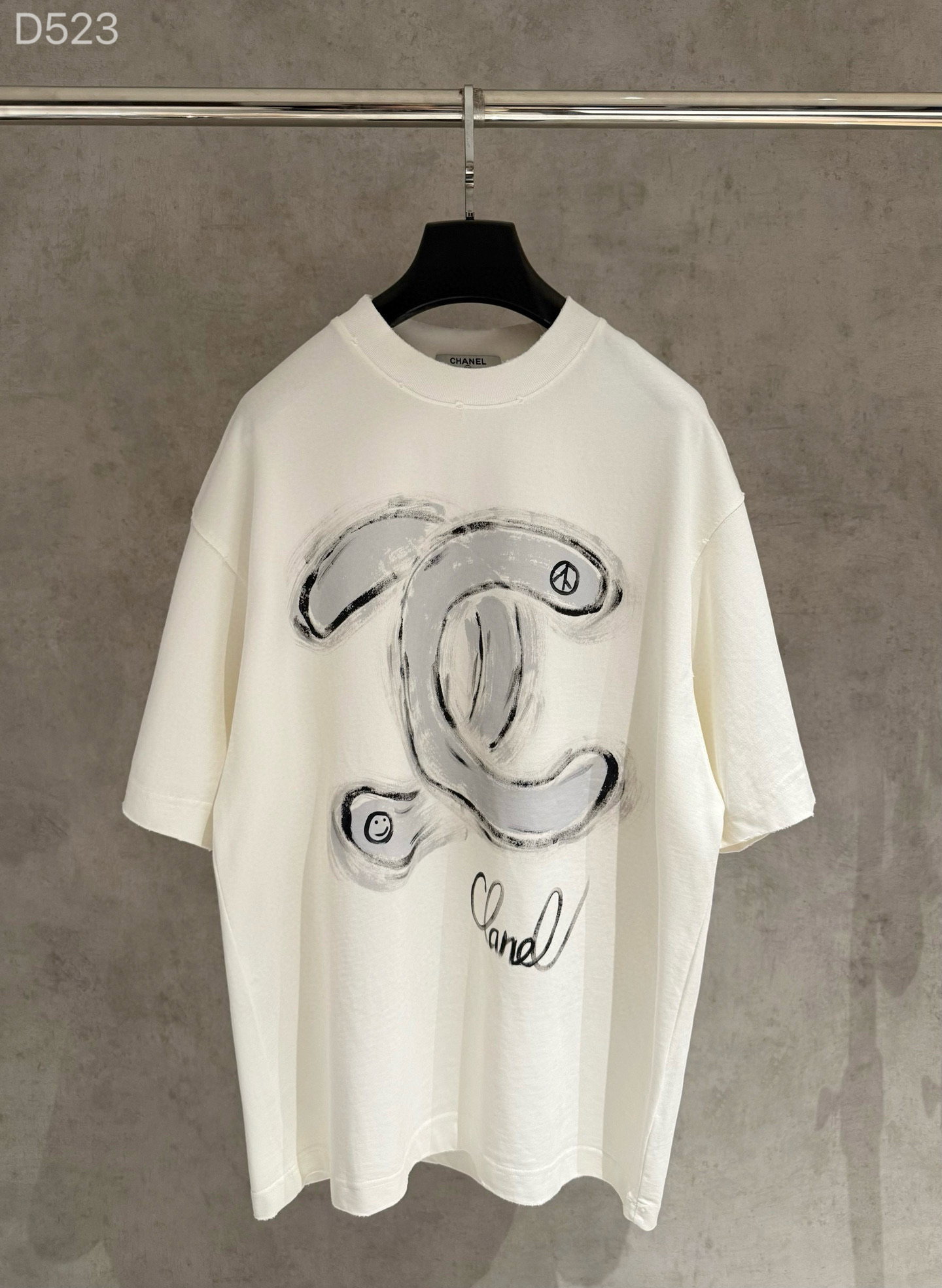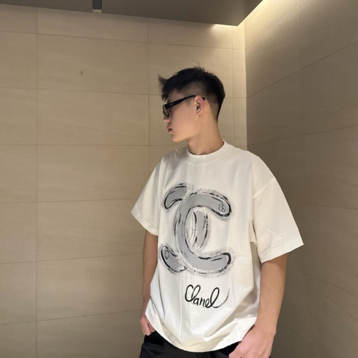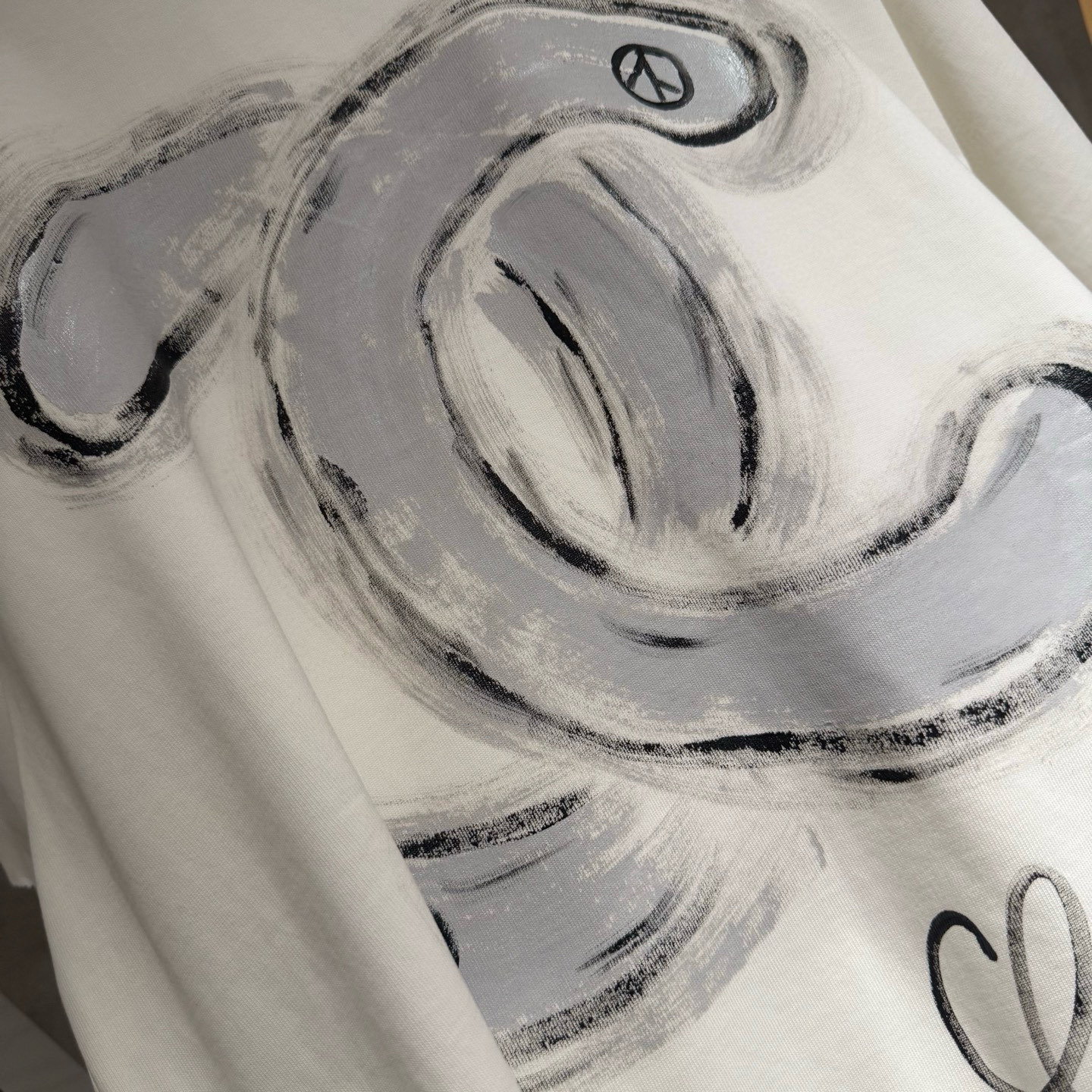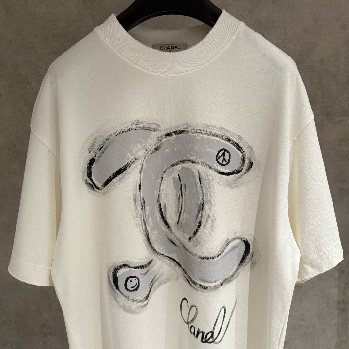 CHANEL hand-drawn pattern logo Round neck loose T-shirt White シャネル 手描き パターン logo クルーネック ゆったり Tシャツ ホワイト