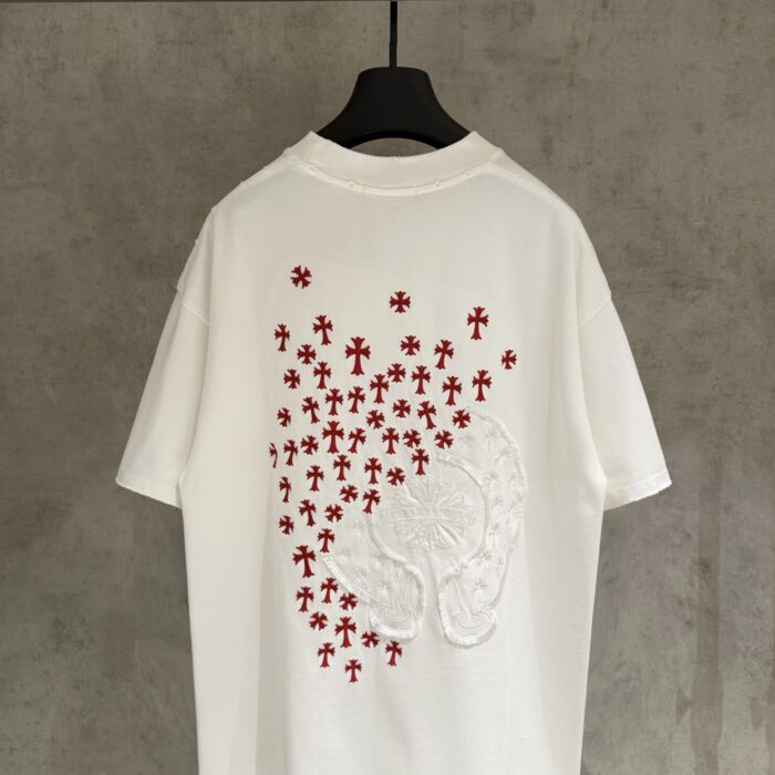 Chrome Hearts patch Embroidery logo Red pattern loose Round neck T-shirt White クロムハーツ アップリケ 刺繍 logo レッド パターン ゆったり クルーネック Tシャツ ホワイト