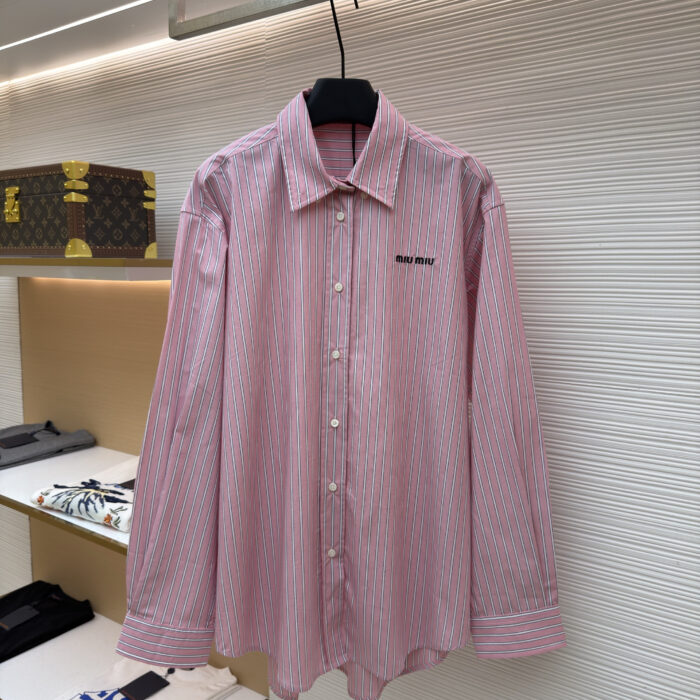 MiuMiu Embroidery logo long sleeves Shirt Pink ミュウミュウ 刺繍 logo 長袖 シャツ ピンク