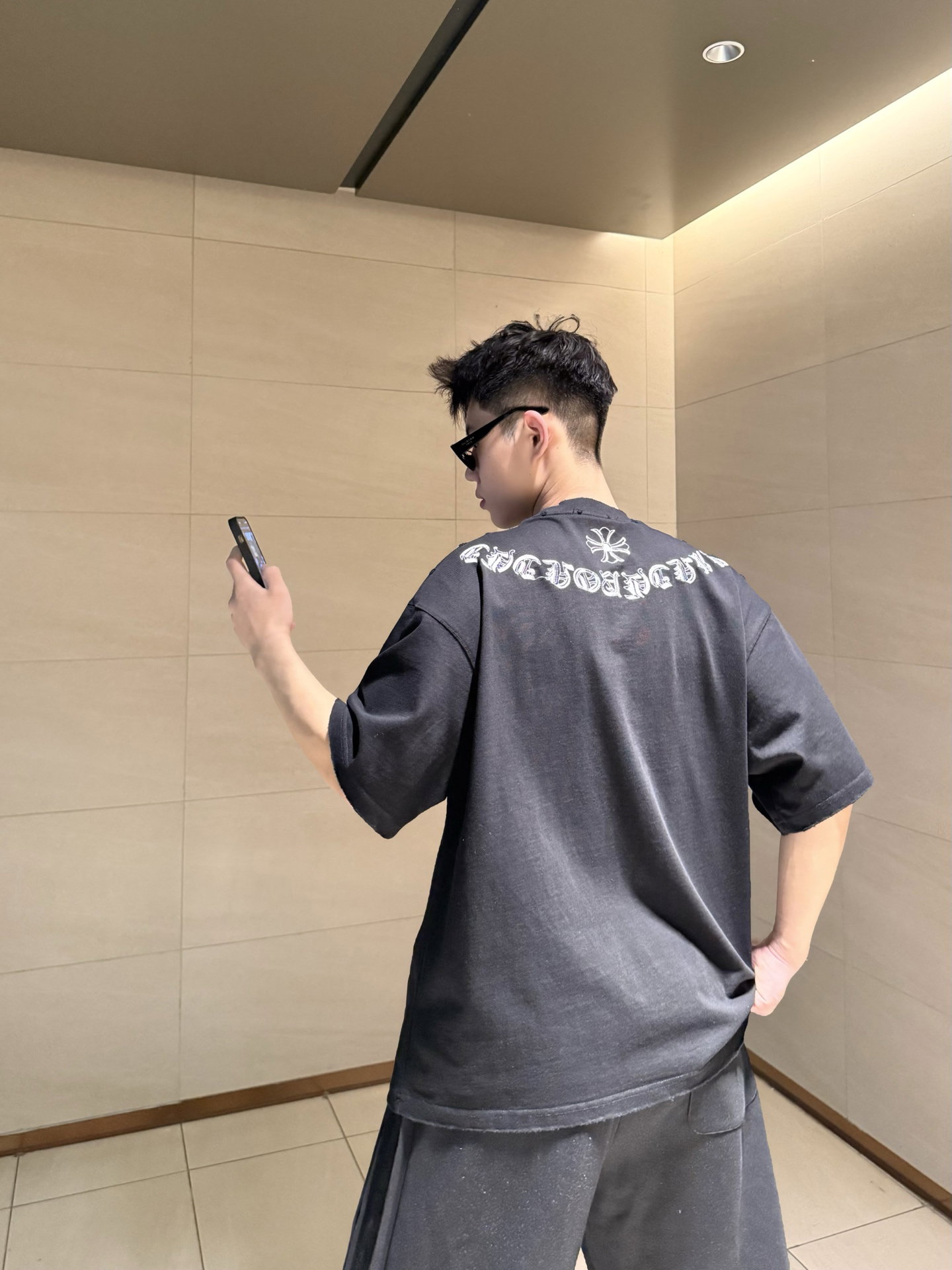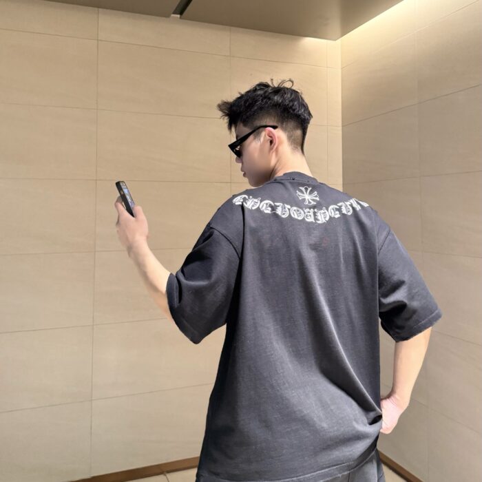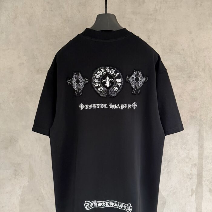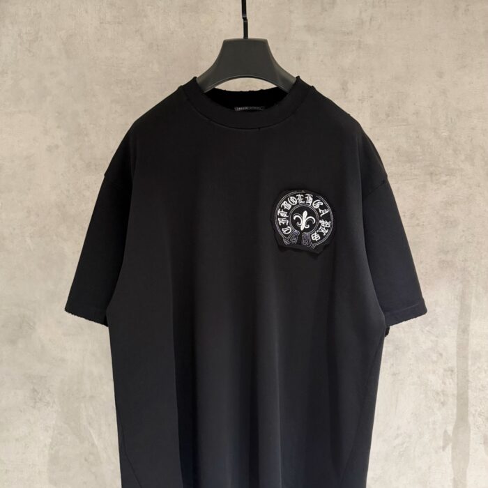 Chrome Hearts patch Embroidery pattern LOGO loose Round neck T-shirt Black クロムハーツ アップリケ 刺繍 パターン LOGO ゆったり クルーネック Tシャツ ブラック