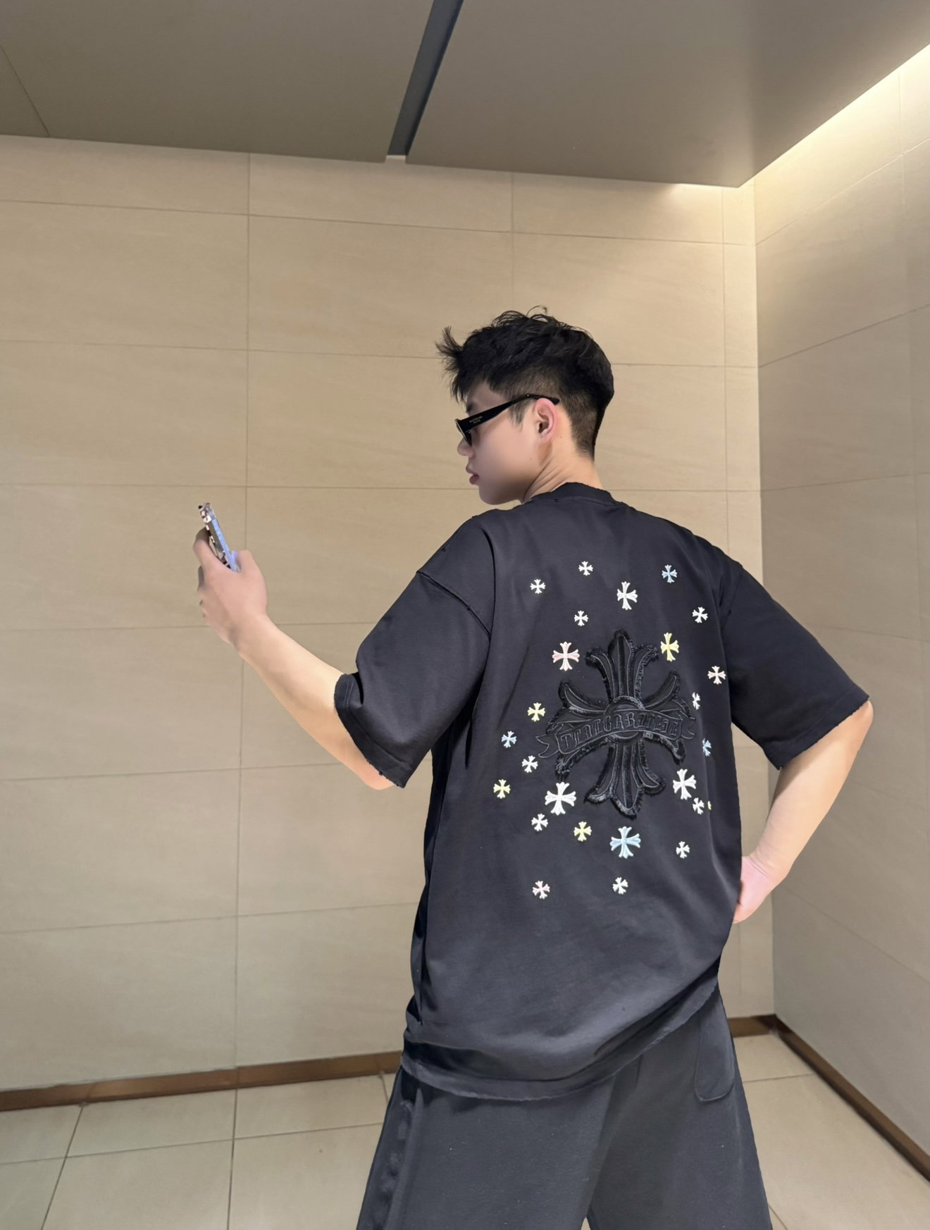 Chrome Hearts Embroidery pattern LOGO loose Round neck T-shirt Black クロムハーツ 刺繍 パターン LOGO ゆったり クルーネック Tシャツ ブラック