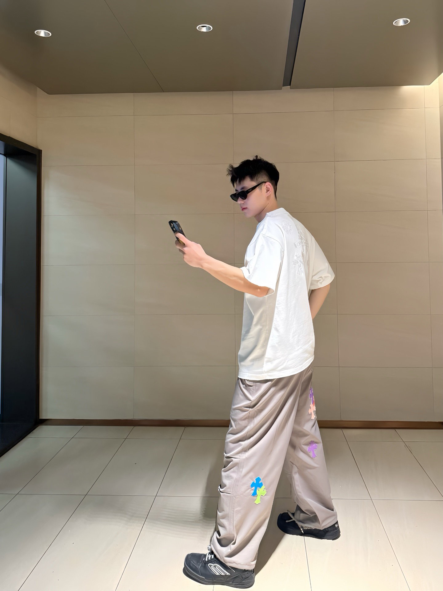 Chrome Hearts patch Embroidery pattern LOGO loose Round neck T-shirt Black クロムハーツ アップリケ 刺繍 パターン LOGO ゆったり クルーネック Tシャツ ブラック