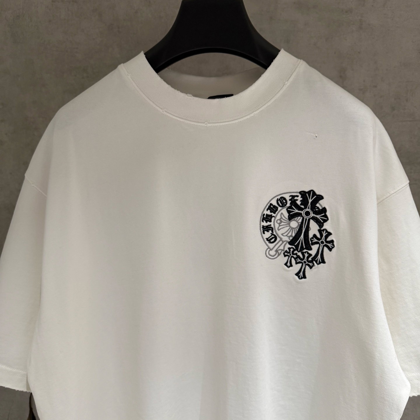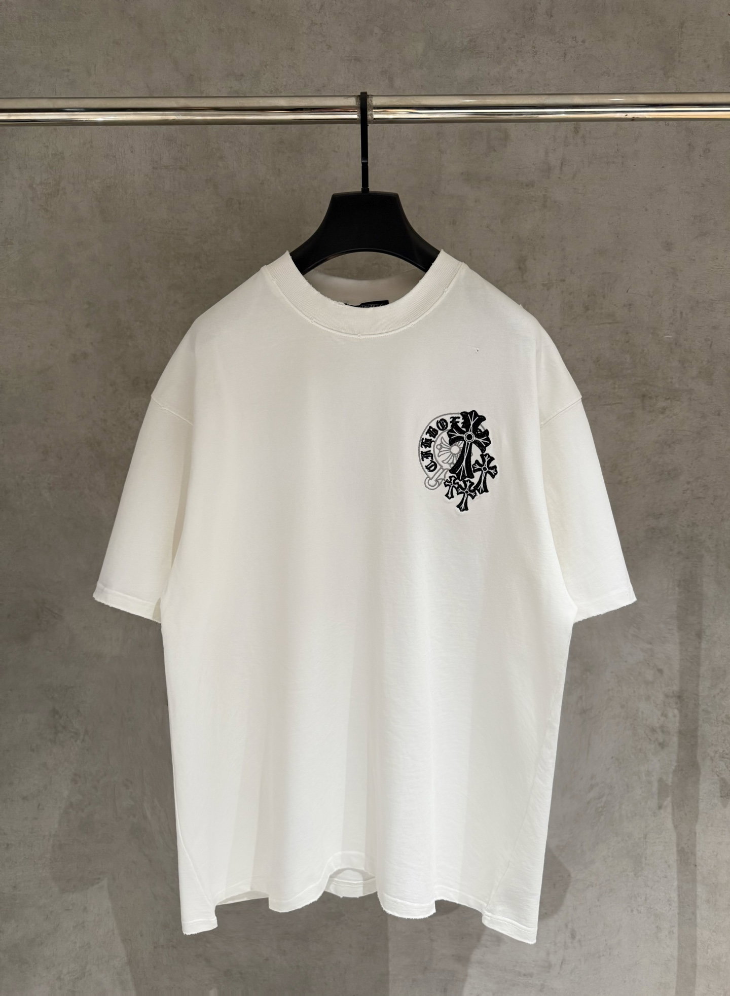 Chrome Hearts patch Embroidery pattern LOGO loose Round neck T-shirt Black クロムハーツ アップリケ 刺繍 パターン LOGO ゆったり クルーネック Tシャツ ブラック