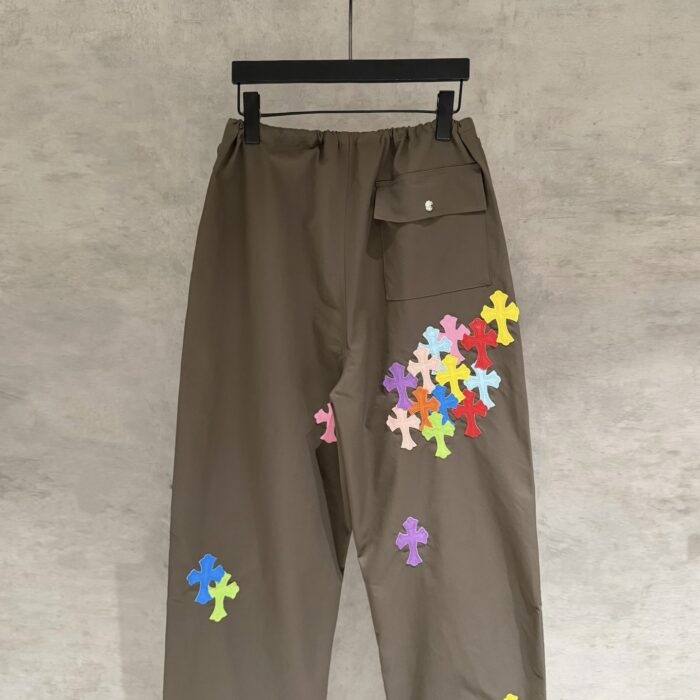 Chrome Hearts クロムハーツ あまいろ クロス レザー 刺繍 亜麻色 レトロ カジュアルパンツ