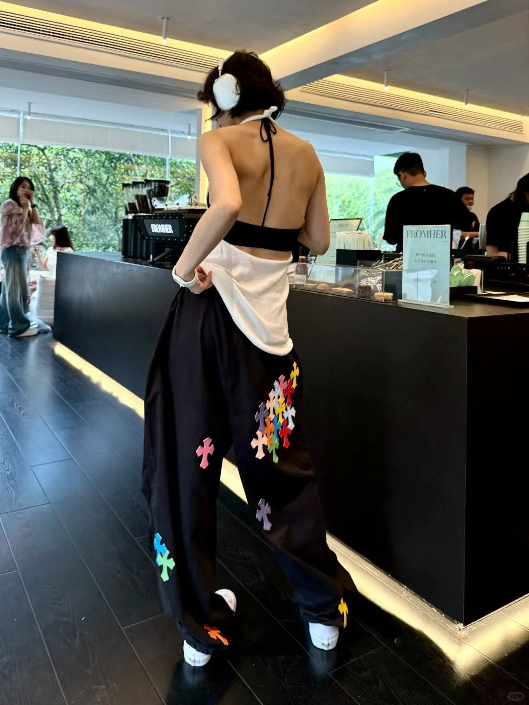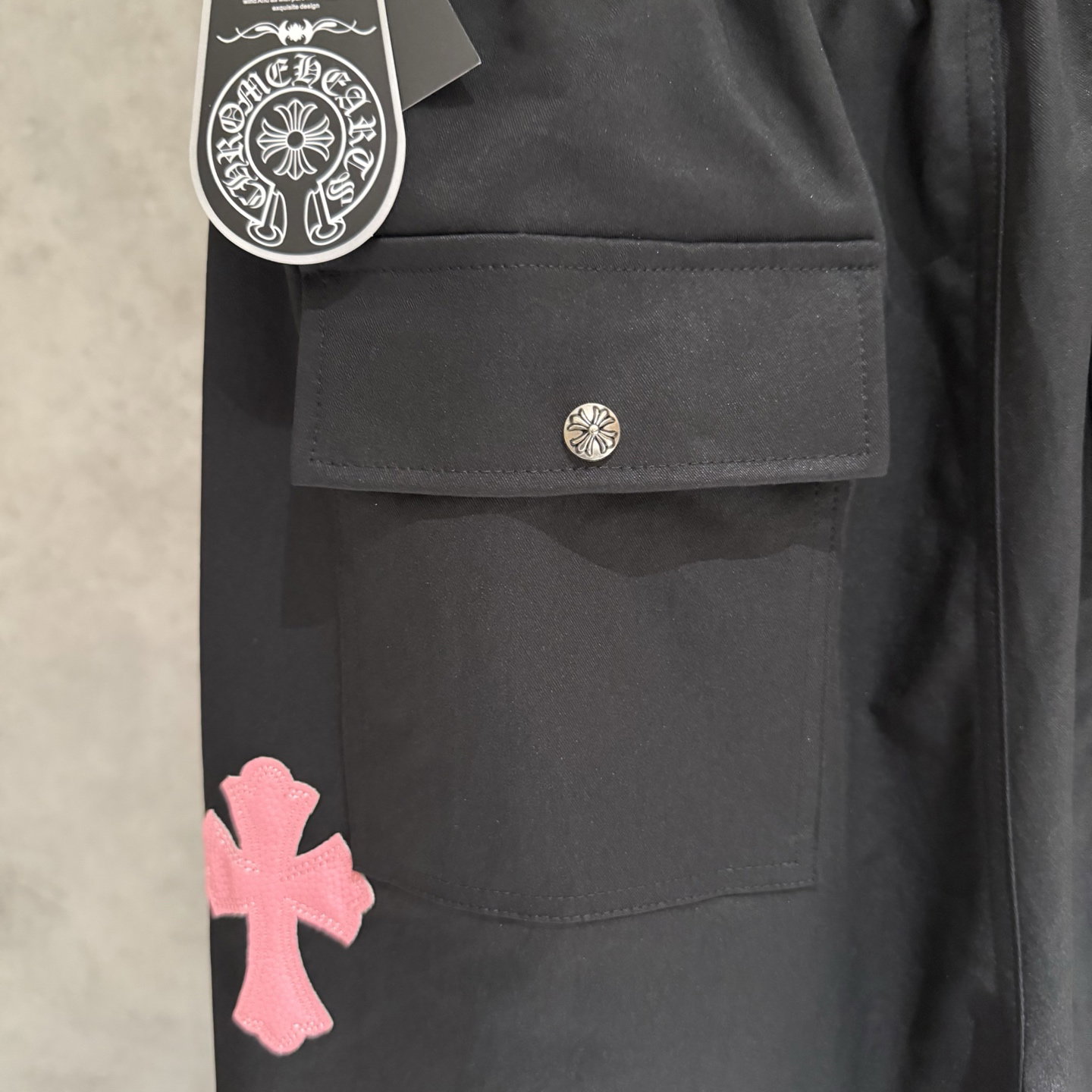 Chrome Hearts patch color Embroidery pattern casual Parachute Pants Black クロムハーツ アップリケ カラー 刺繍 パターン カジュアル パラシュートパンツ ブラック