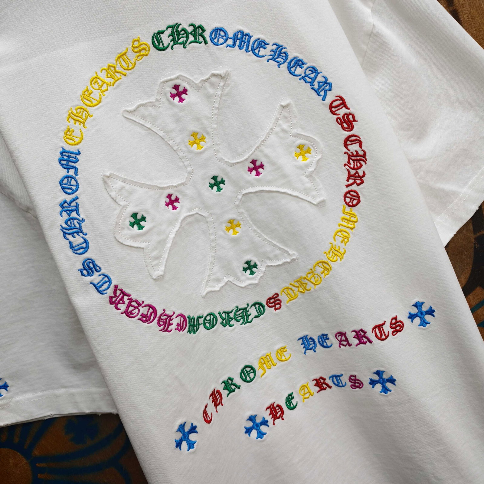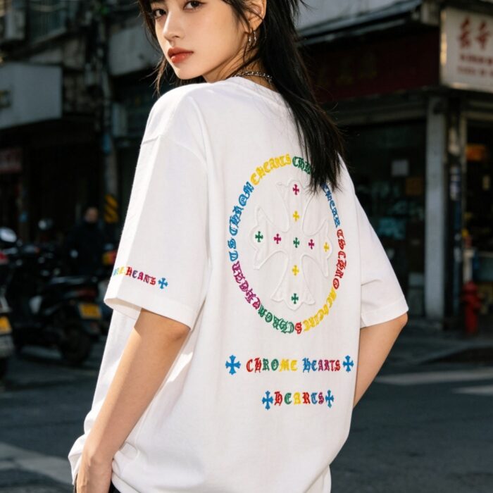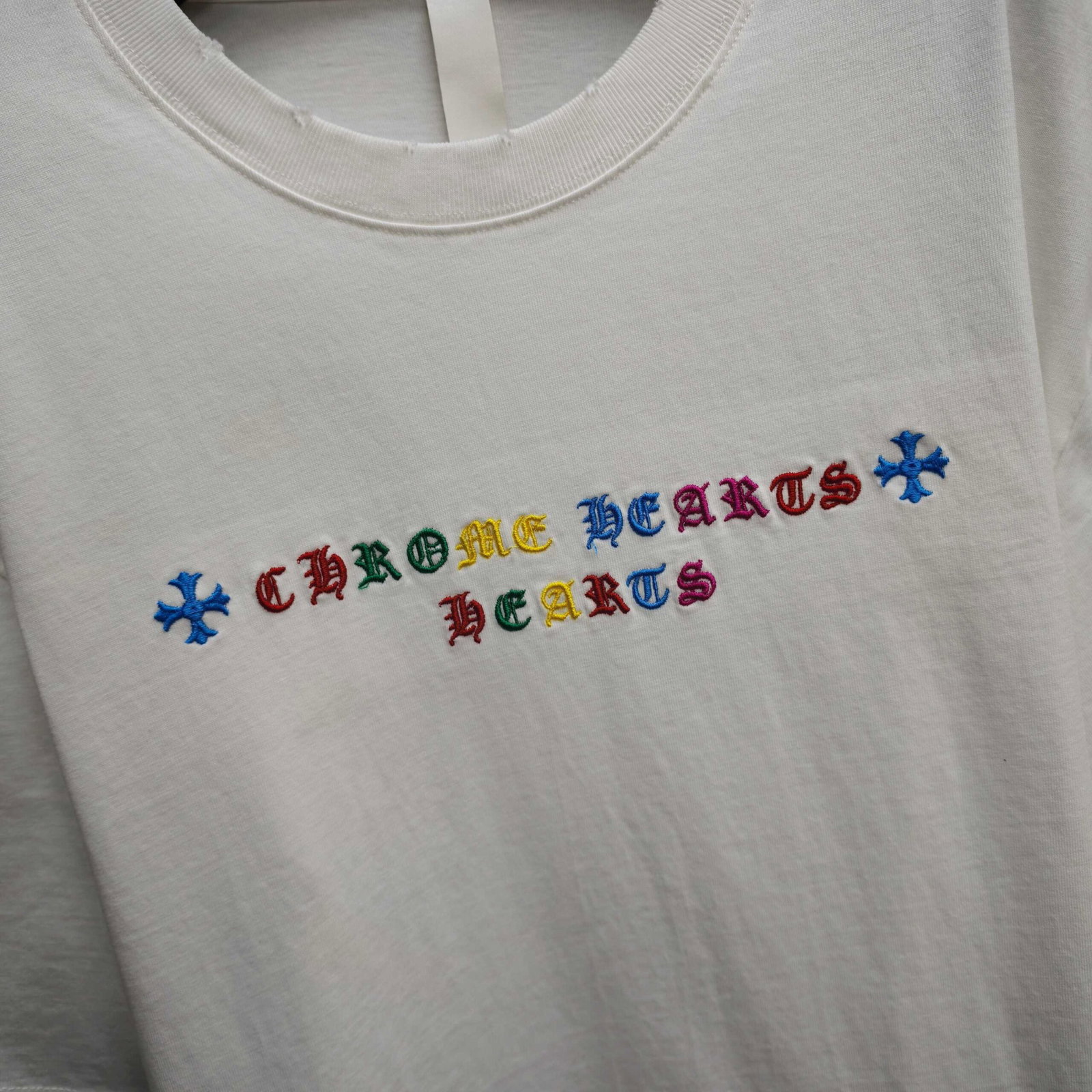 Chrome Hearts patch Embroidery color logo pattern loose Round neck T-shirt White クロムハーツ アップリケ 刺繍 カラー logo パターン ゆったり クルーネック Tシャツ ホワイト