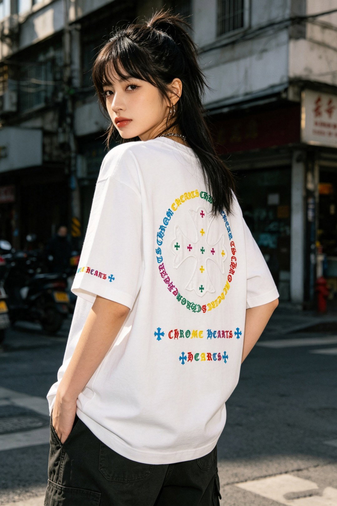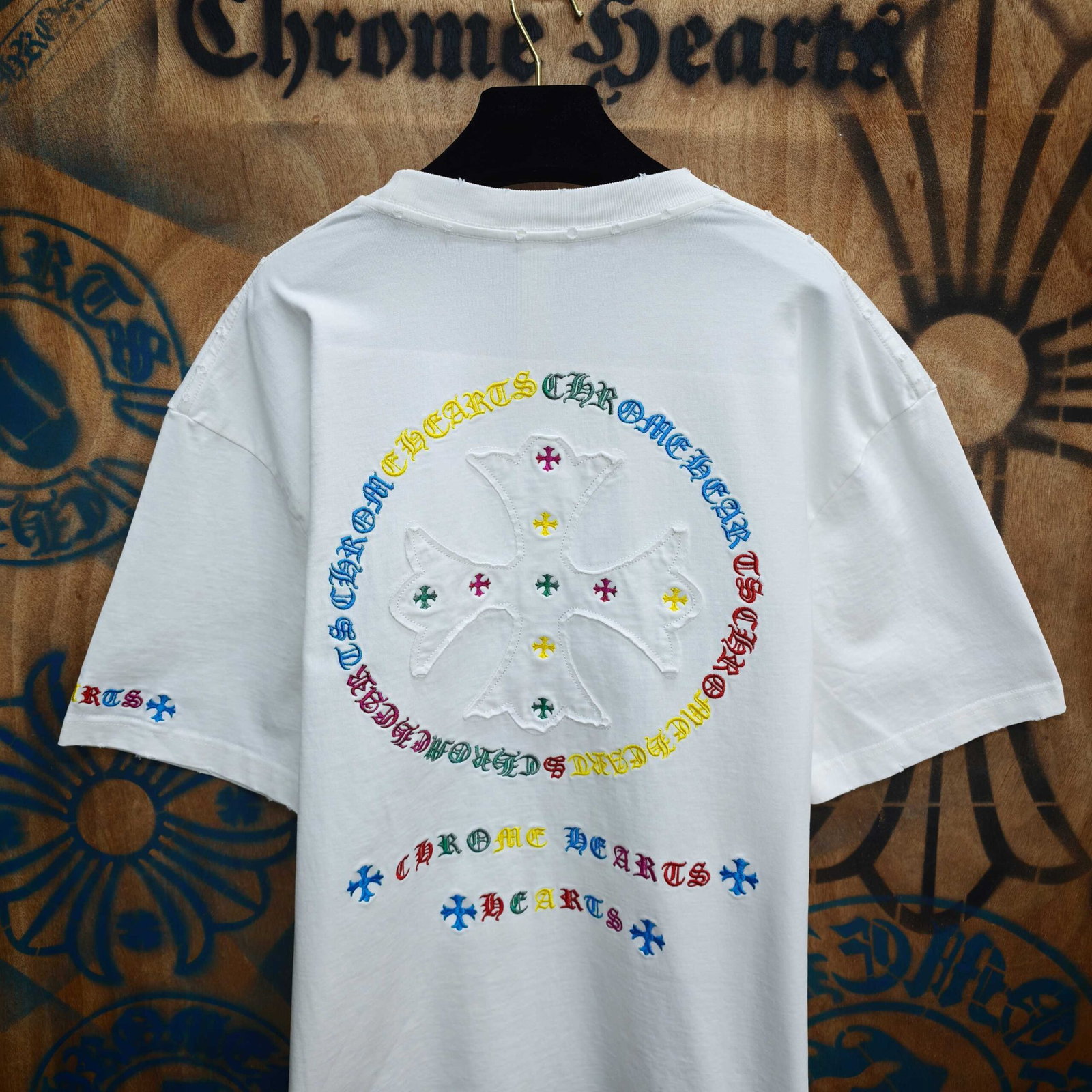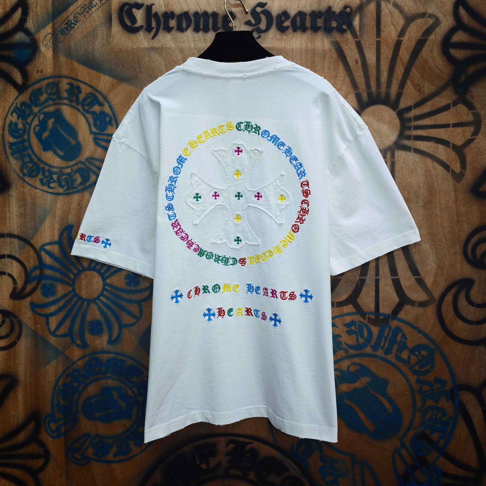 Chrome Hearts patch Embroidery color logo pattern loose Round neck T-shirt White クロムハーツ アップリケ 刺繍 カラー logo パターン ゆったり クルーネック Tシャツ ホワイト