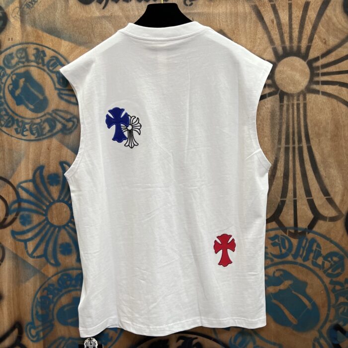 Chrome Hearts patch Embroidery LOGO loose VEST White クロムハーツ アップリケ 刺繍 LOGO ゆったり クルーネック ベスト ホワイト