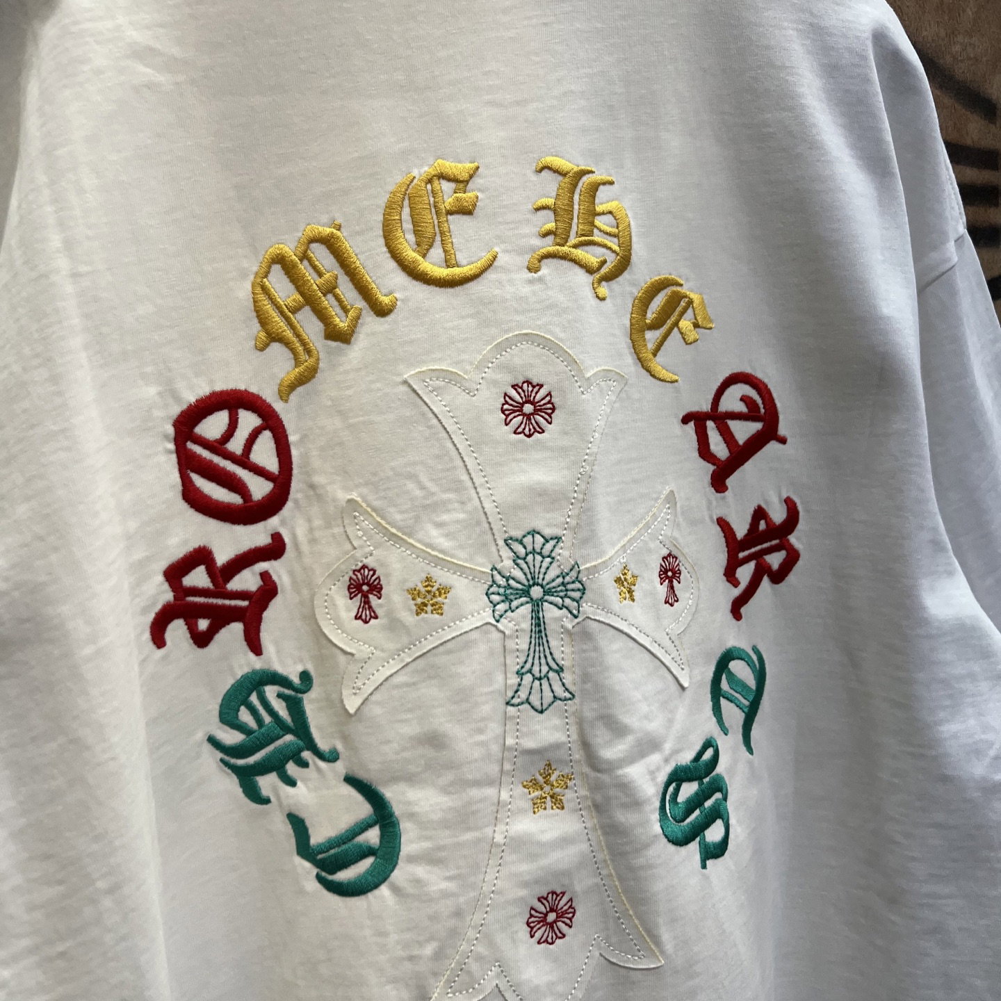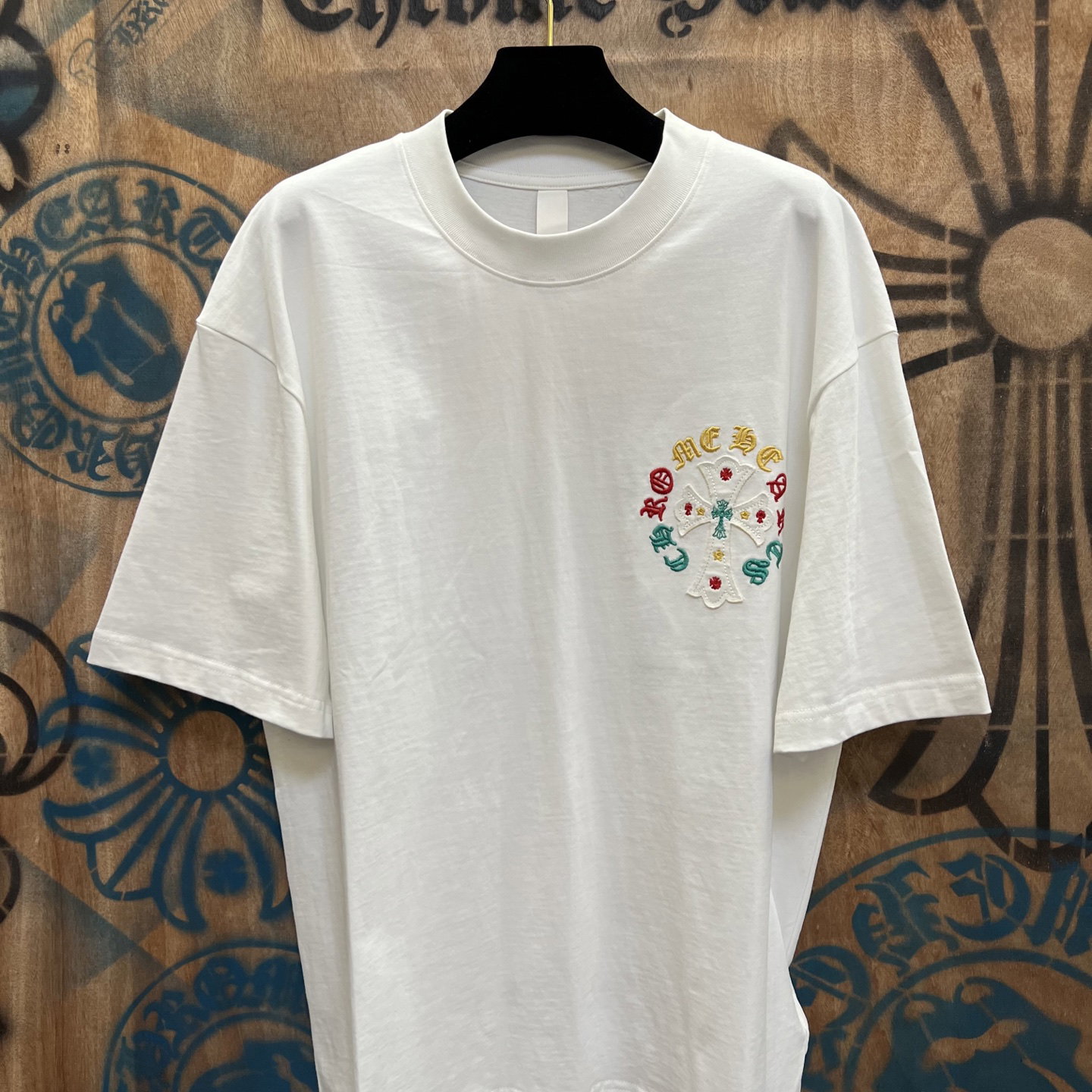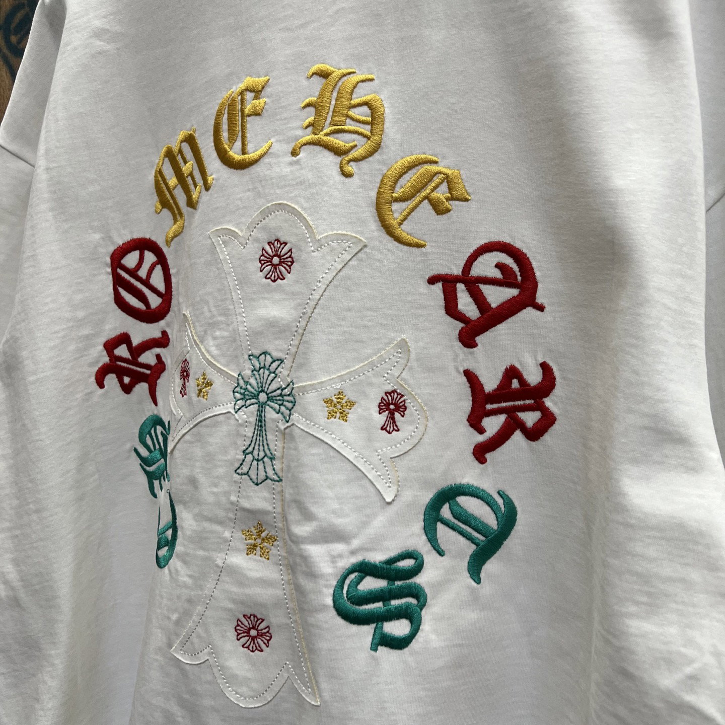 Chrome Hearts patch Embroidery color pattern logo loose Round neck T-shirt White クロムハーツ アップリケ 刺繍 カラー パターン logo ゆったり クルーネック Tシャツ ホワイト