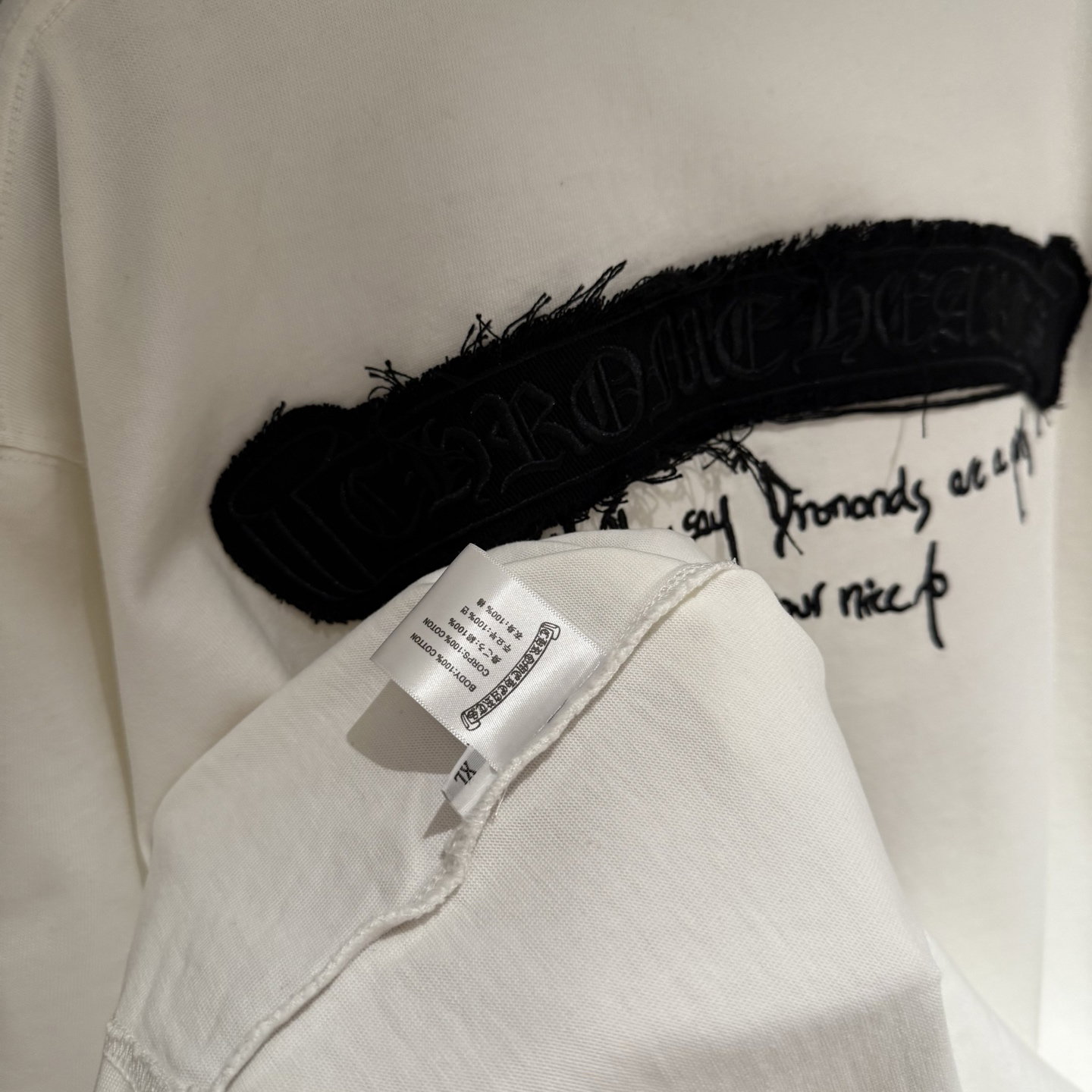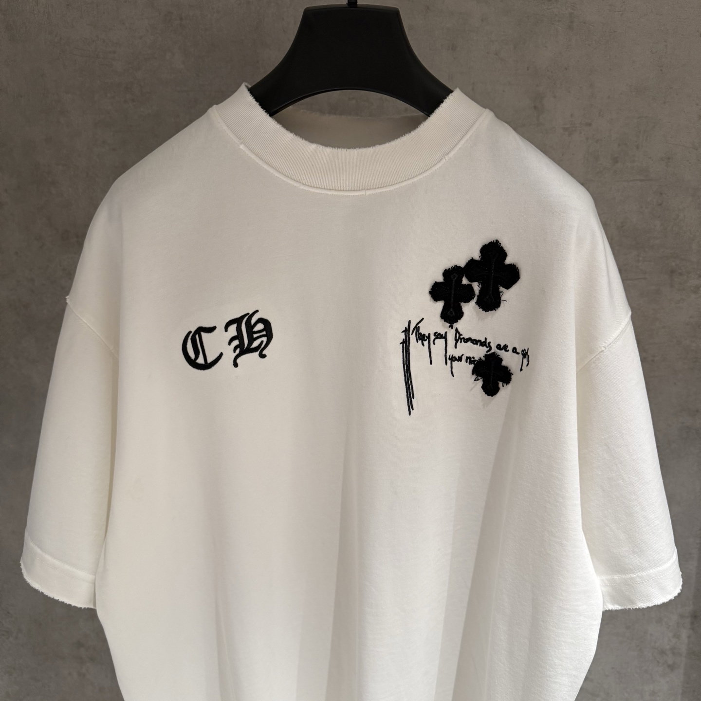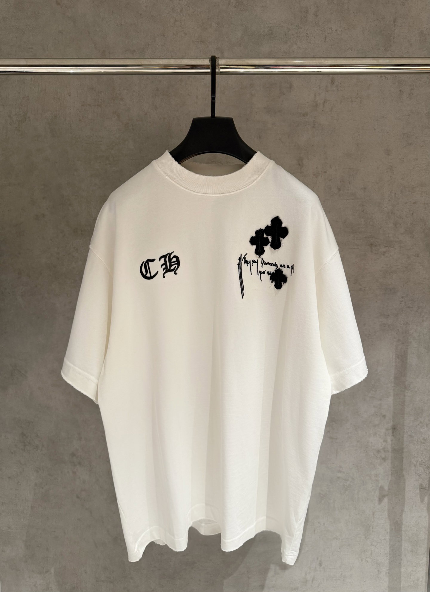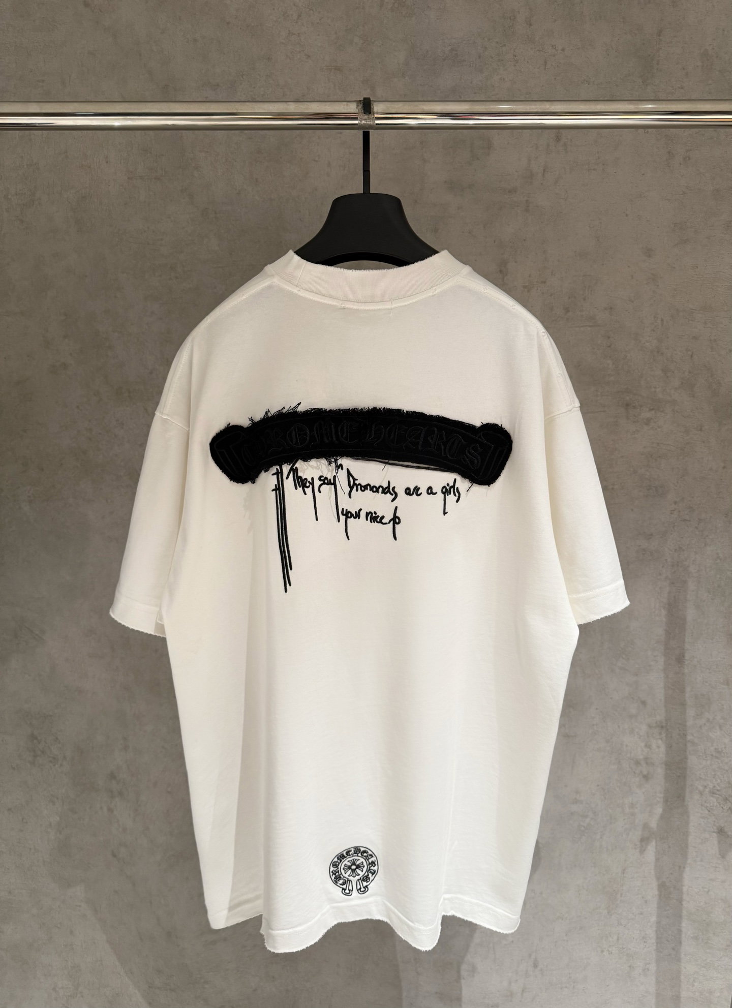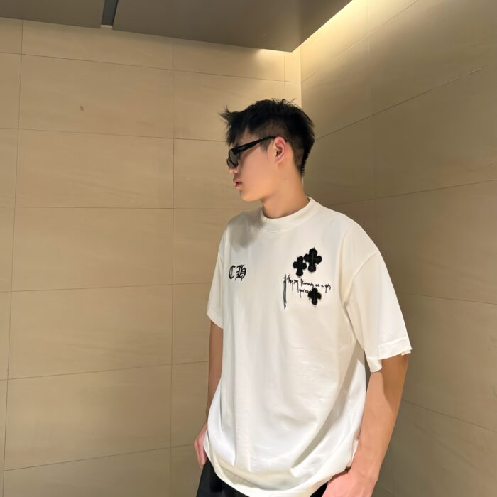 Chrome Hearts patch Embroidery Letter pattern loose Round neck T-shirt White クロムハーツ アップリケ 刺繍 モジ パターン ゆったり クルーネック Tシャツ ホワイト