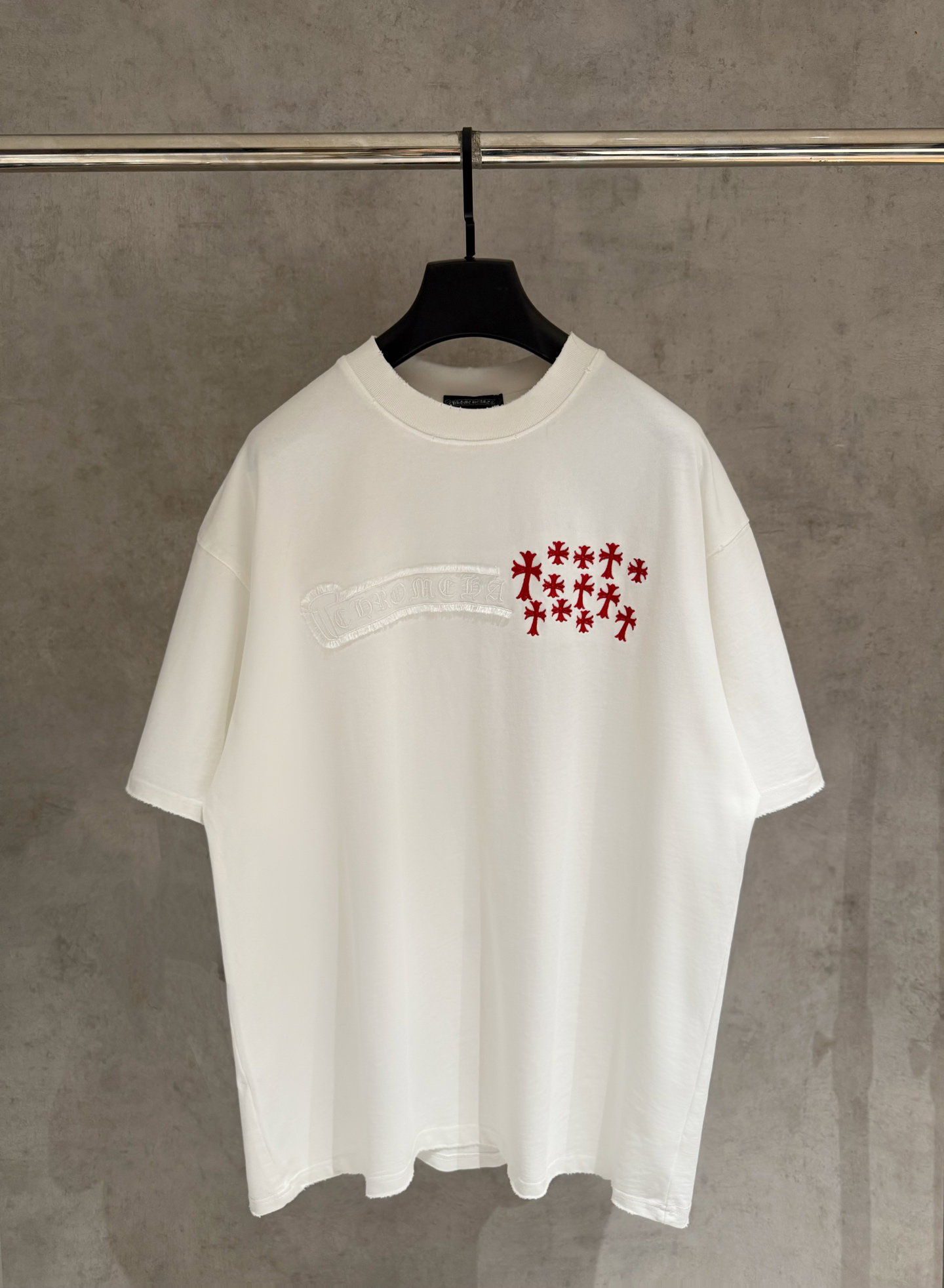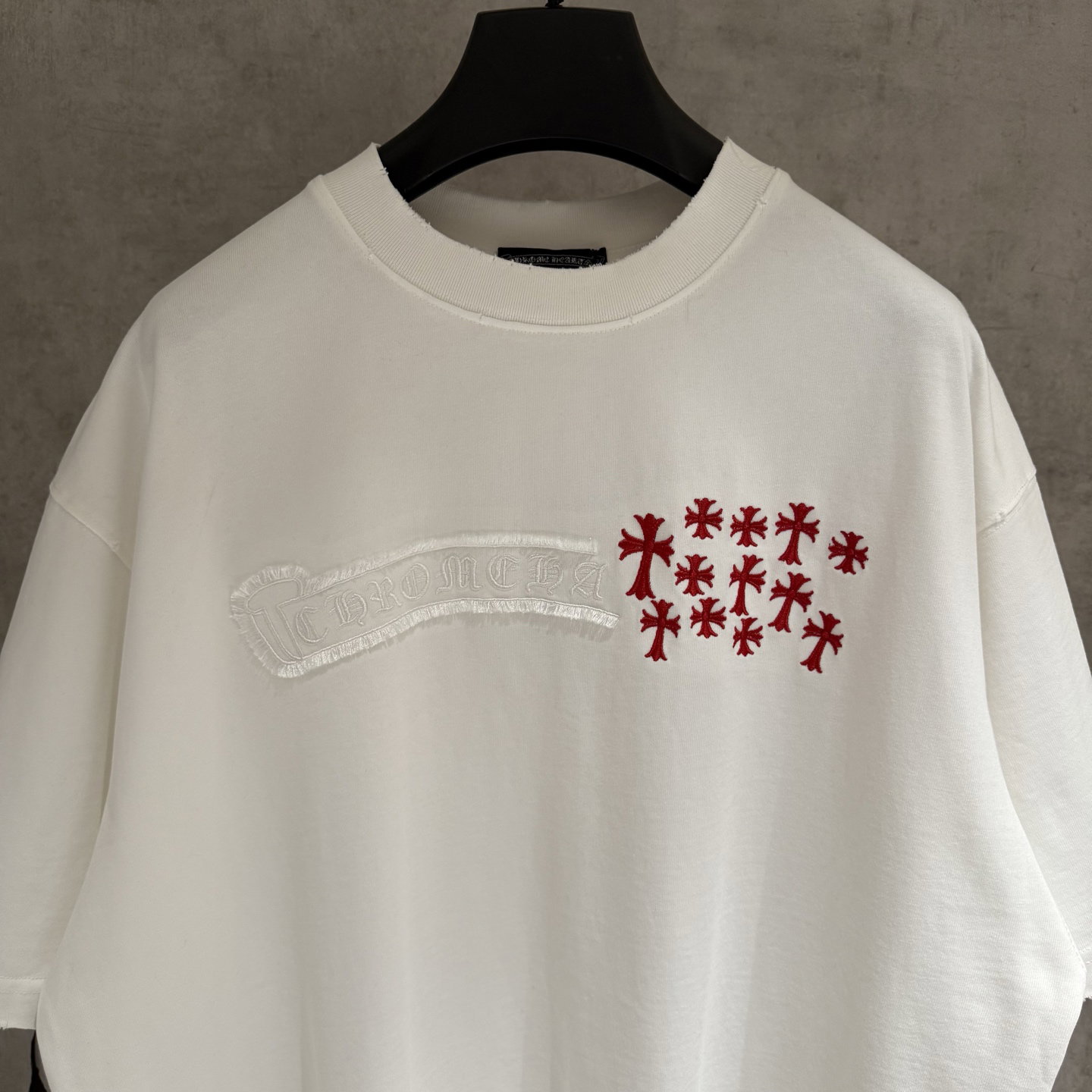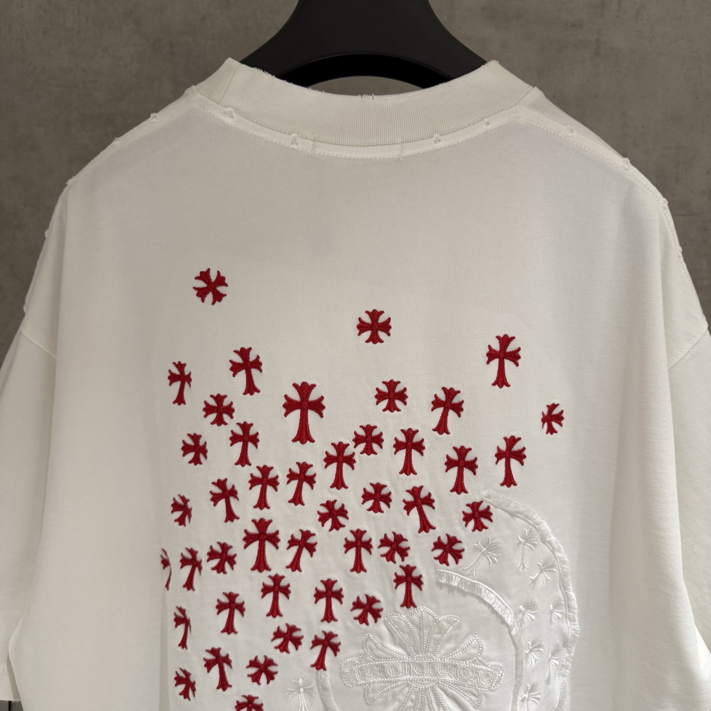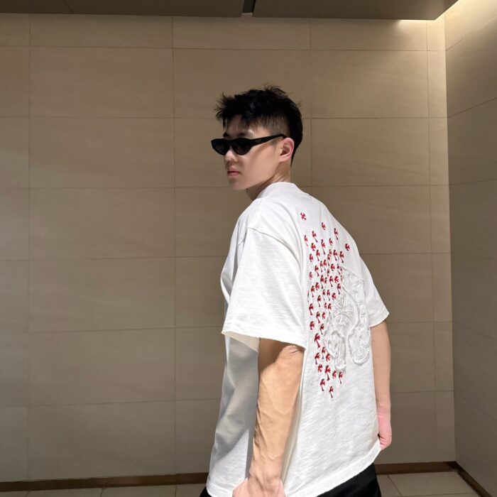 Chrome Hearts patch Embroidery logo Red pattern loose Round neck T-shirt White クロムハーツ アップリケ 刺繍 logo レッド パターン ゆったり クルーネック Tシャツ ホワイト