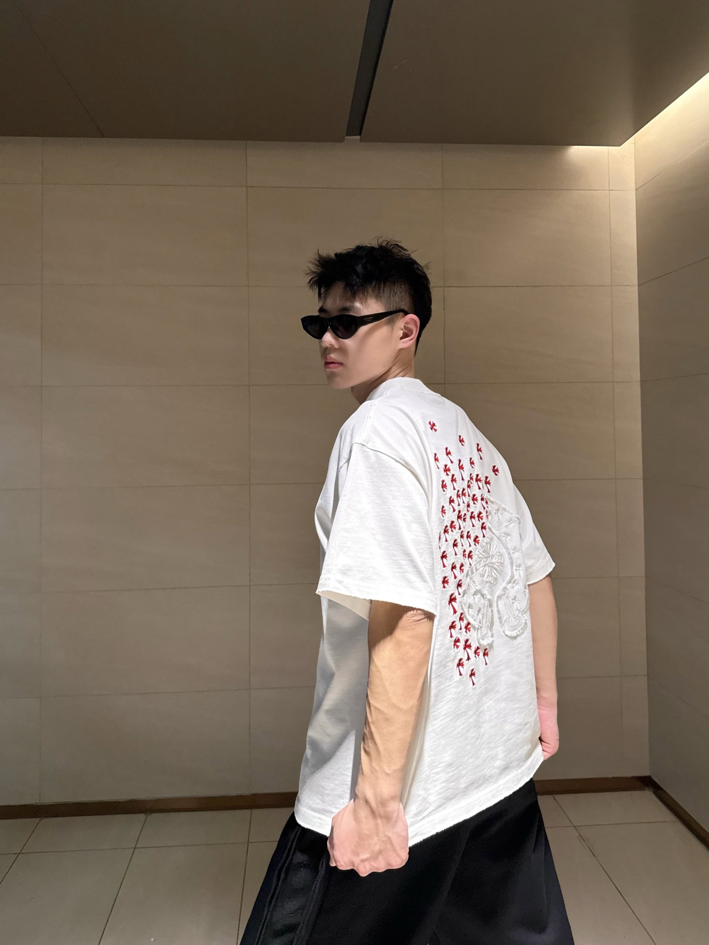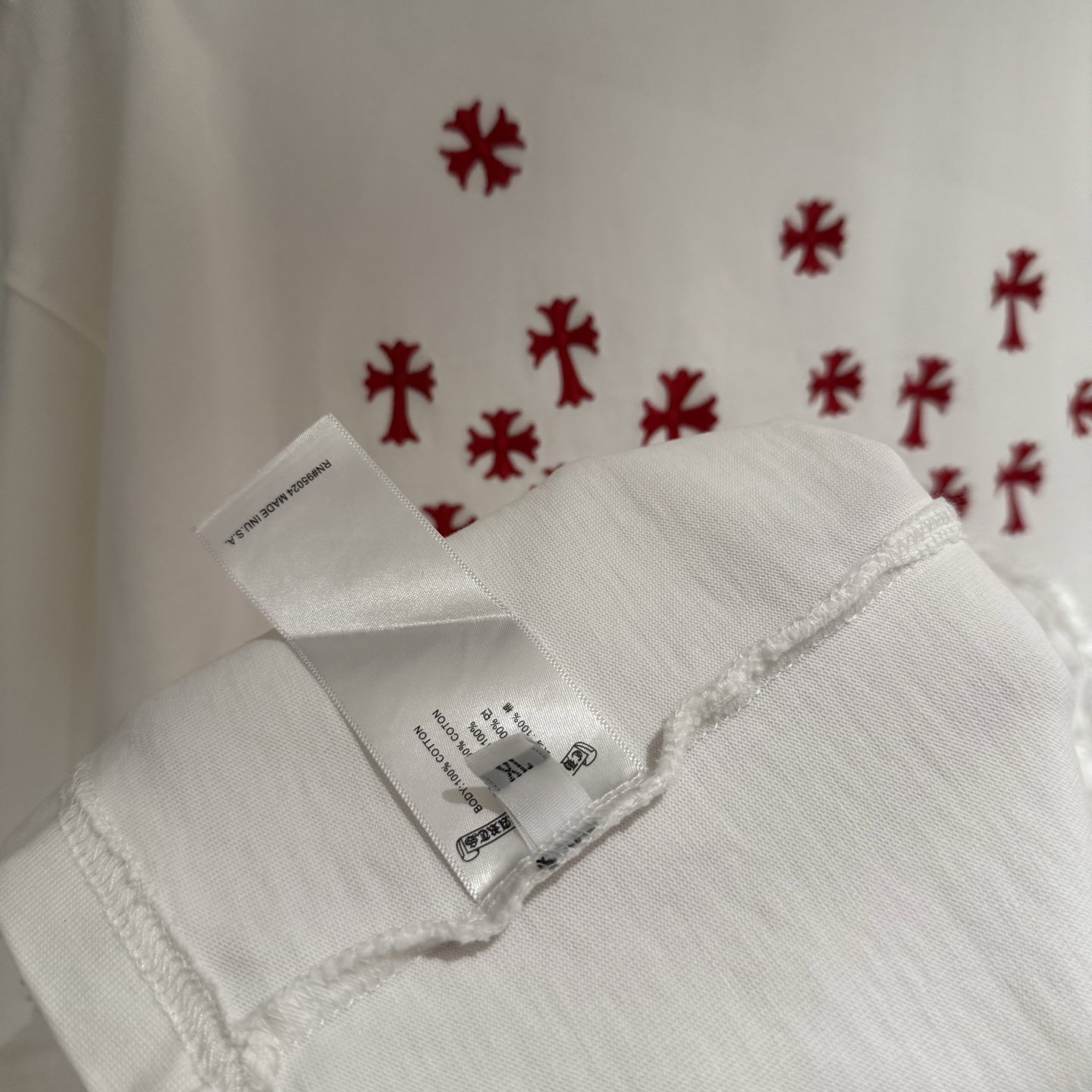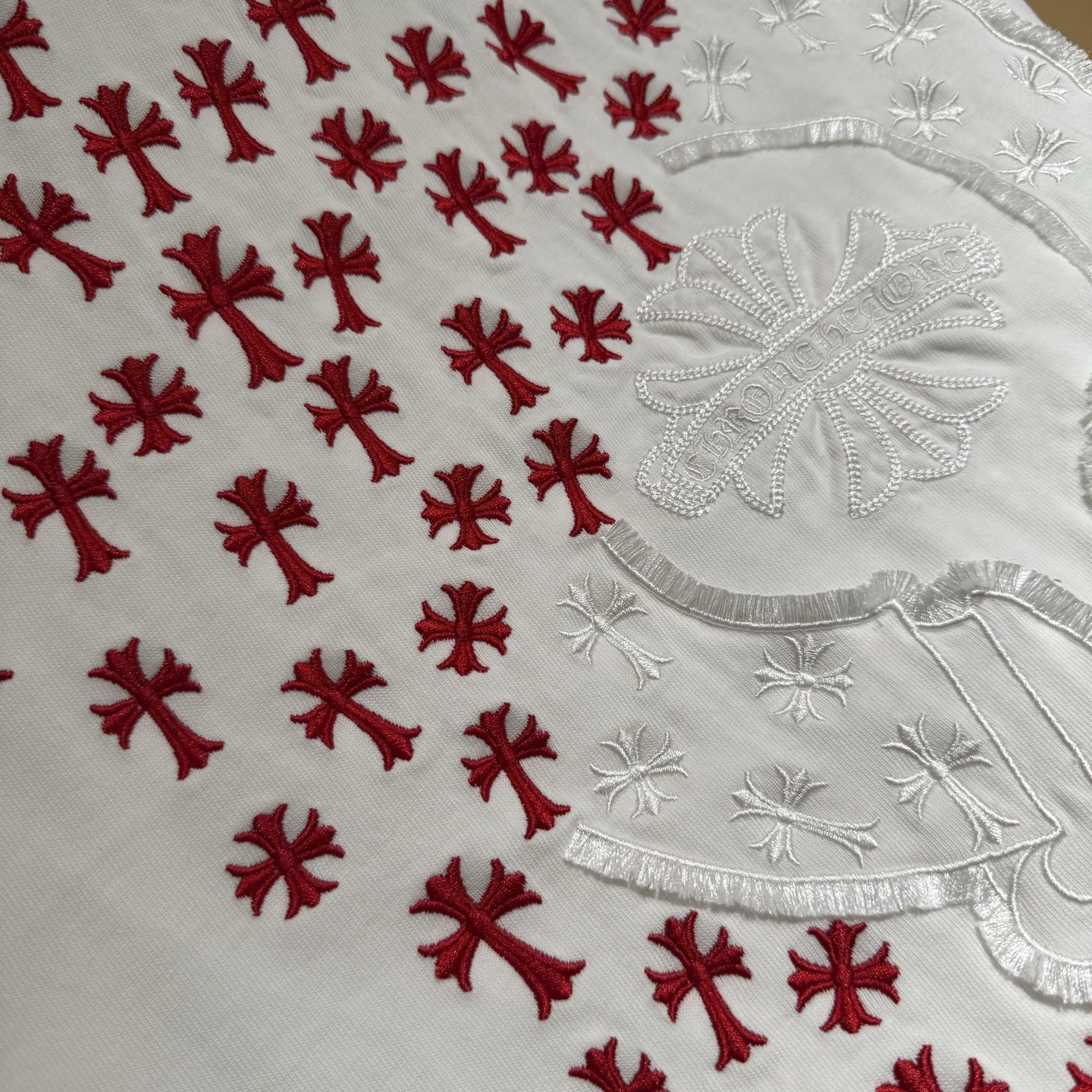 Chrome Hearts patch Embroidery logo Red pattern loose Round neck T-shirt White クロムハーツ アップリケ 刺繍 logo レッド パターン ゆったり クルーネック Tシャツ ホワイト