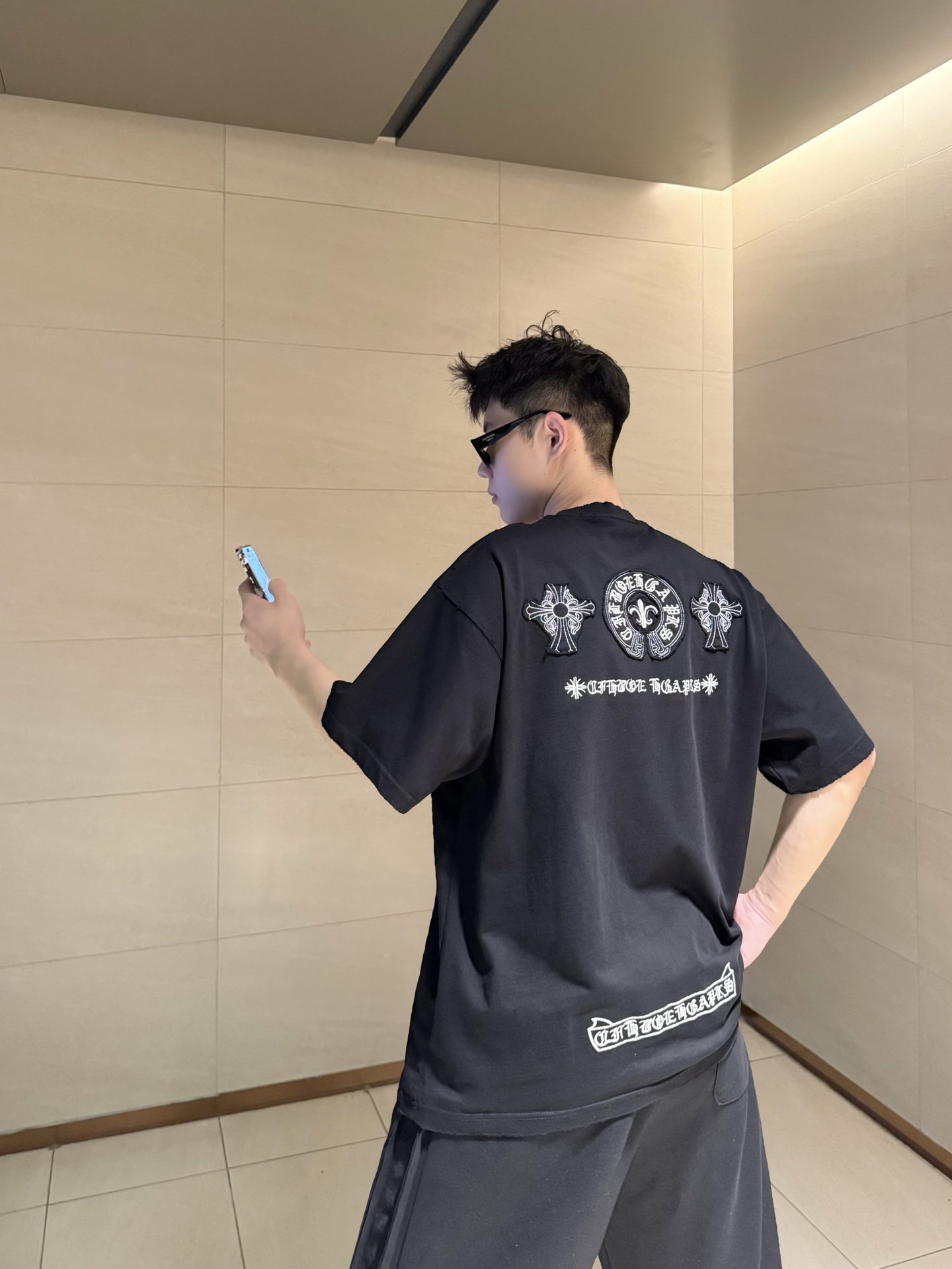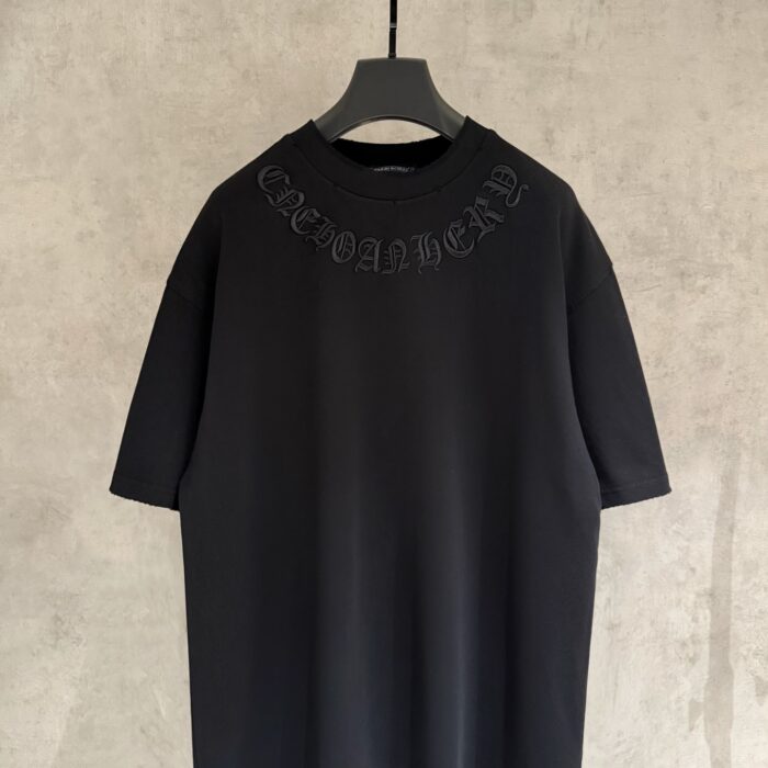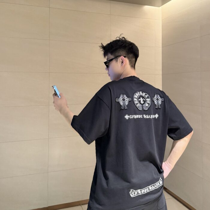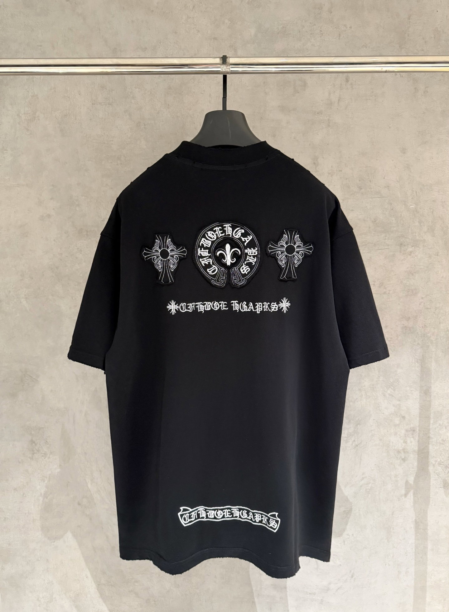 Chrome Hearts patch Embroidery pattern LOGO loose Round neck T-shirt Black クロムハーツ アップリケ 刺繍 パターン LOGO ゆったり クルーネック Tシャツ ブラック