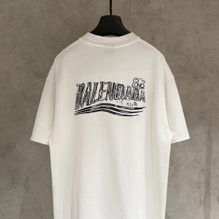 Balenciaga distressed Embroidery Letter logo Round neck T-shirt バレンシアガ ディストレス 刺繍 モジ logo クルーネック Tシャツ