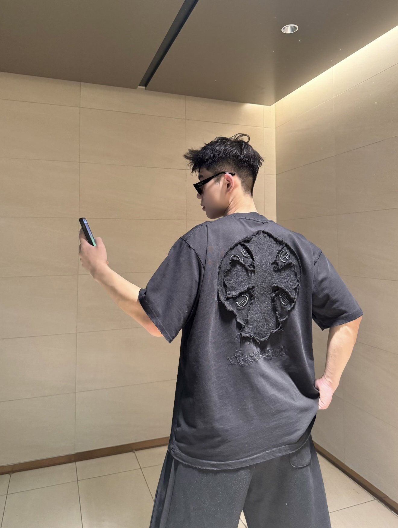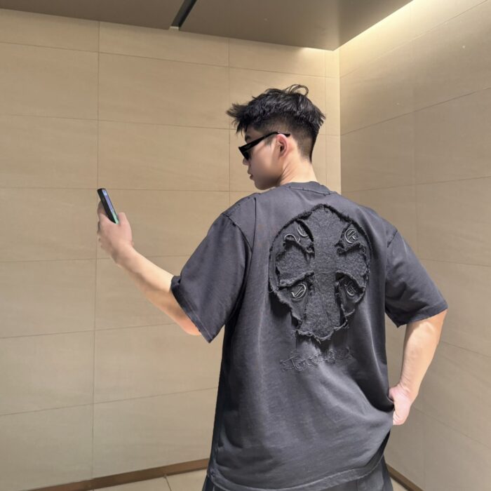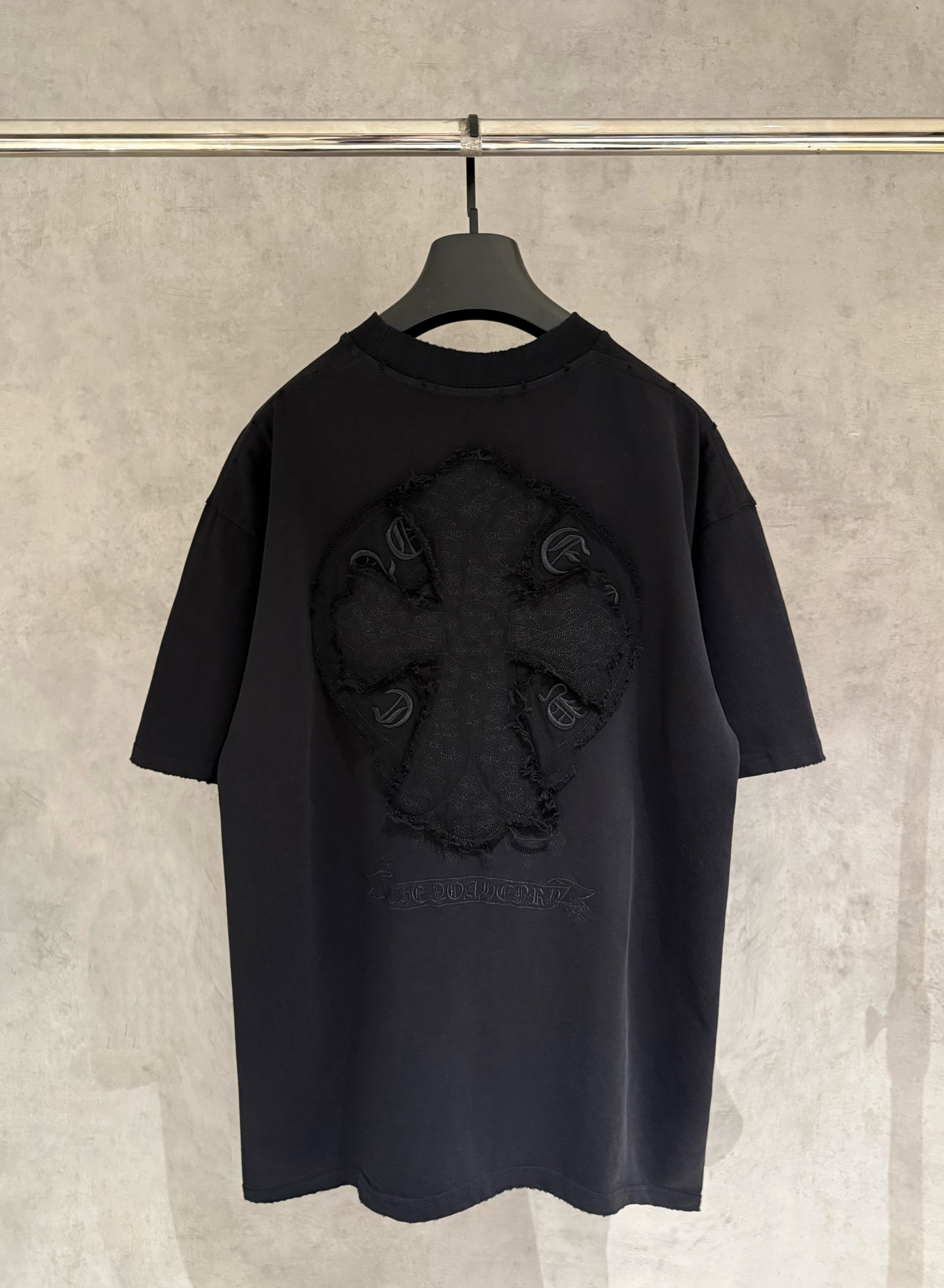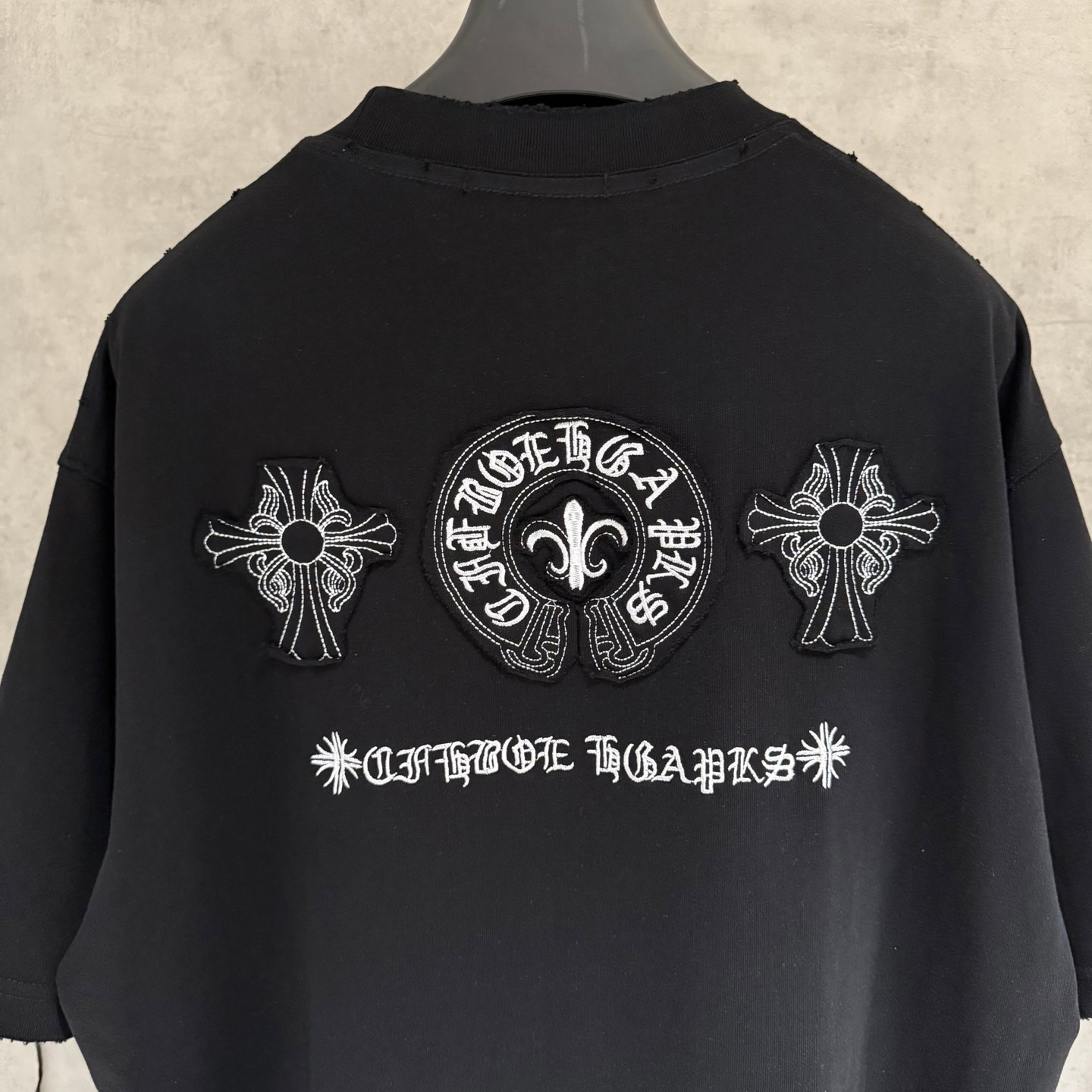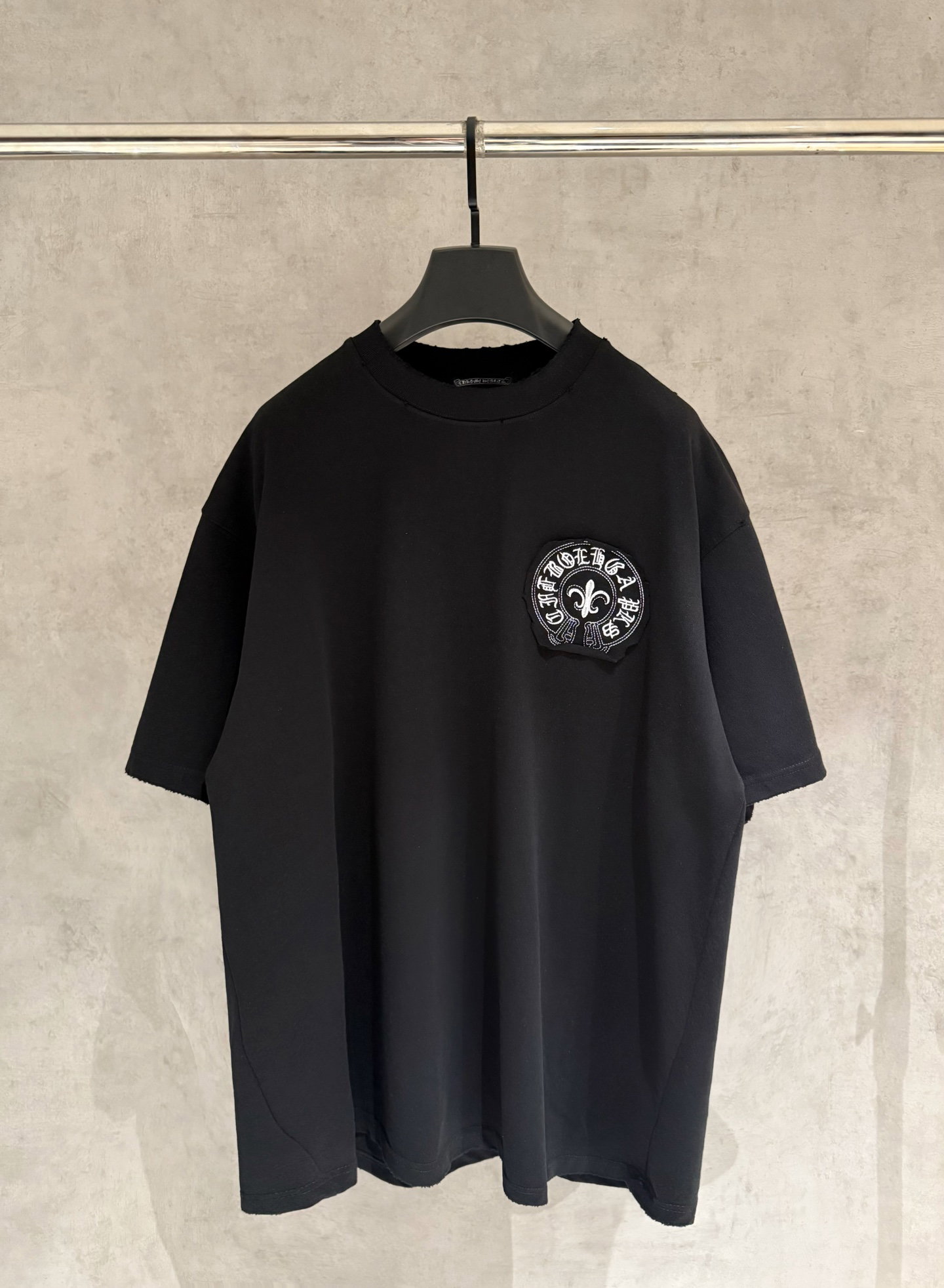 Chrome Hearts patch Embroidery pattern LOGO loose Round neck T-shirt Black クロムハーツ アップリケ 刺繍 パターン LOGO ゆったり クルーネック Tシャツ ブラック