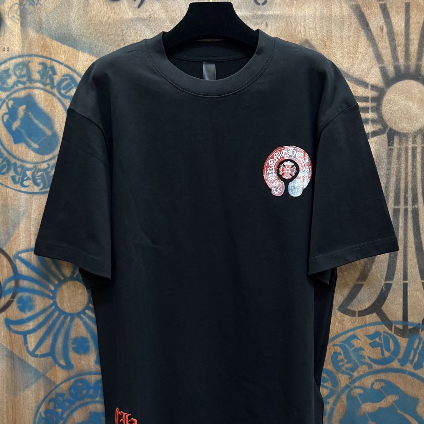 Chrome Hearts patch Embroidery pattern loose Round neck T-shirt Black クロムハーツ アップリケ 刺繍 パターン ゆったり クルーネック Tシャツ ブラック