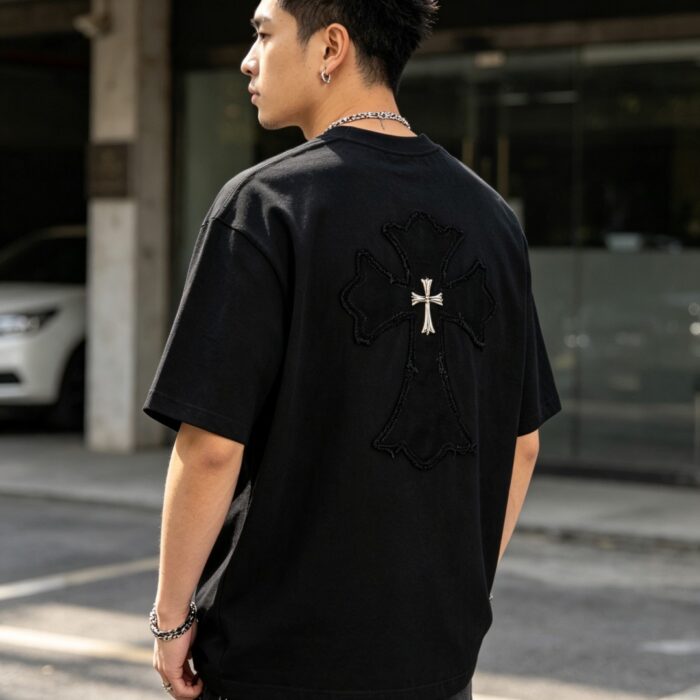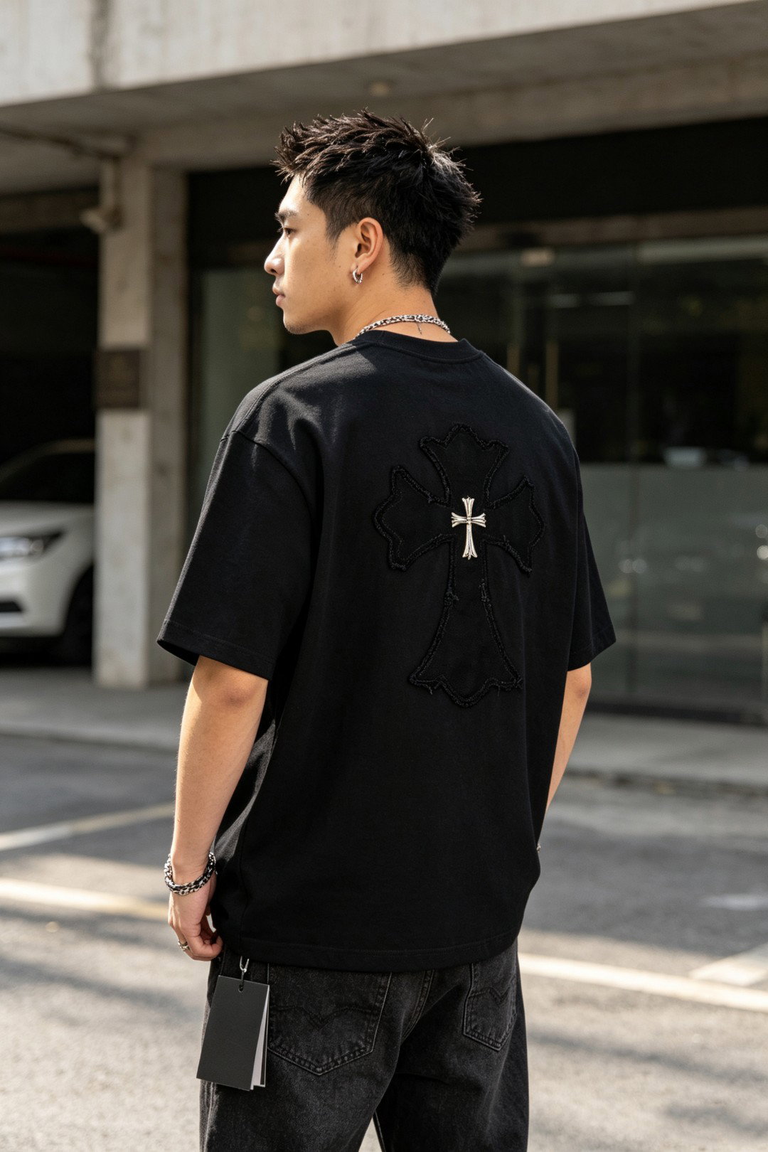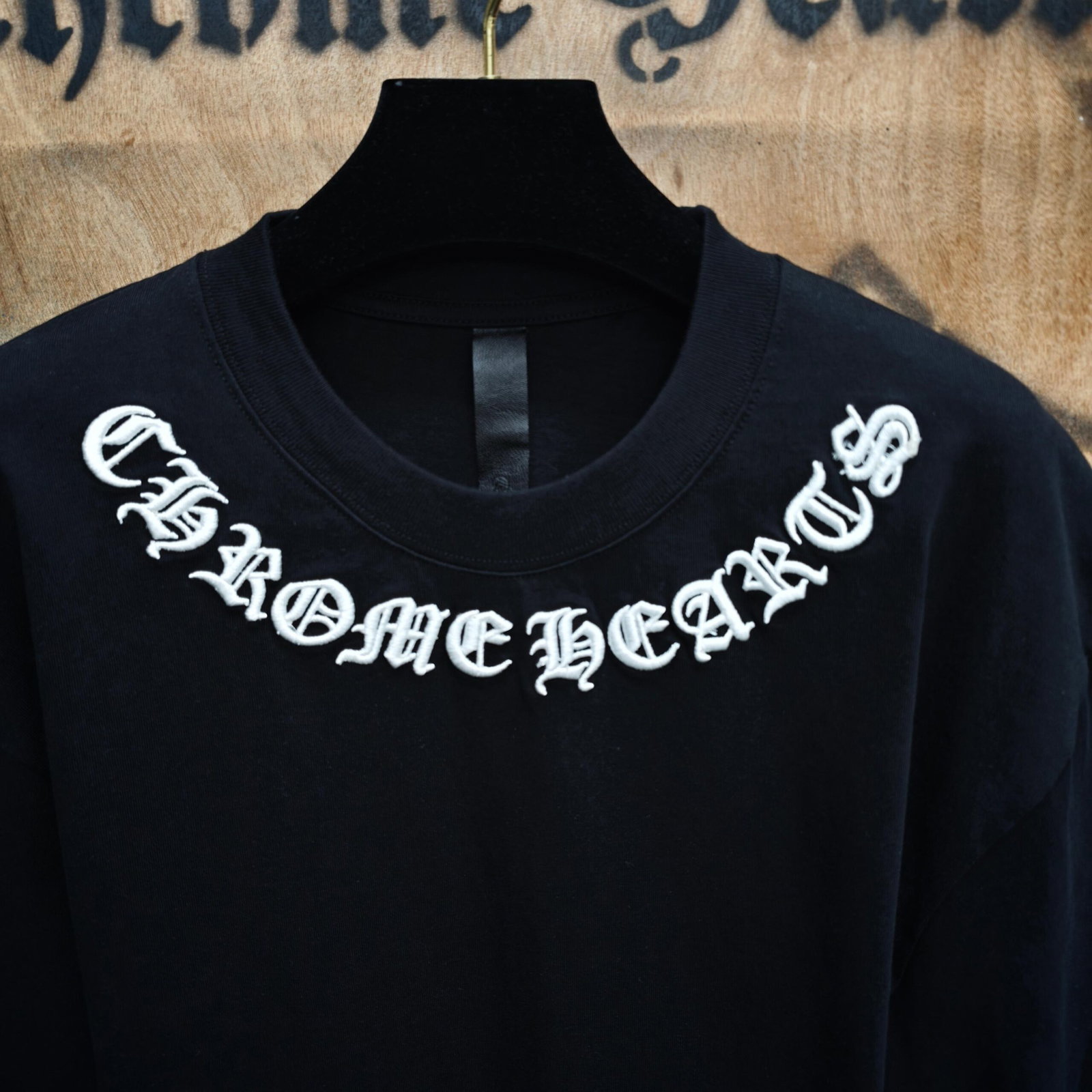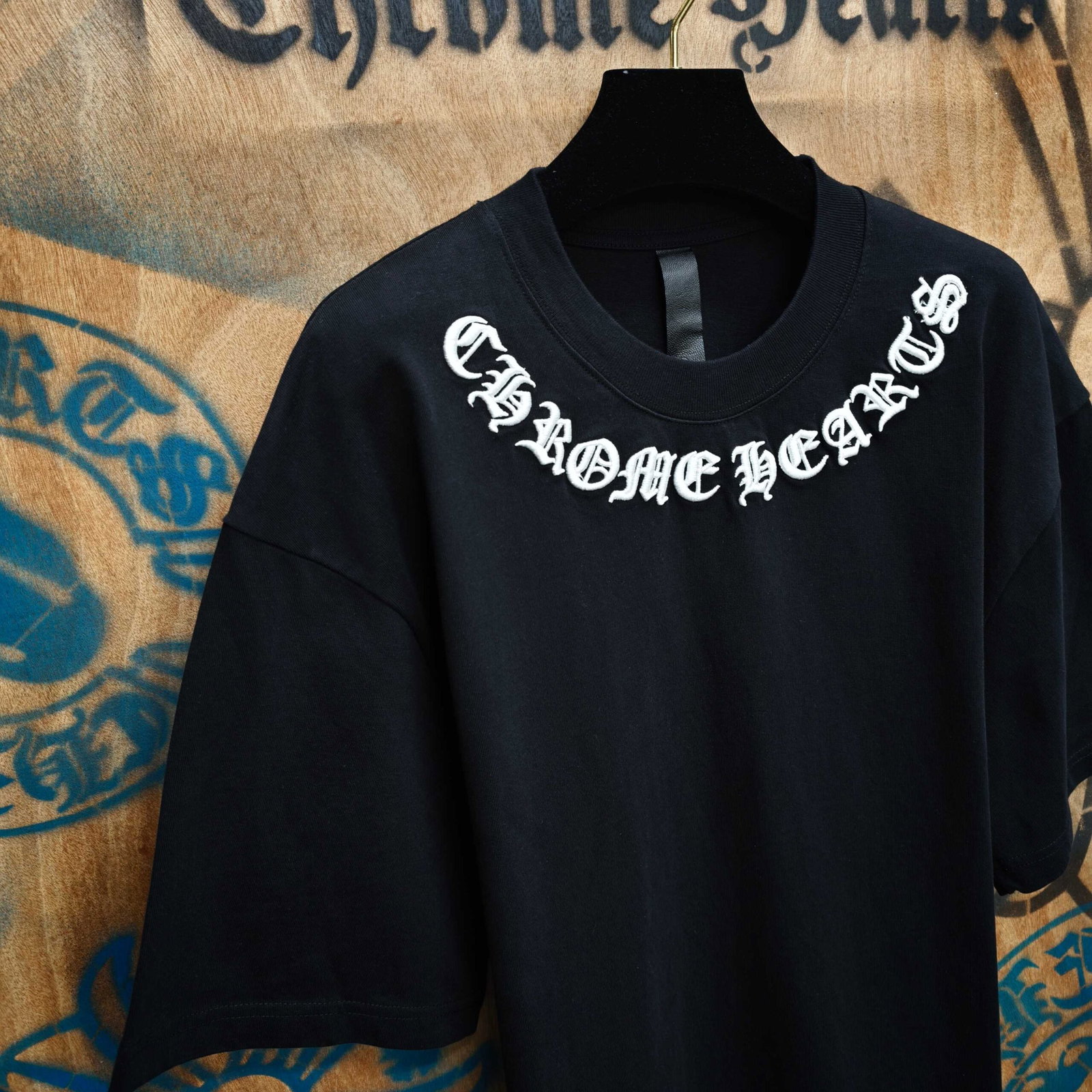 Chrome Hearts patch Embroidery pattern loose Round neck T-shirt Black クロムハーツ アップリケ 刺繍 パターン ゆったり クルーネック Tシャツ ブラック