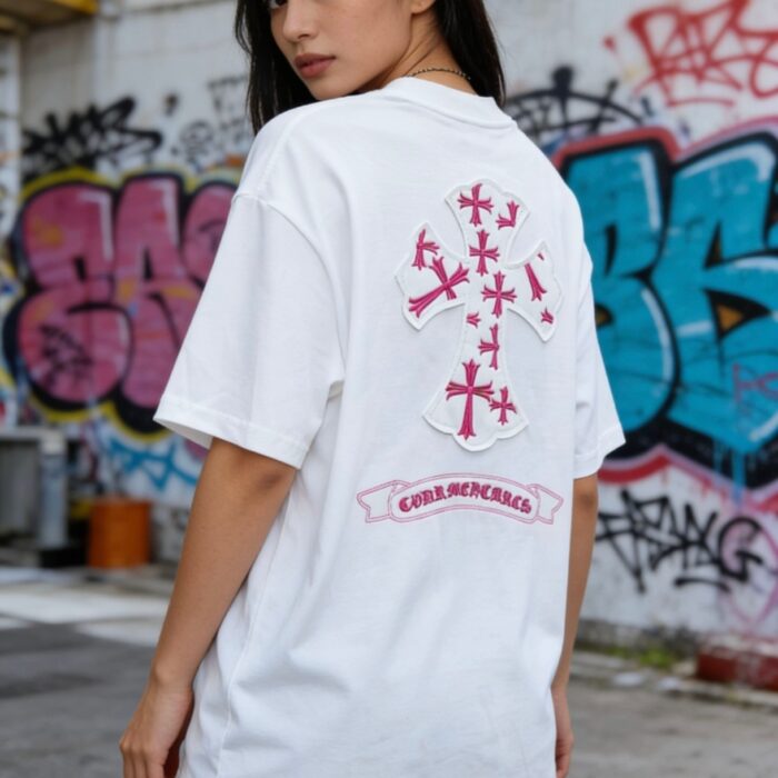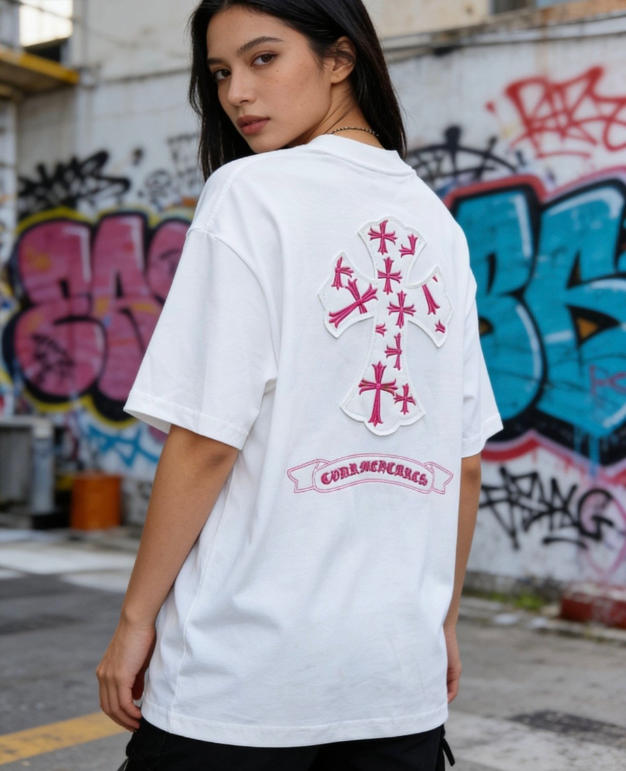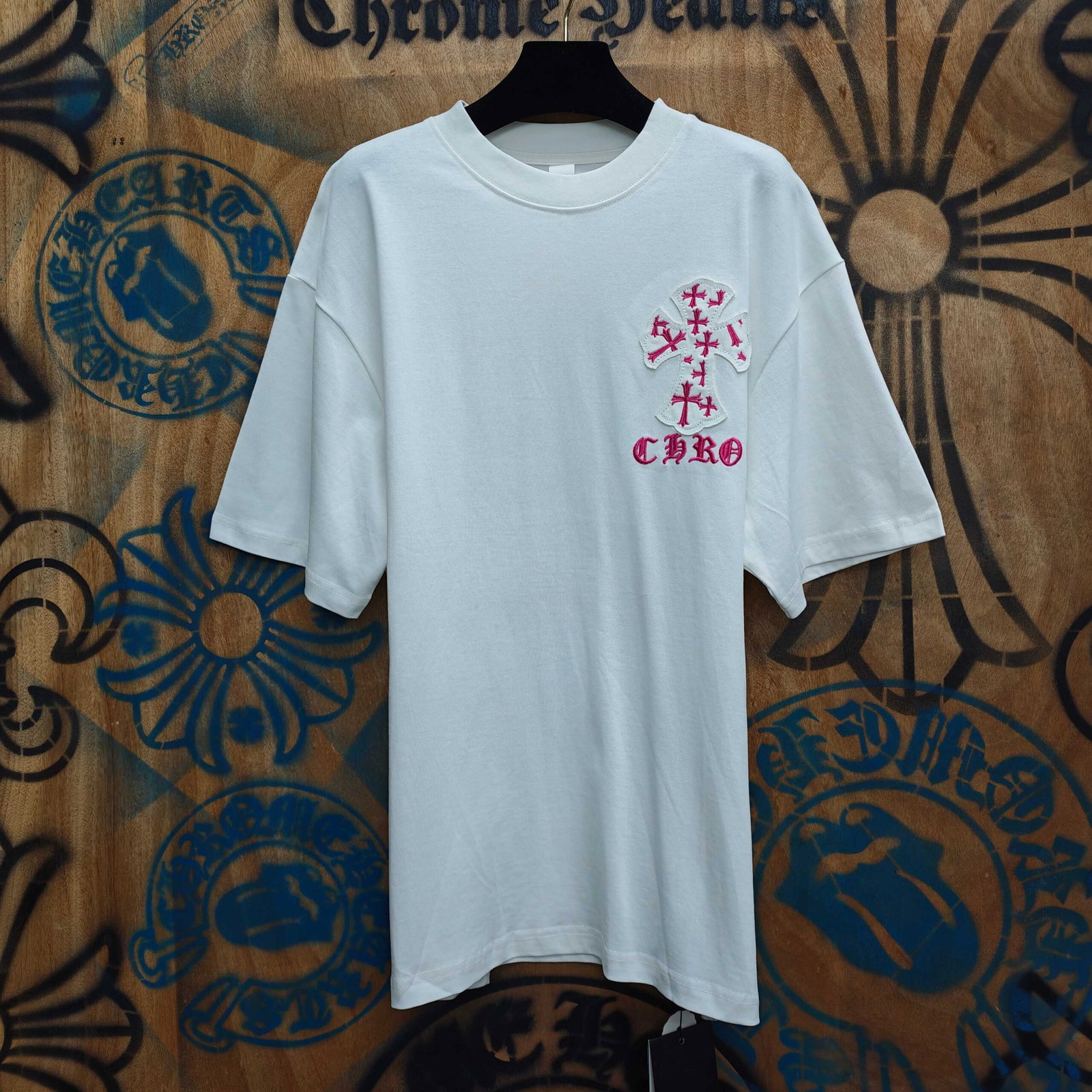 Chrome Hearts patch Embroidery pattern loose Round neck T-shirt White クロムハーツ アップリケ 刺繍 パターン ゆったり クルーネック Tシャツ ホワイト