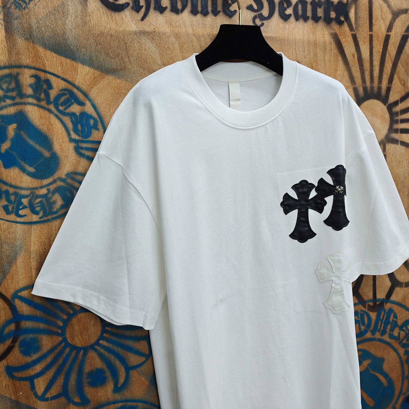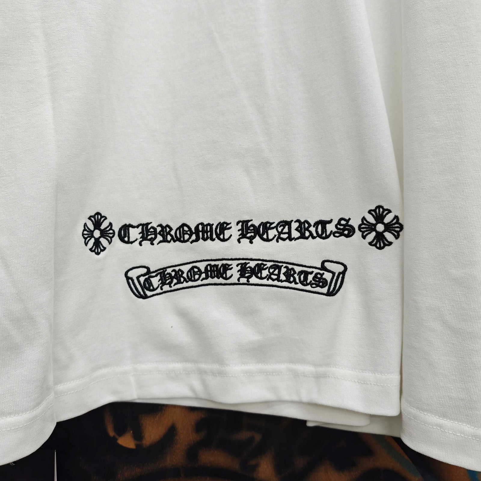 Chrome Hearts patch Embroidery pattern loose Round neck T-shirt White クロムハーツ アップリケ 刺繍 パターン ゆったり クルーネック Tシャツ ホワイト