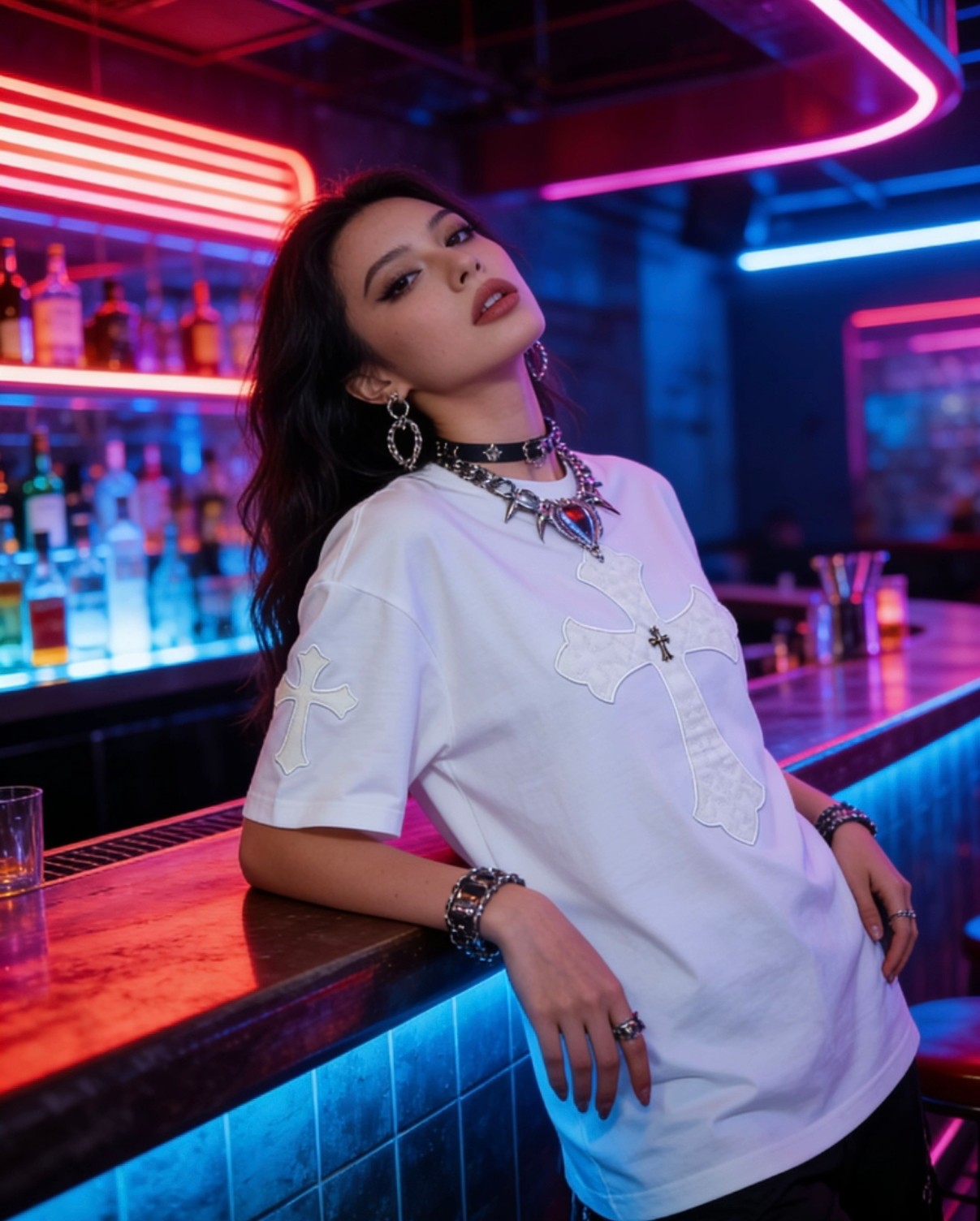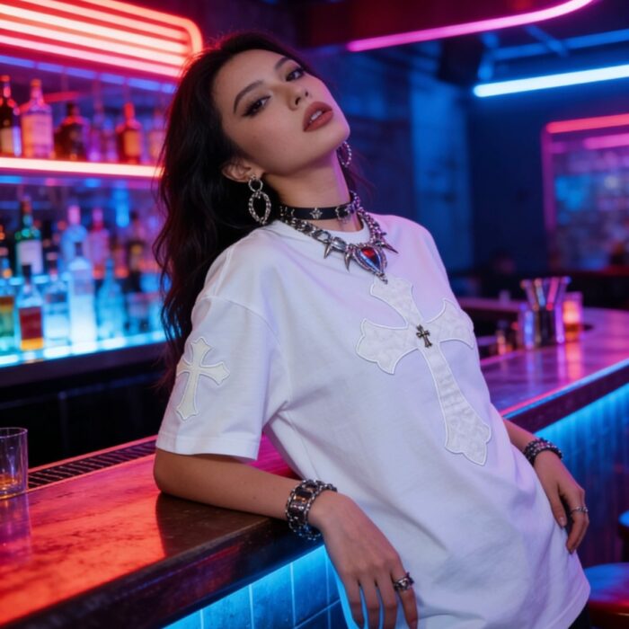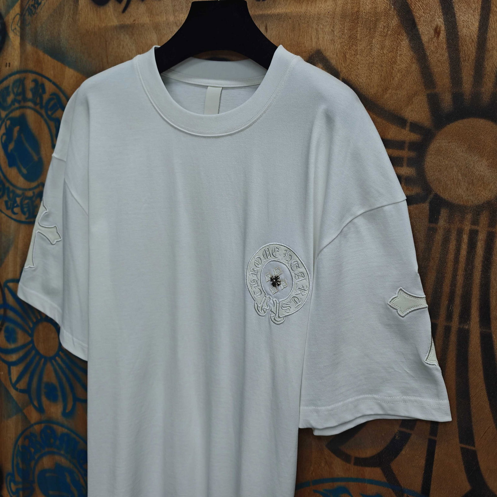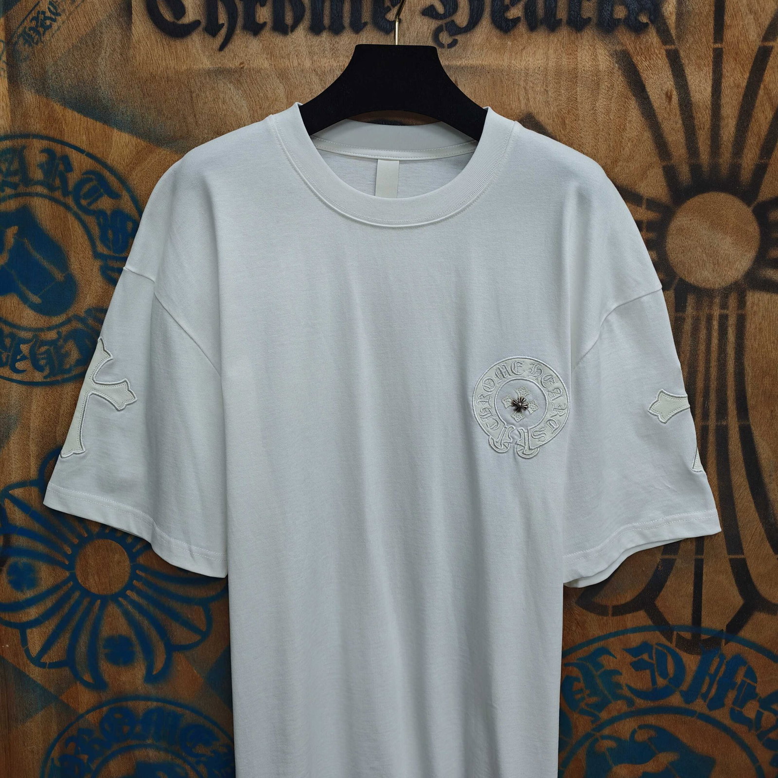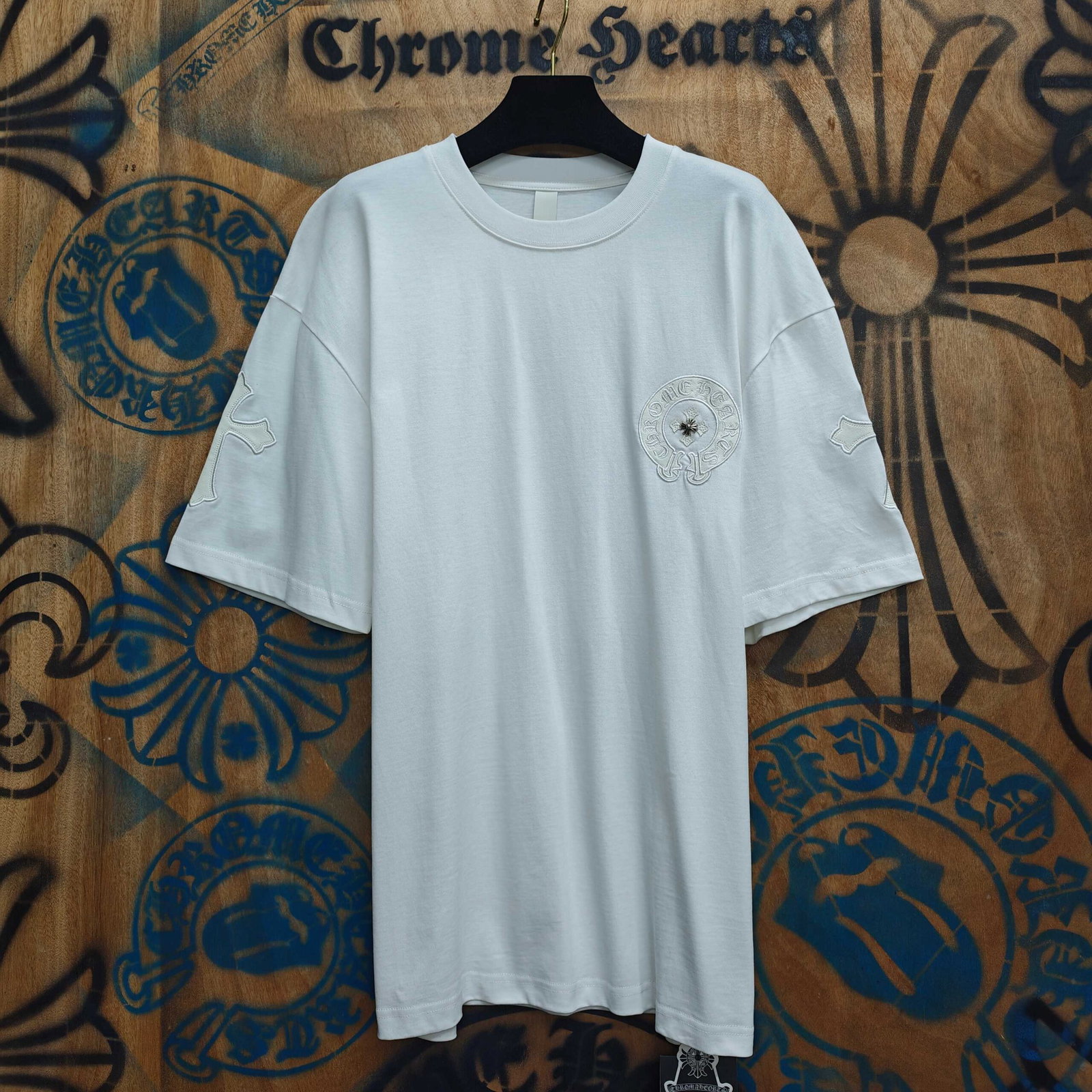 Chrome Hearts patch Embroidery pattern loose Round neck T-shirt White クロムハーツ アップリケ 刺繍 パターン ゆったり クルーネック Tシャツ ホワイト