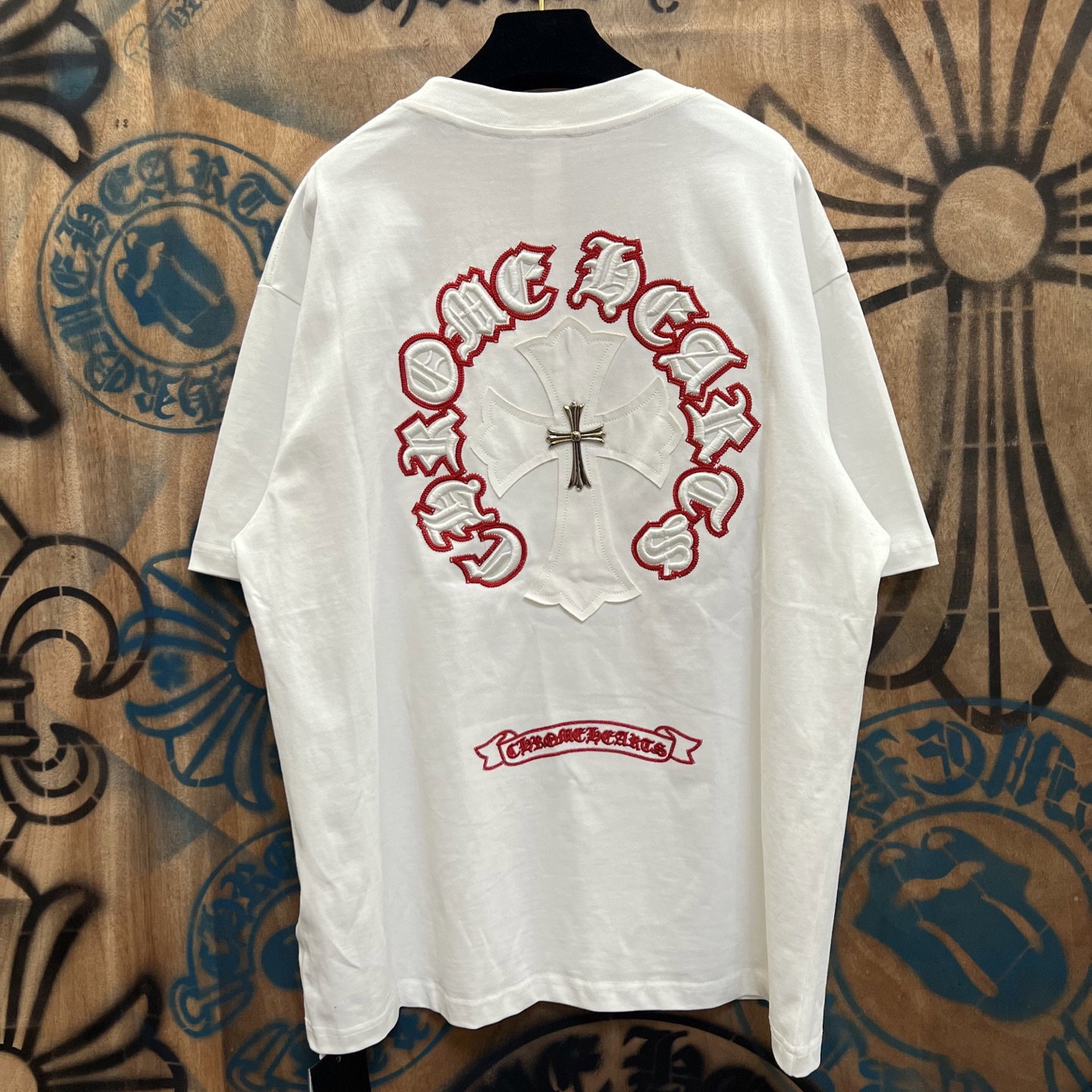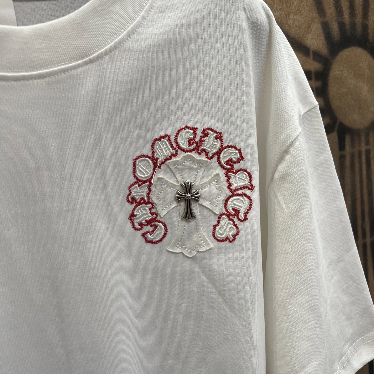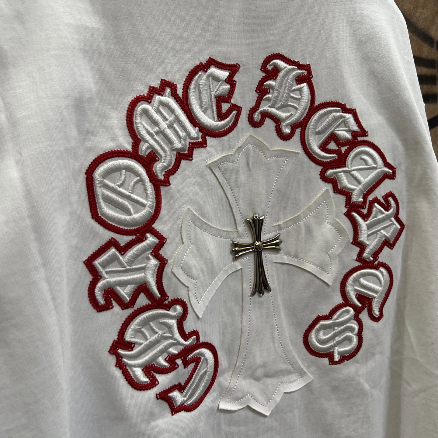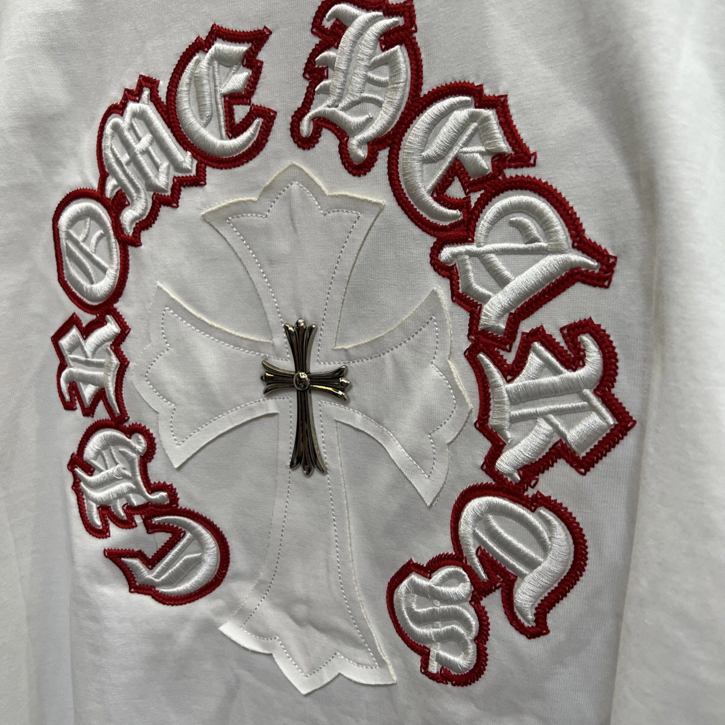 Chrome Hearts patch Embroidery pattern metal logo loose Round neck T-shirt White クロムハーツ アップリケ 刺繍 パターン きんぞく logo ゆったり クルーネック Tシャツ ホワイト