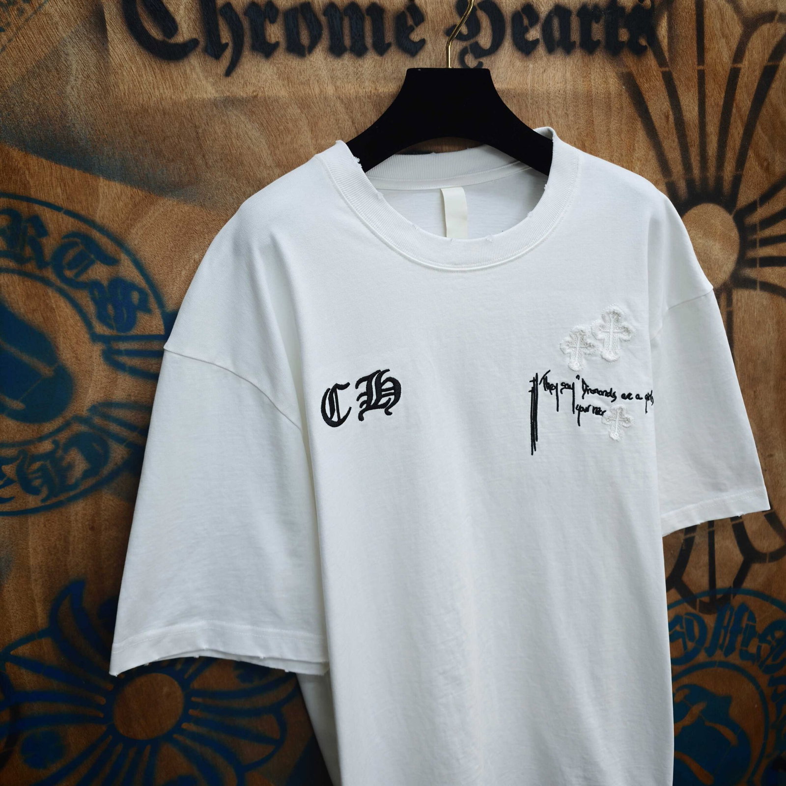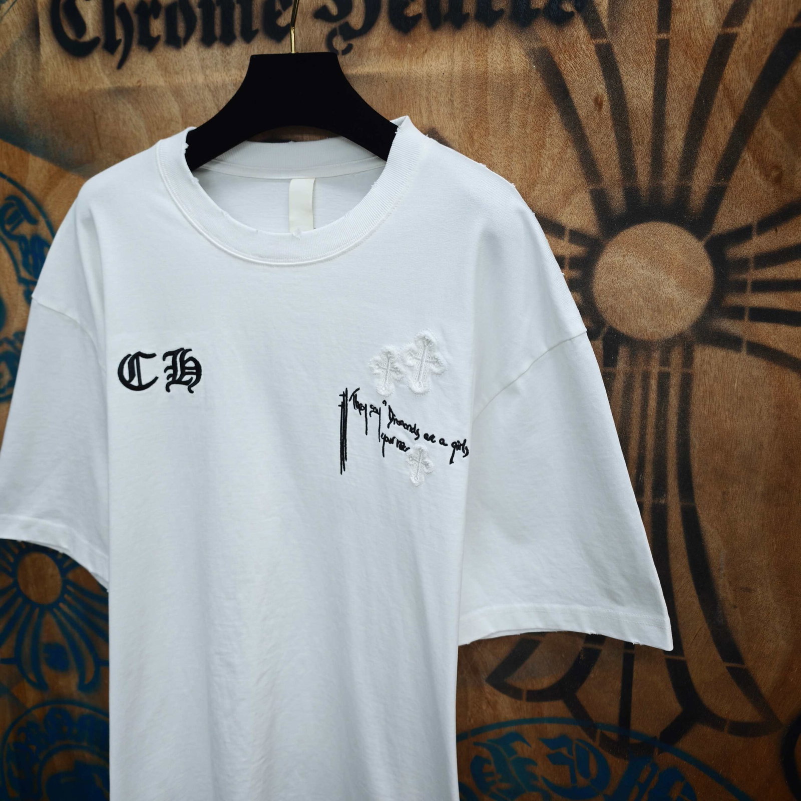Chrome Hearts patch Embroidery pattern Print logo loose Round neck T-shirt White クロムハーツ アップリケ 刺繍 パターン プリント logo ゆったり クルーネック Tシャツ ホワイト