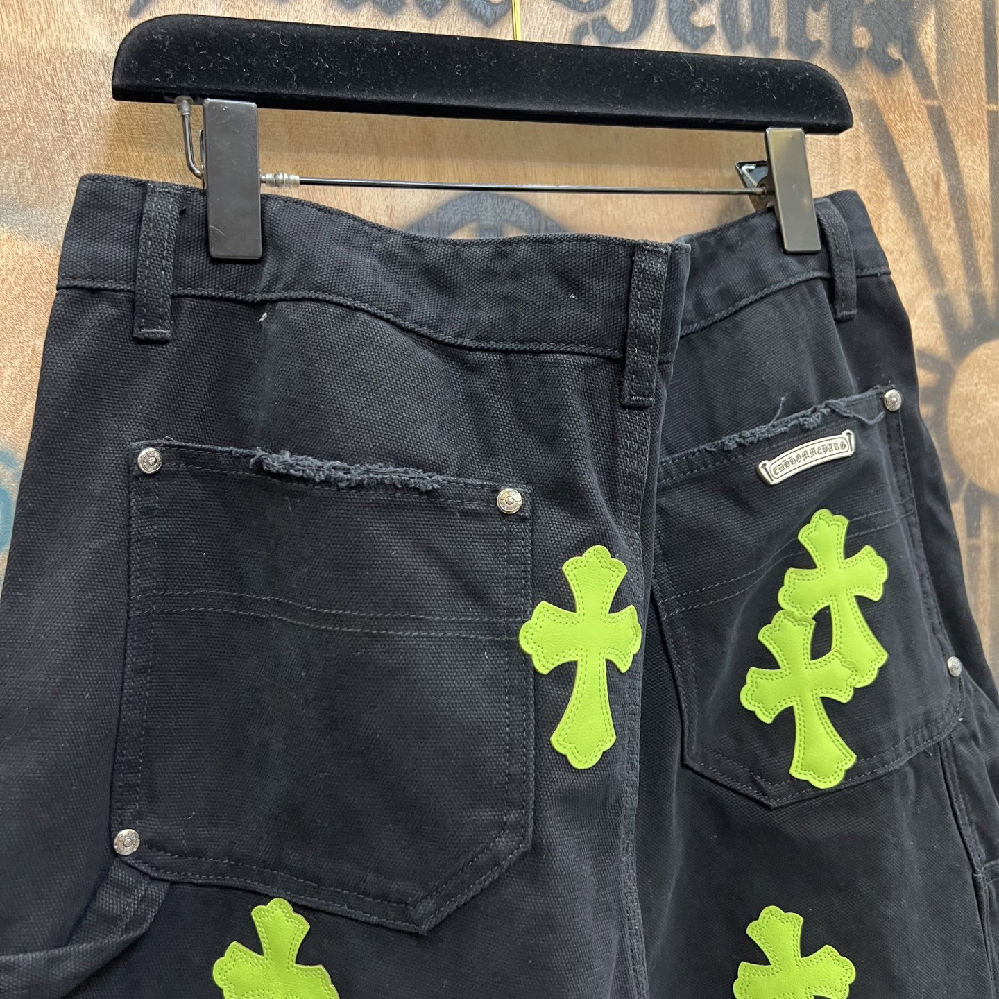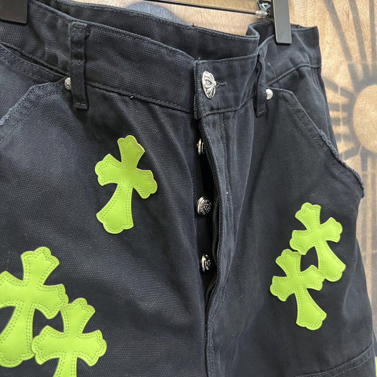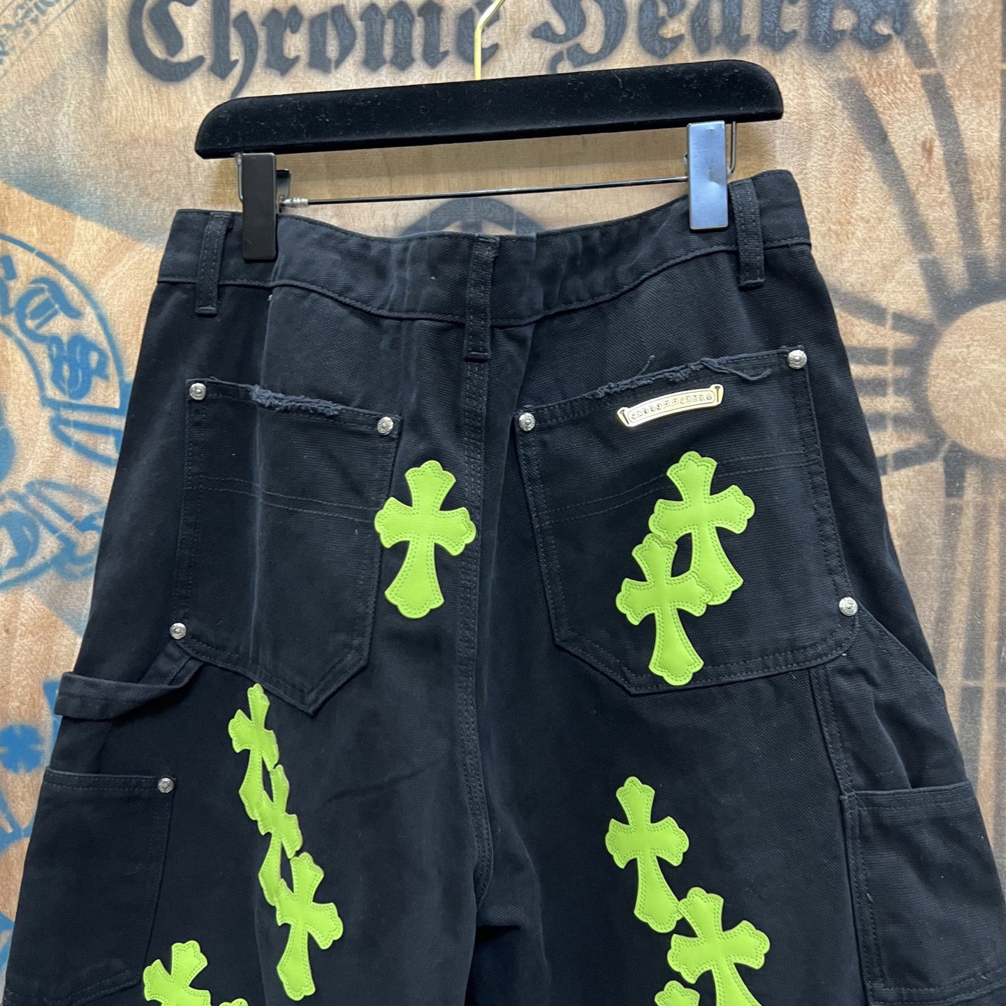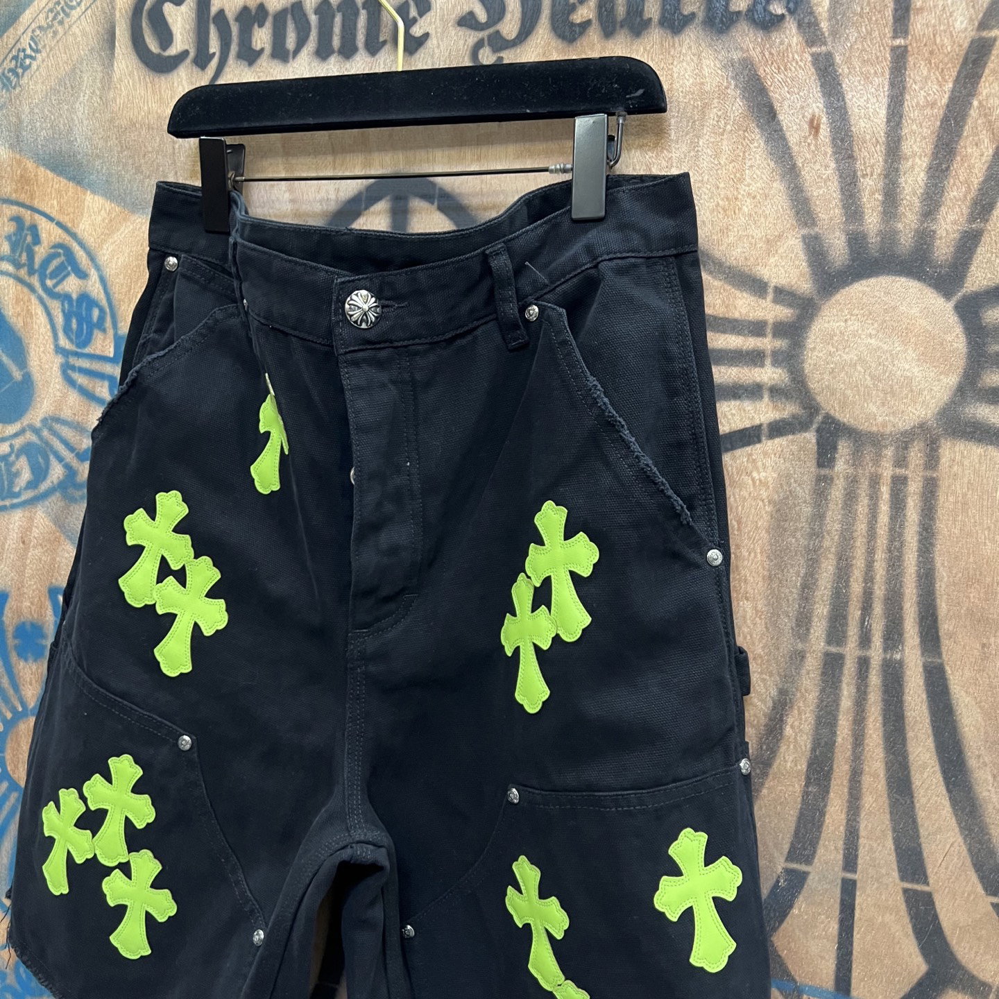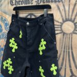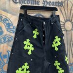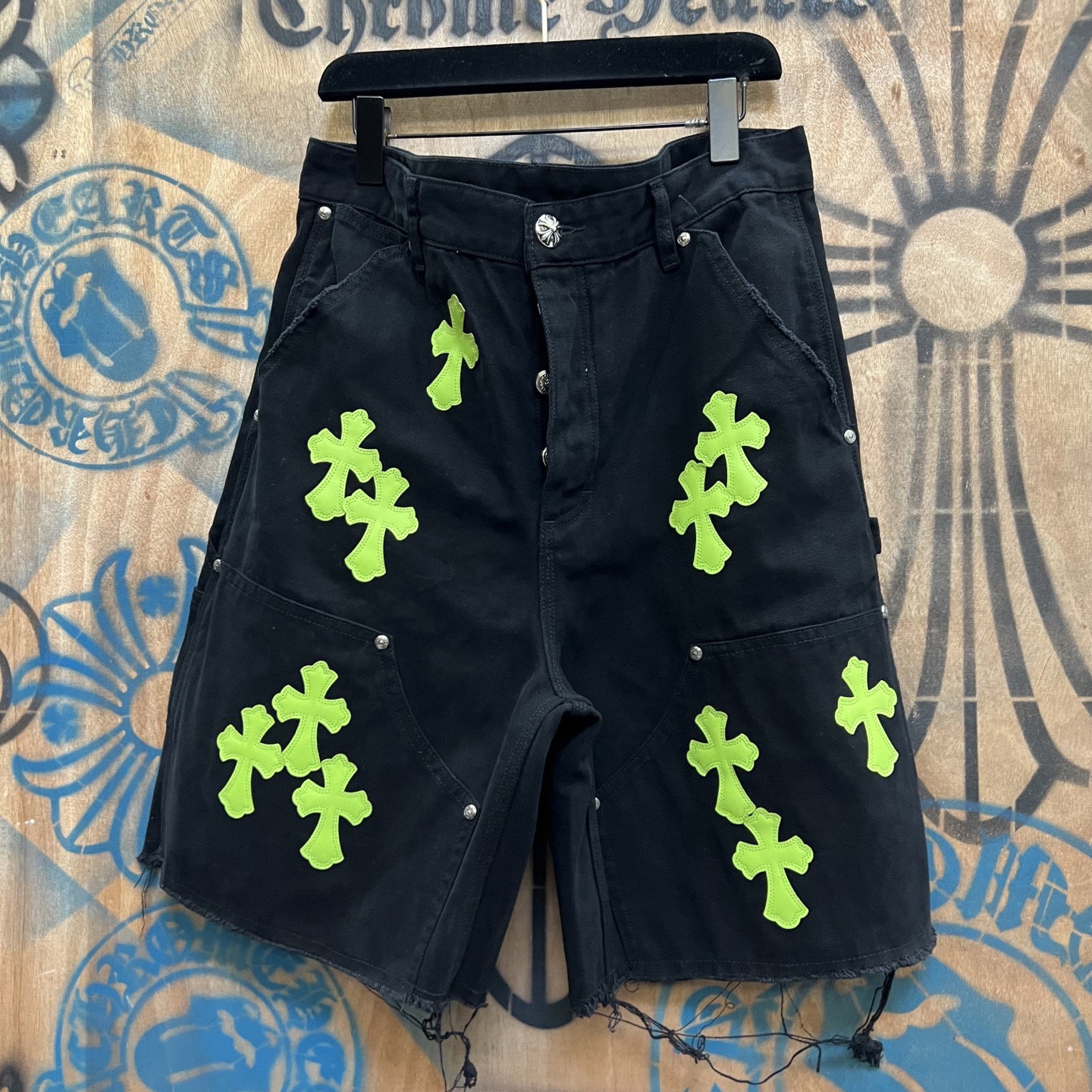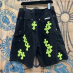 Chrome Hearts patch Green Yellow pattern loose casual DENIM shorts Black クロムハーツ アップリケ プリント グリーン パターン ゆったり カジュアル デニム ショーツ ブラック