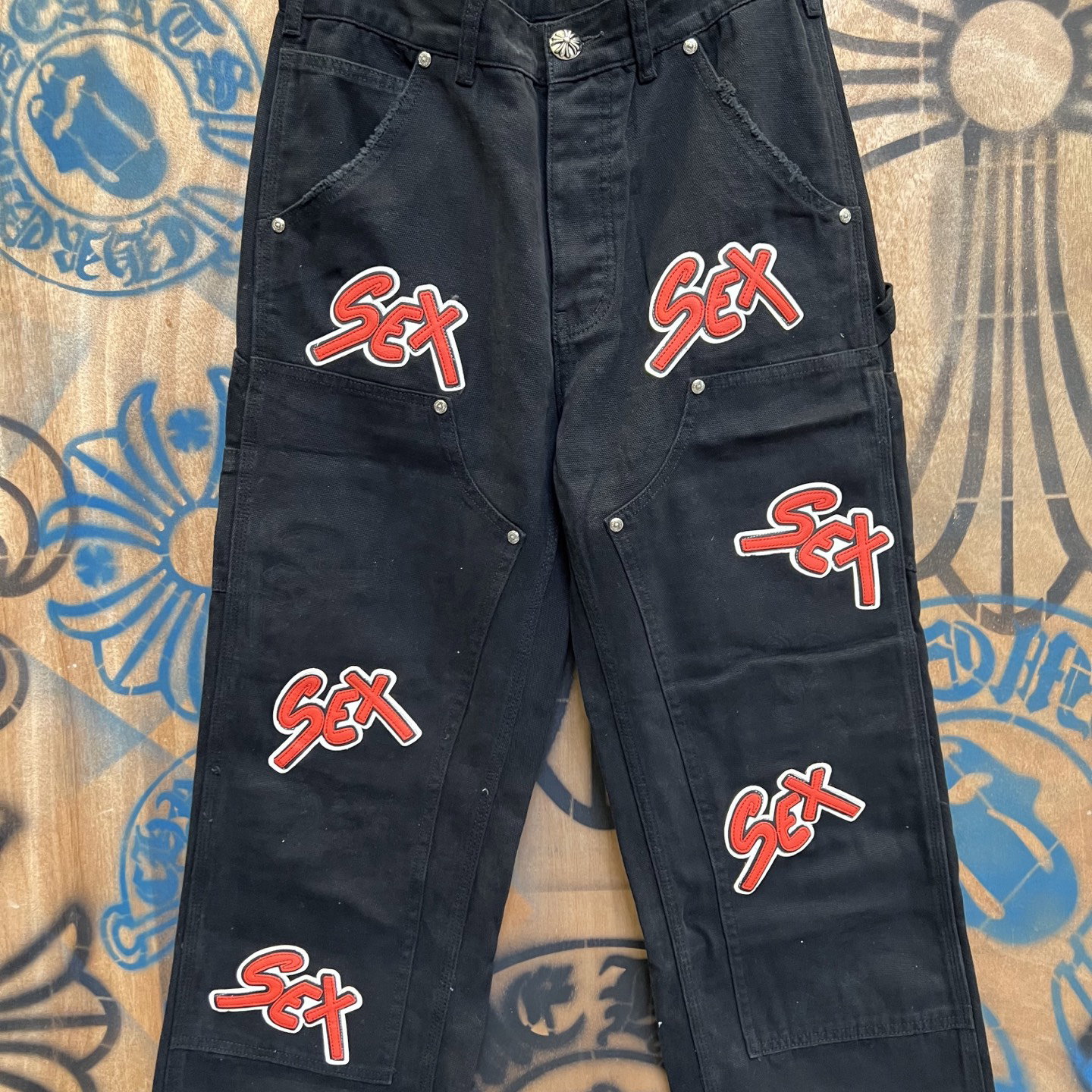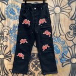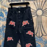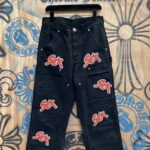 Chrome Hearts patch Print Red pattern loose casual DENIM JEANS Black クロムハーツ アップリケ プリント レッド パターン ゆったり カジュアル デニムパンツ ブラック