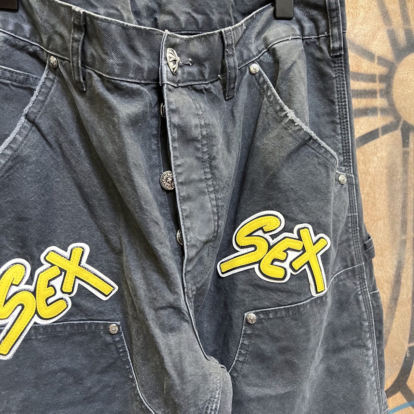 Chrome Hearts patch Print Yellow pattern loose casual DENIM JEANS クロムハーツ アップリケ プリント イエロー パターン ゆったり カジュアル デニムパンツ