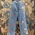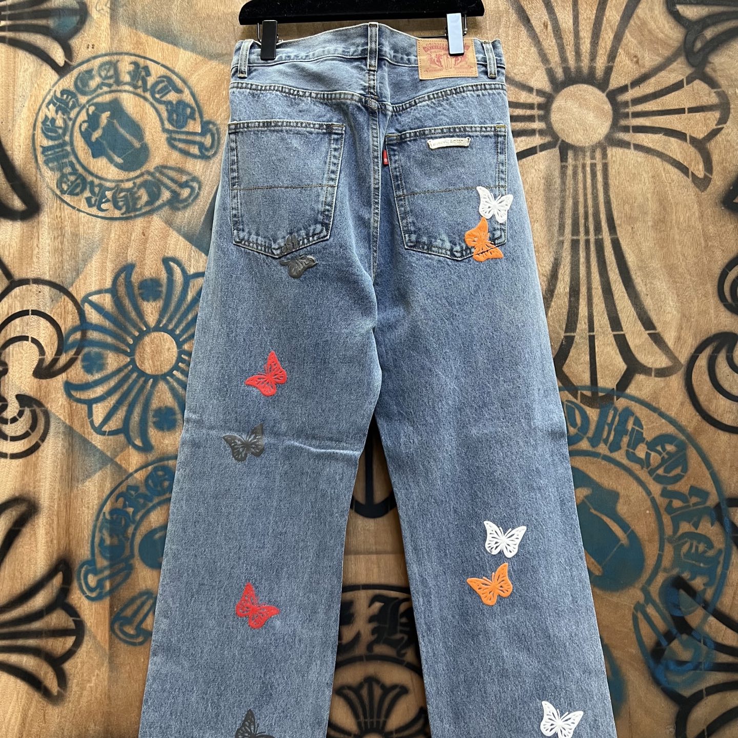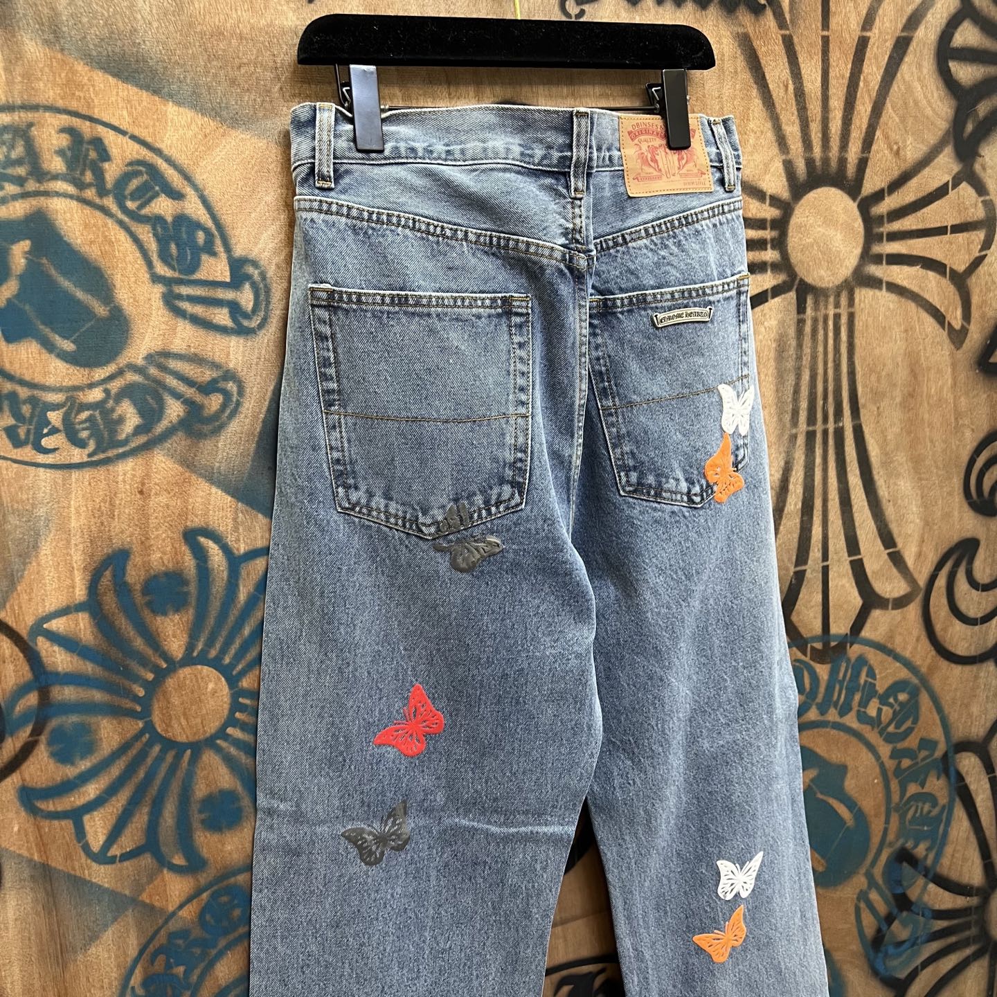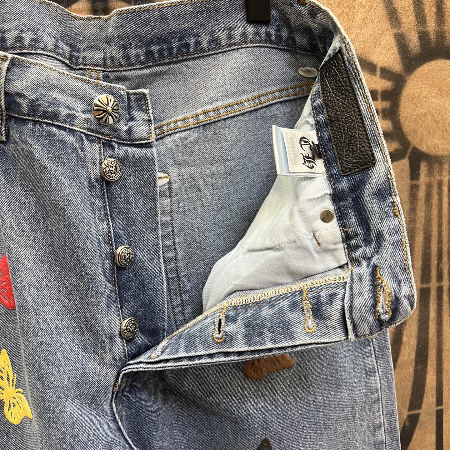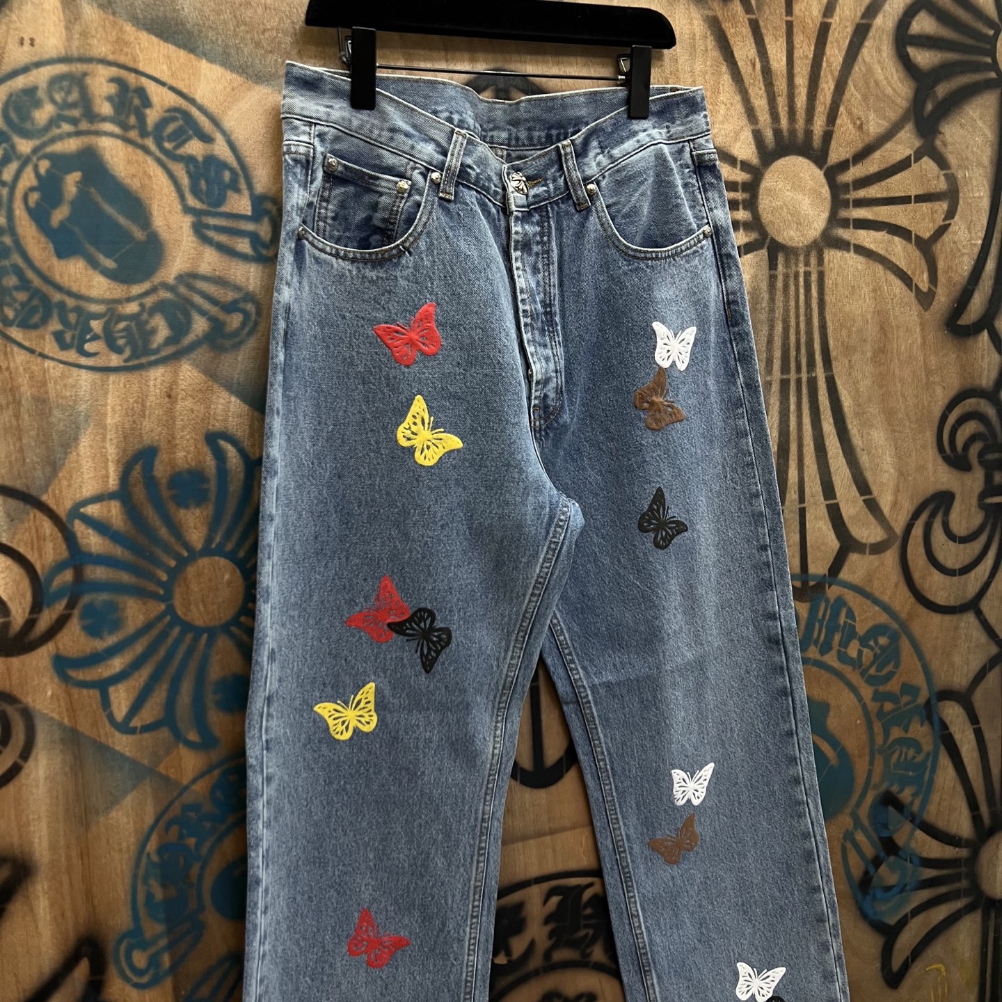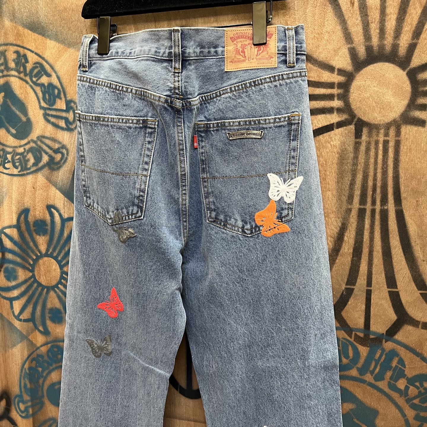 Chrome Hearts patch Print butterfly pattern loose casual DENIM JEANS Blue クロムハーツ アップリケ プリント ちょう パターン ゆったり カジュアル デニムパンツ ブルー