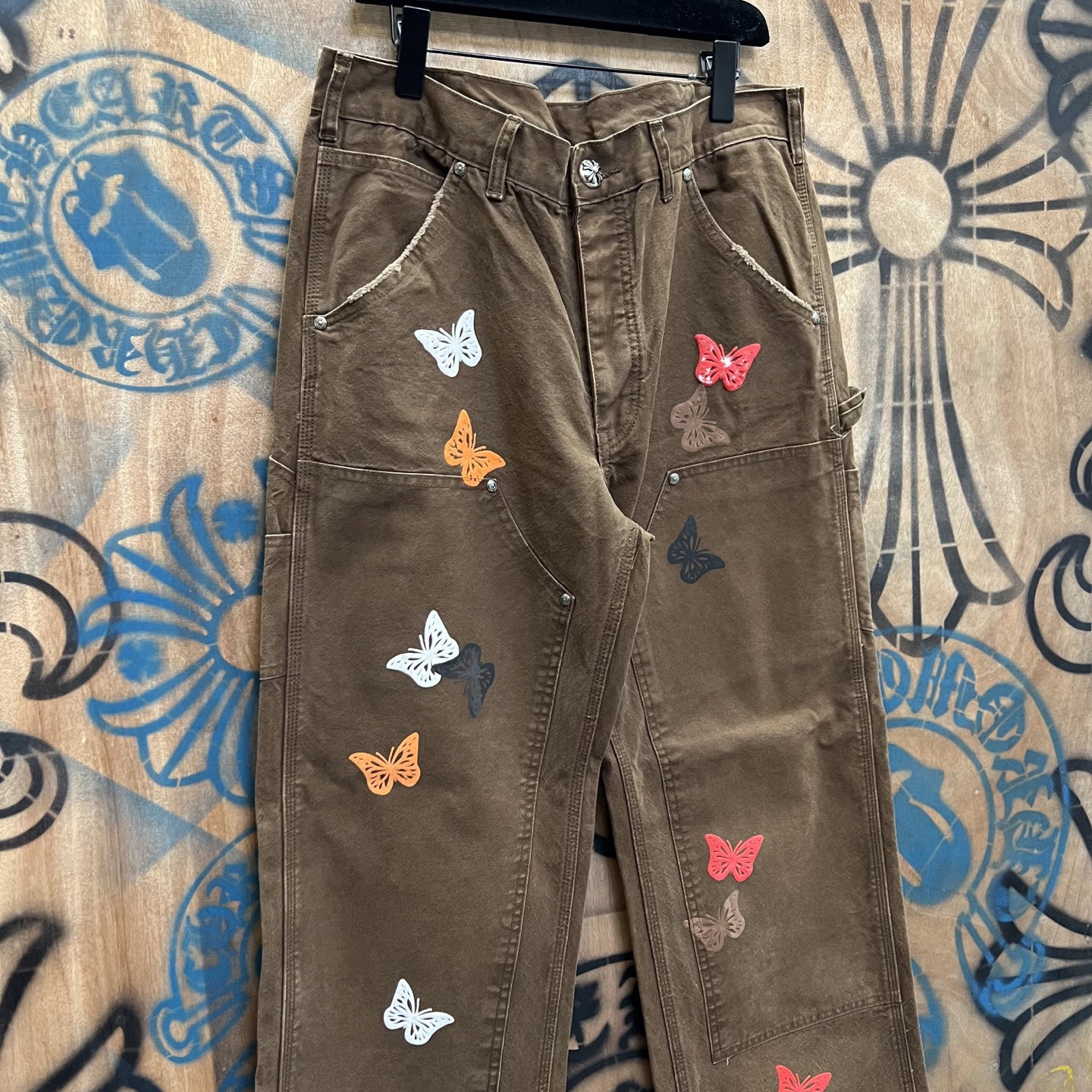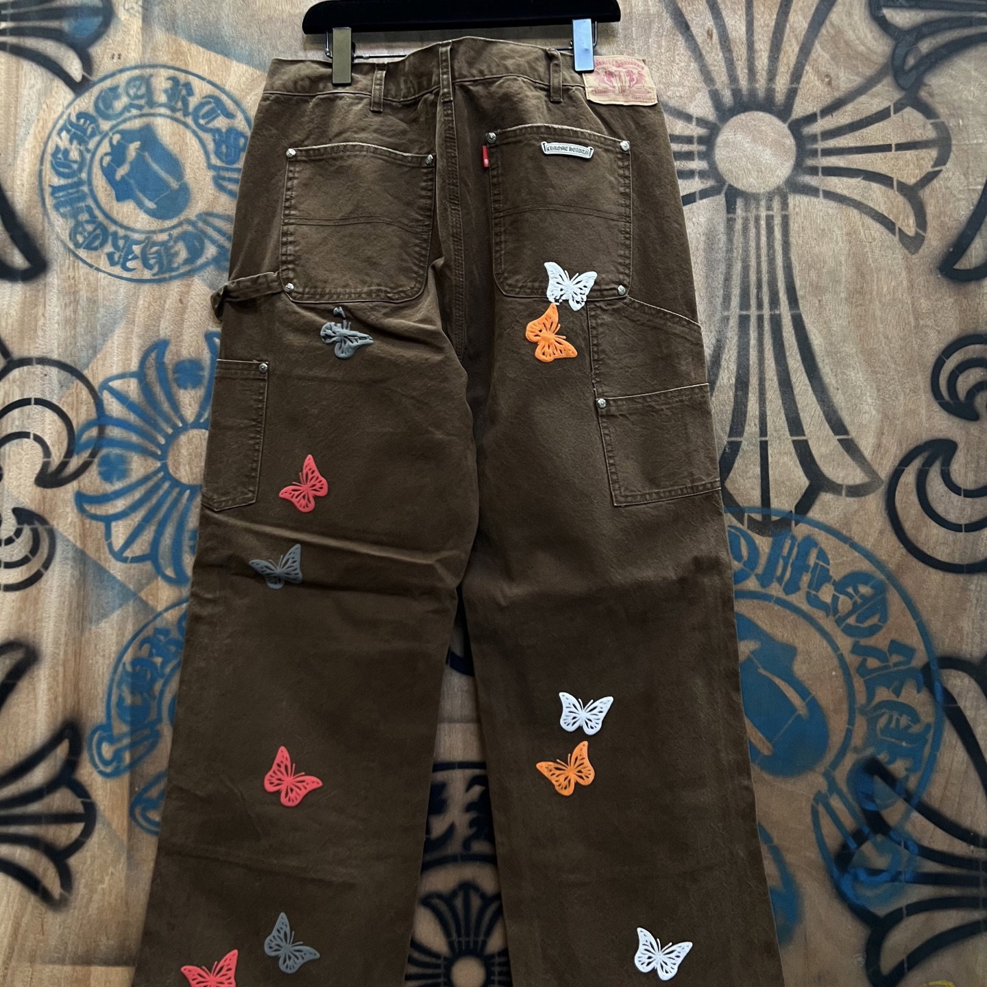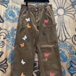 Chrome Hearts patch Print butterfly pattern loose casual DENIM JEANS coffee brown クロムハーツ アップリケ プリント ちょう パターン ゆったり カジュアル デニムパンツ コーヒーブラウン