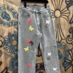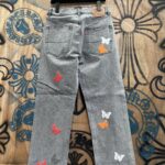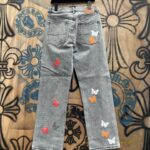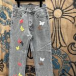 Chrome Hearts patch Print butterfly pattern loose casual DENIM JEANS Gray クロムハーツ アップリケ プリント ちょう パターン ゆったり カジュアル デニムパンツ グレー