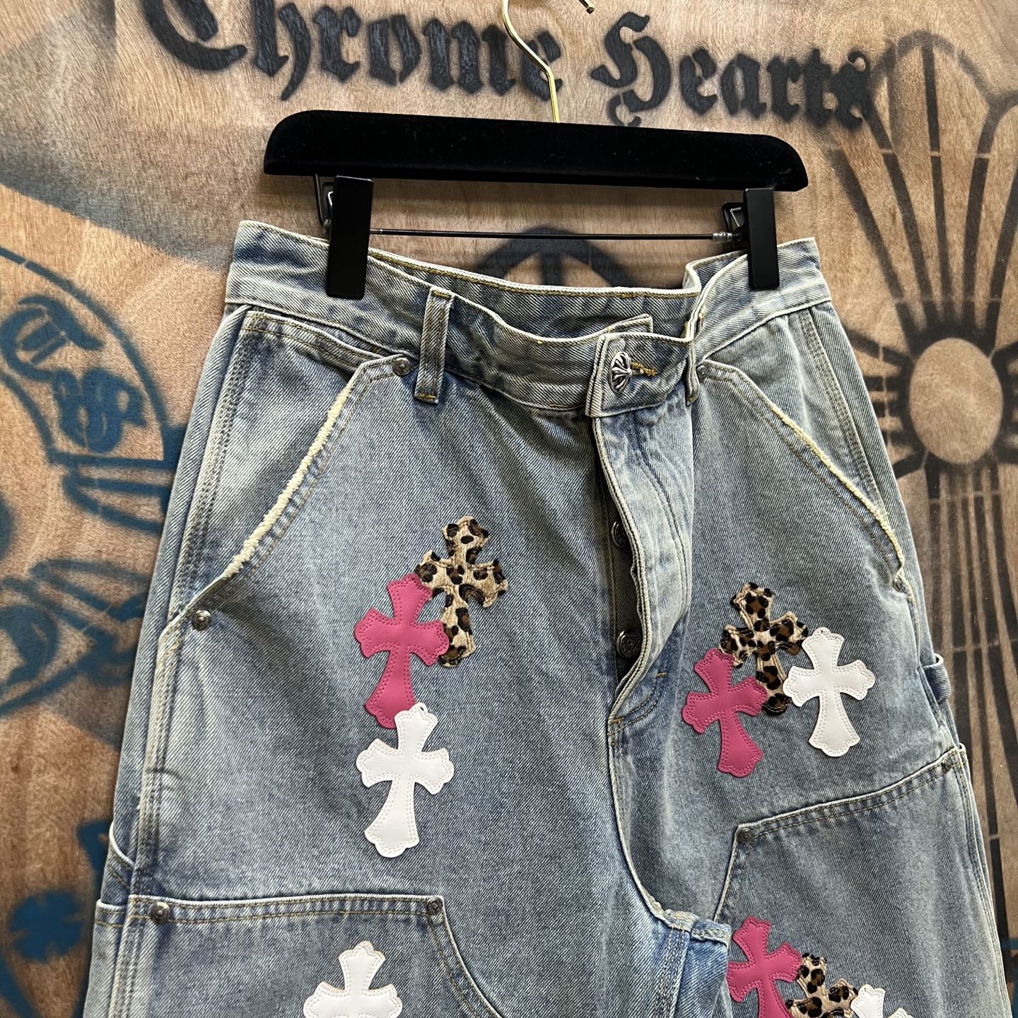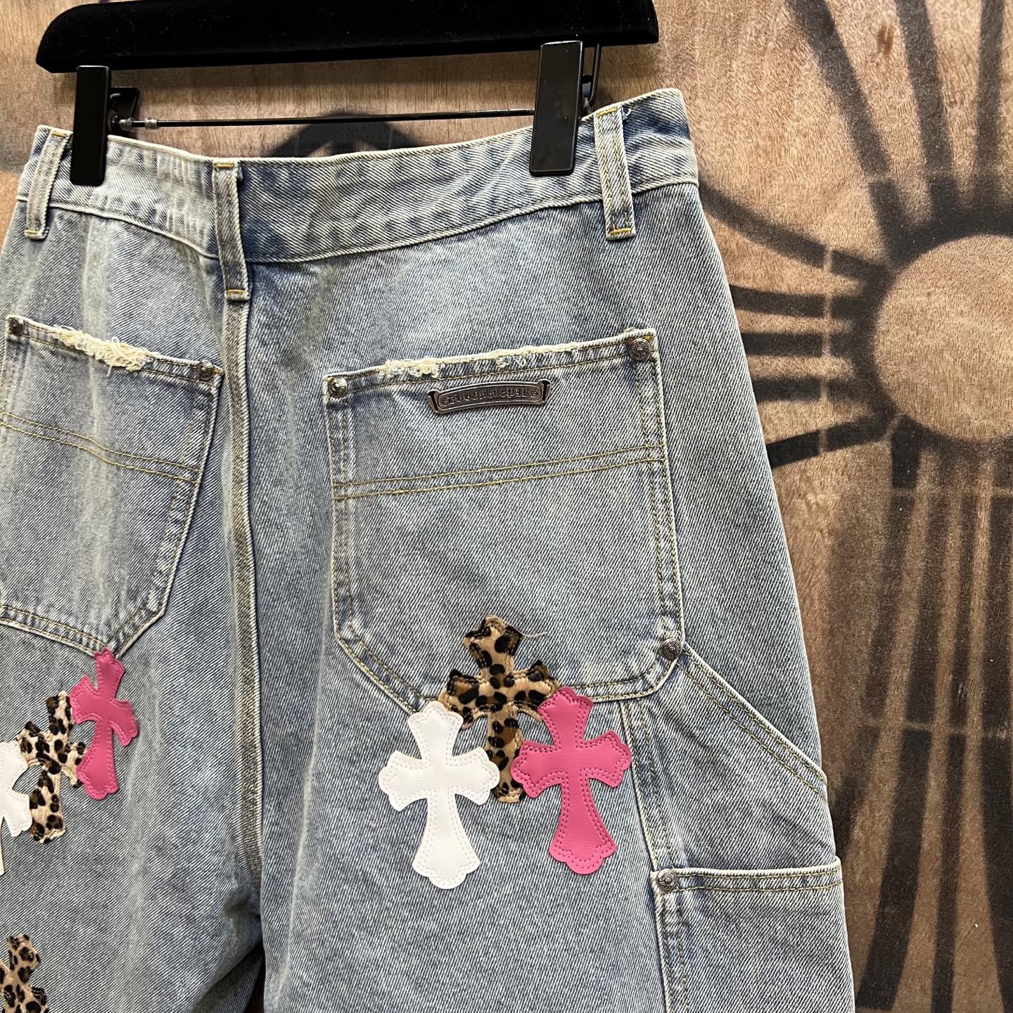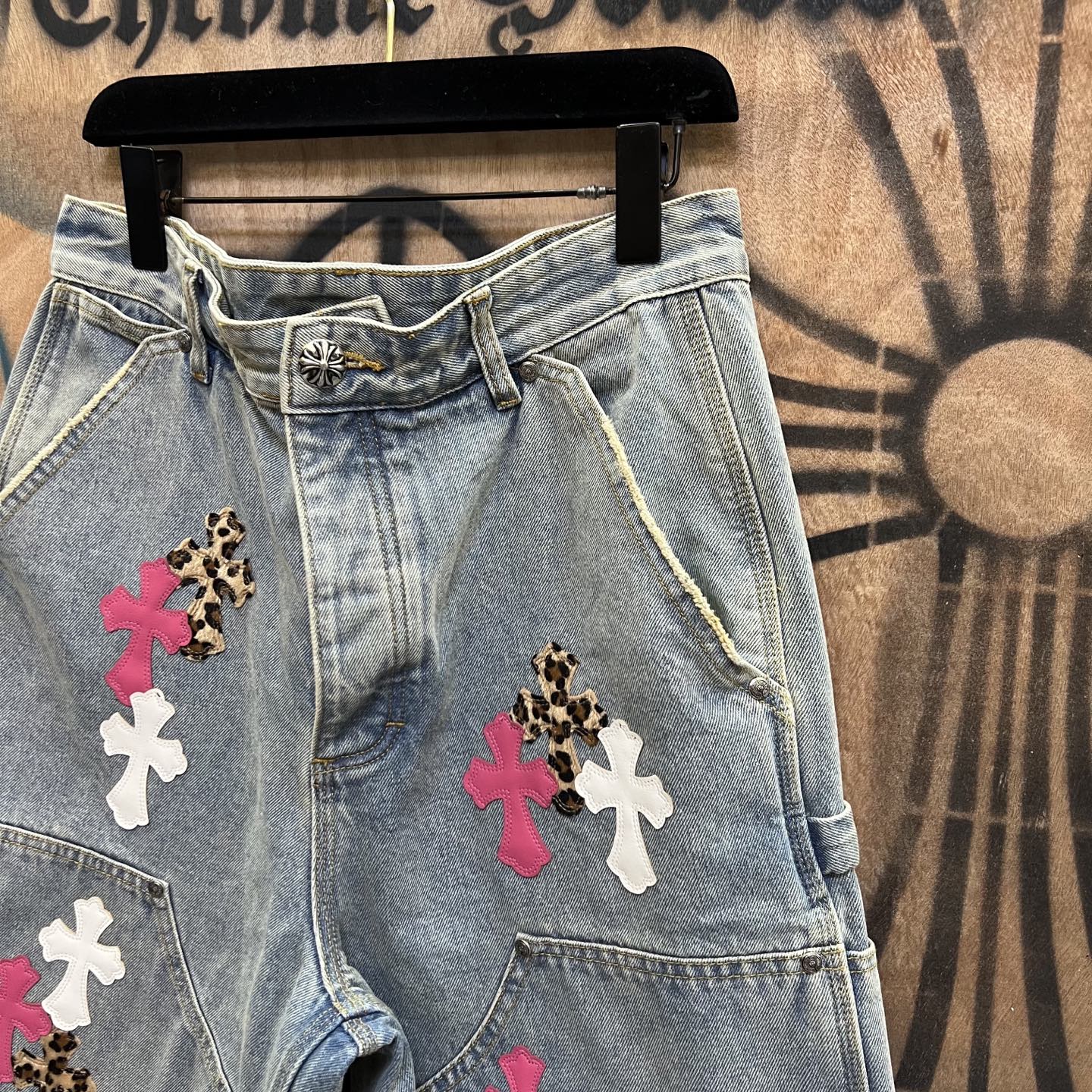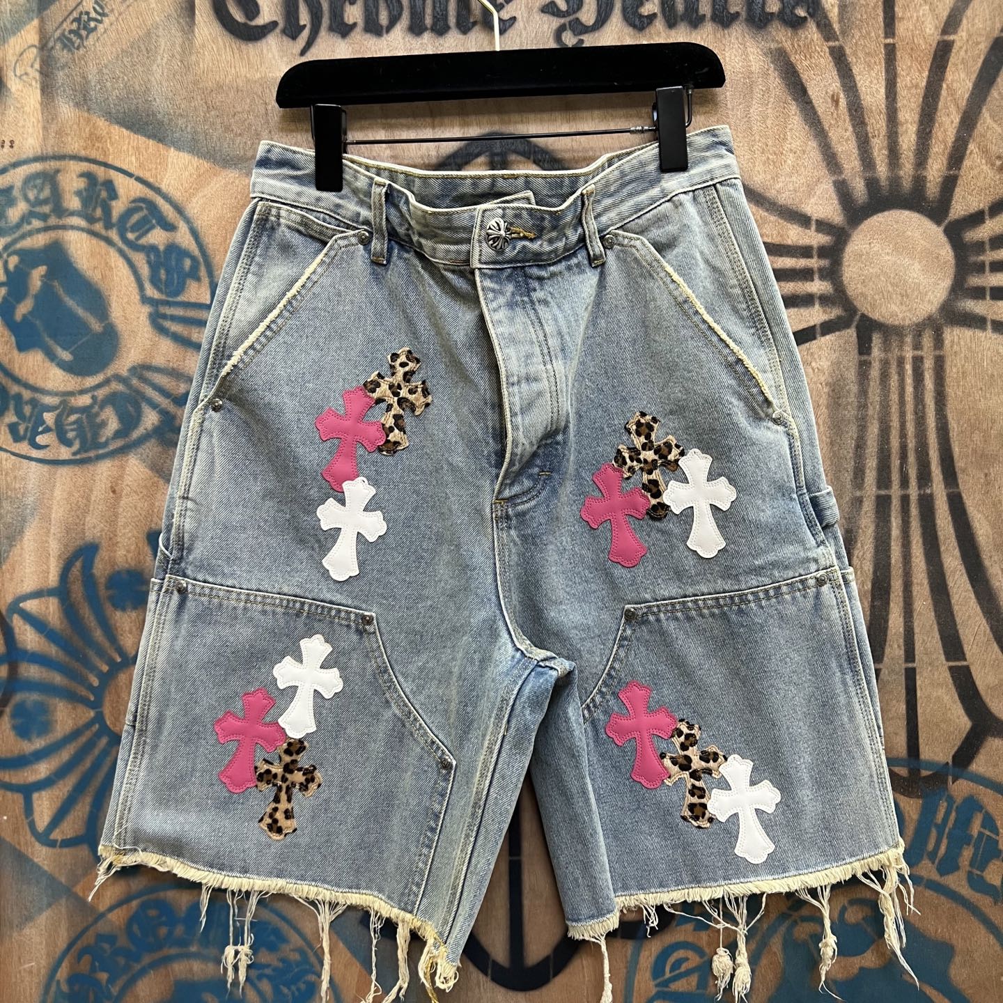 Chrome Hearts patch Print color pattern loose casual DENIM shorts クロムハーツ アップリケ プリント カラー パターン ゆったり カジュアル デニム ショーツ