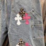 Chrome Hearts patch Print Red pattern loose casual DENIM JEANS coffee brown クロムハーツ アップリケ プリント レッド パターン ゆったり カジュアル デニムパンツ コーヒーブラウン