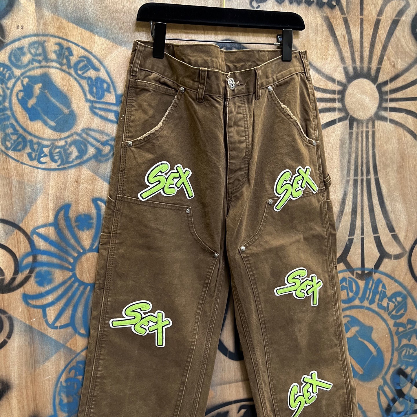 Chrome Hearts patch Print Green pattern loose casual DENIM JEANS coffee brown クロムハーツ アップリケ プリント グリーン パターン ゆったり カジュアル デニムパンツ コーヒーブラウン