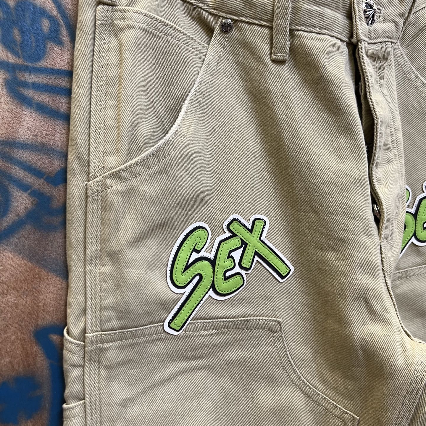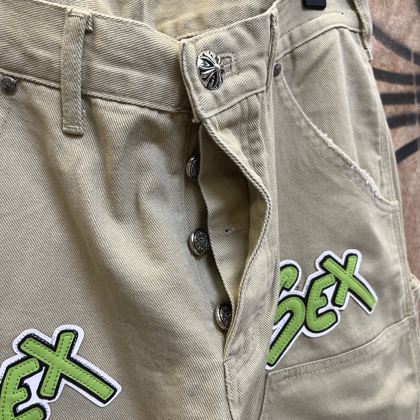 Chrome Hearts patch Print Green pattern loose casual DENIM JEANS クロムハーツ アップリケ プリント グリーン パターン ゆったり カジュアル デニムパンツ