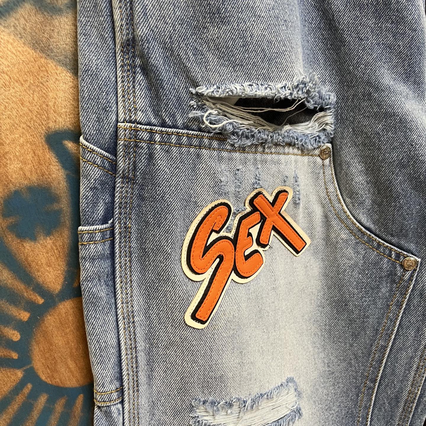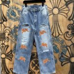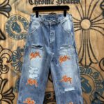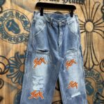 Chrome Hearts patch Print orange pattern loose casual DENIM JEANS Blue クロムハーツ アップリケ プリント オレンジ色 パターン ゆったり カジュアル デニムパンツ ブルー