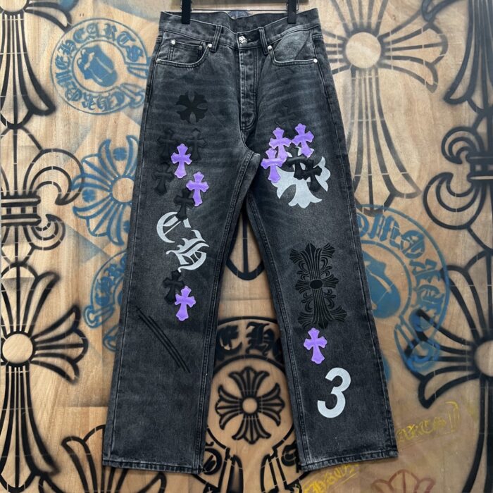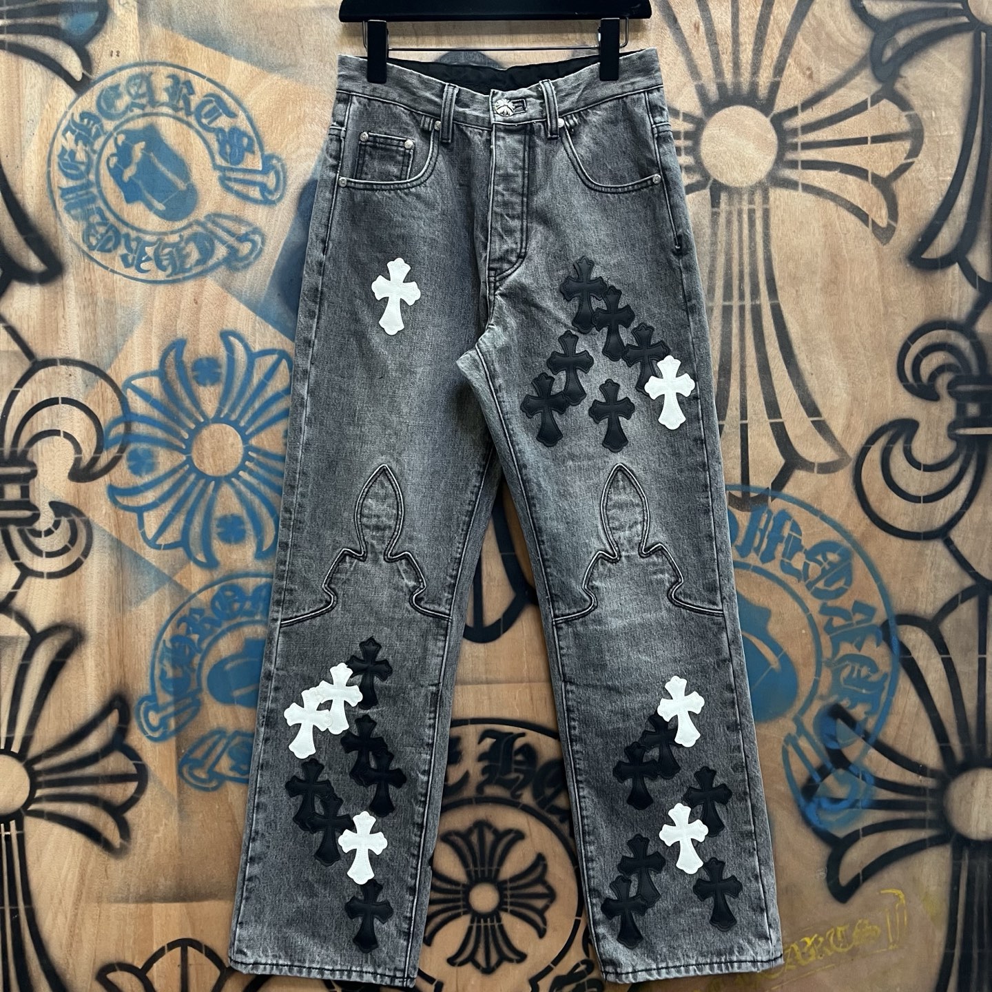 Chrome Hearts patch Print pattern loose casual DENIM JEANS クロムハーツ アップリケ プリント パターン ゆったり カジュアル デニムパンツ