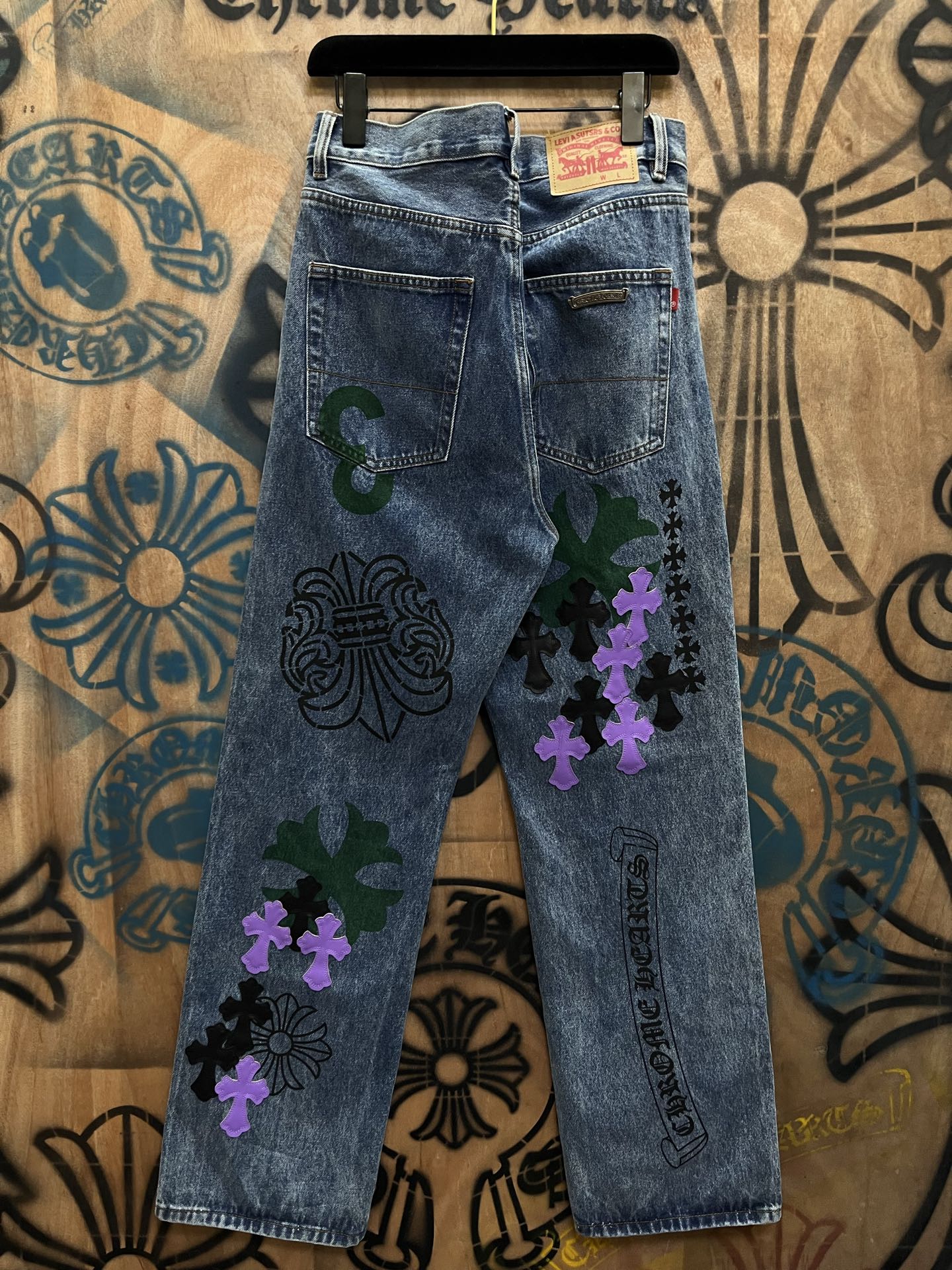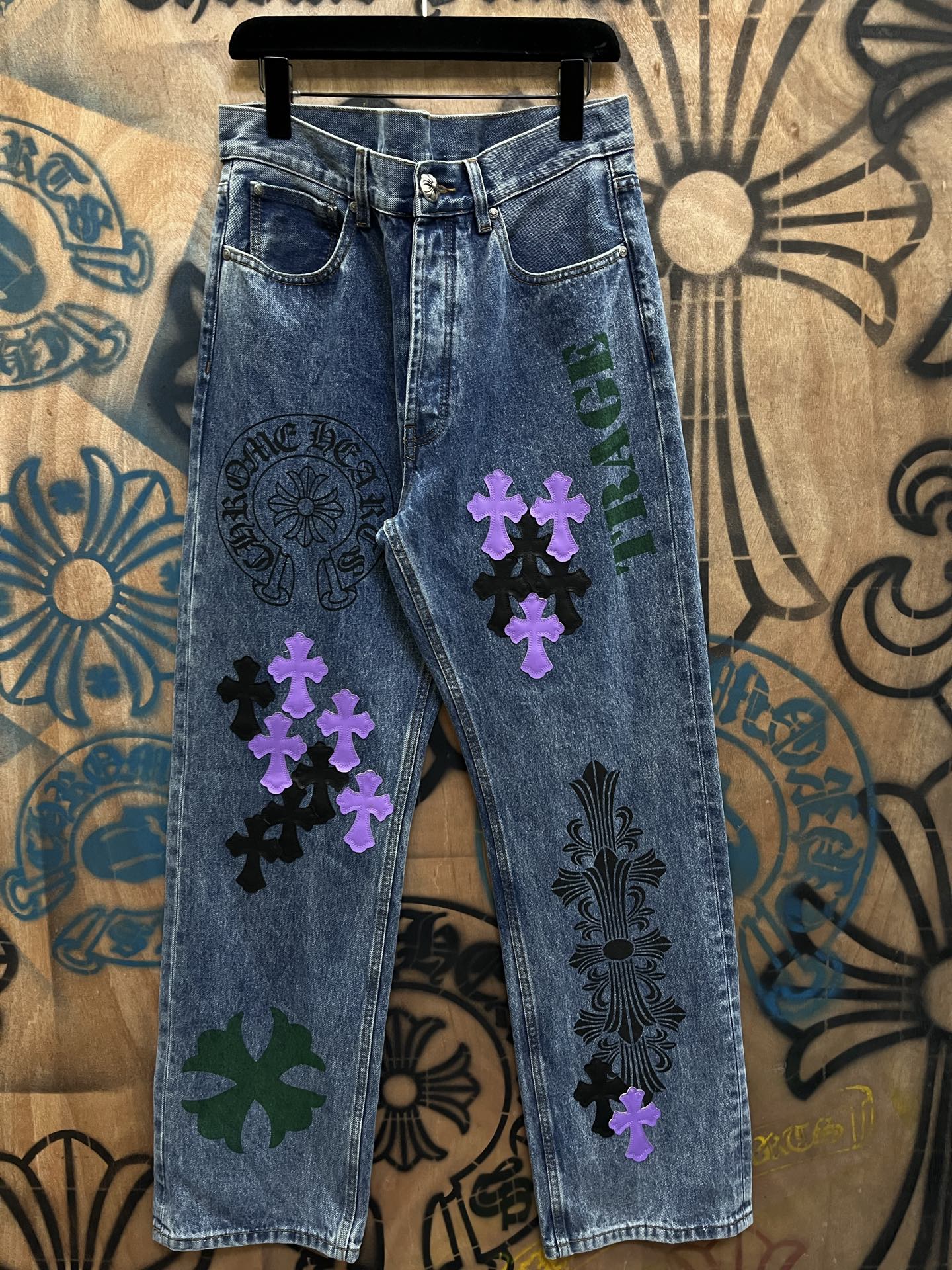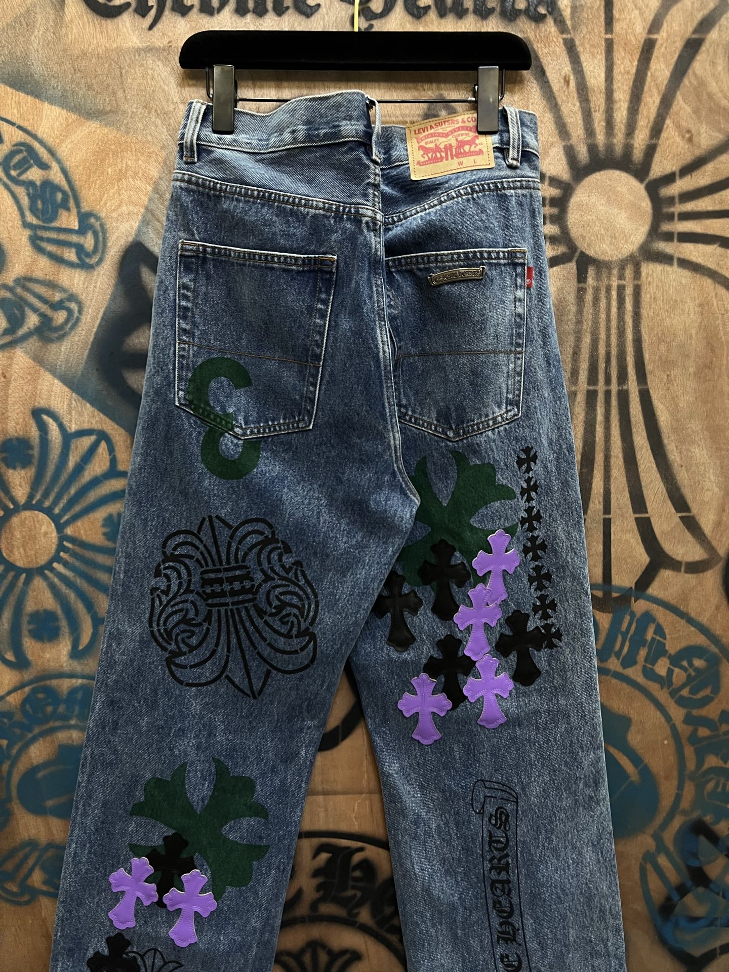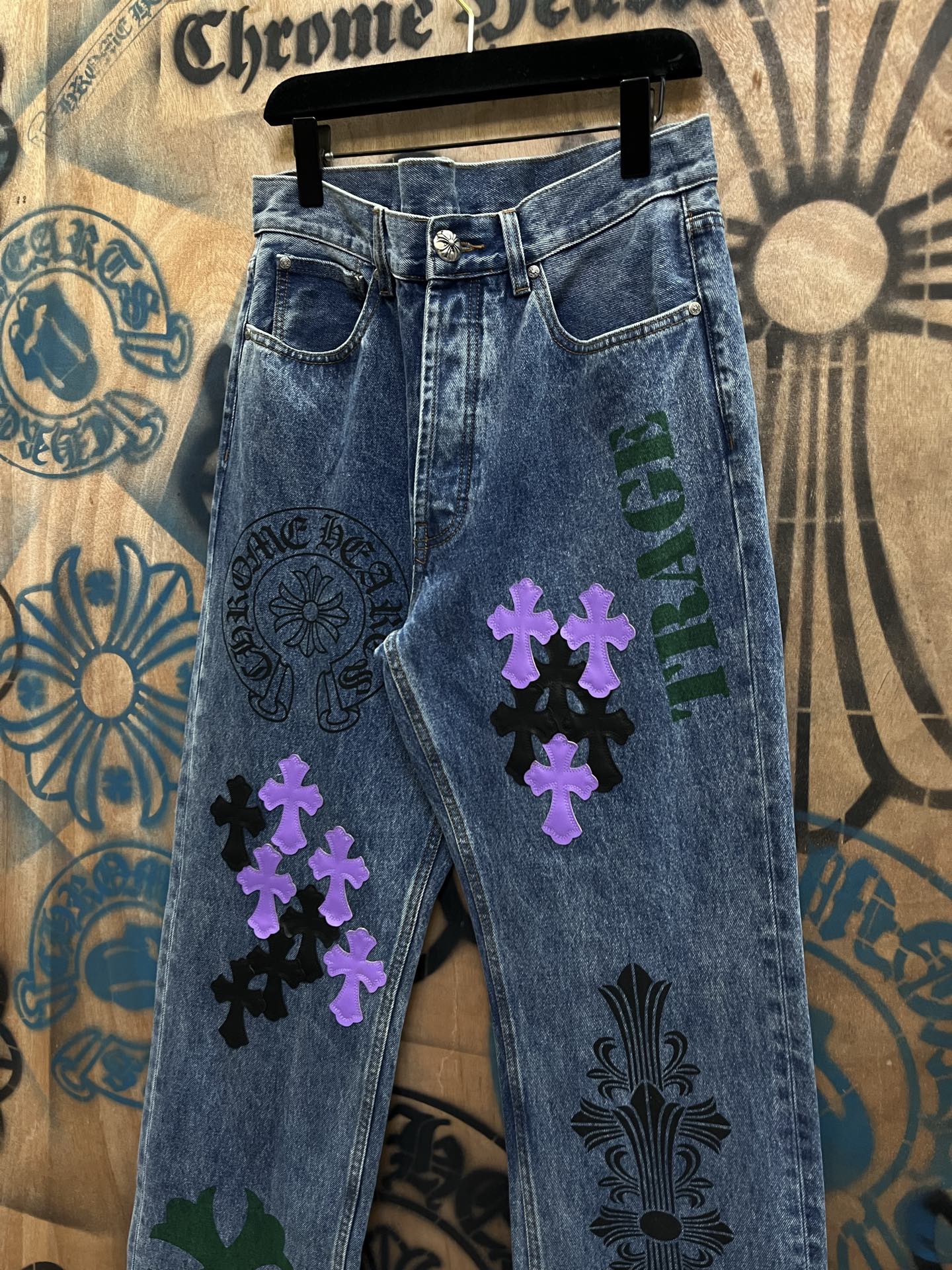 Chrome Hearts patch Print pattern loose casual DENIM JEANS クロムハーツ アップリケ プリント パターン ゆったり カジュアル デニムパンツ
