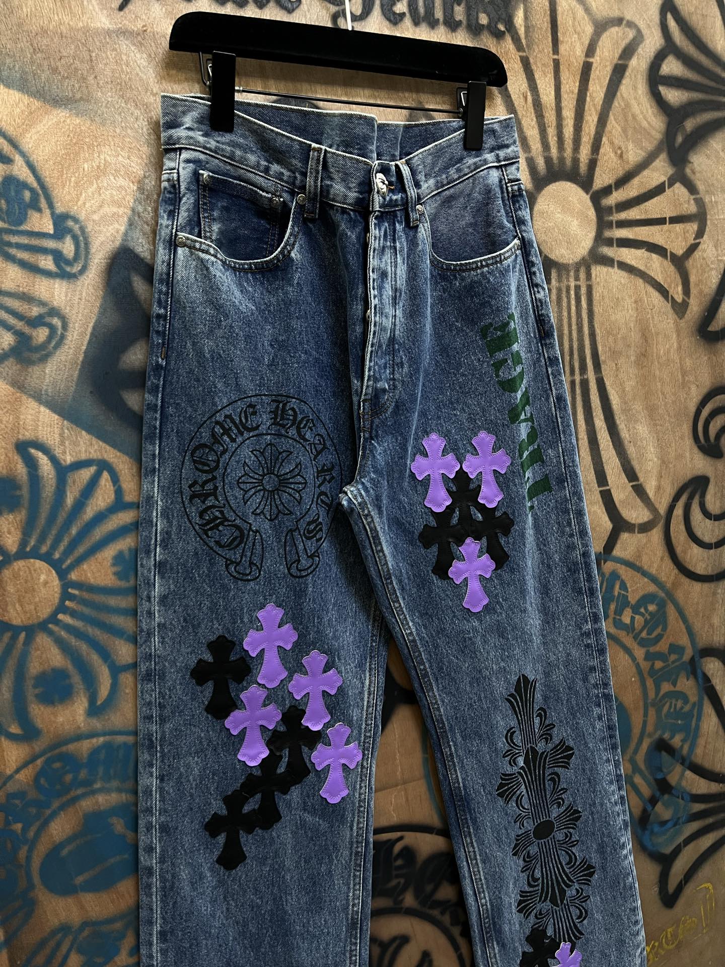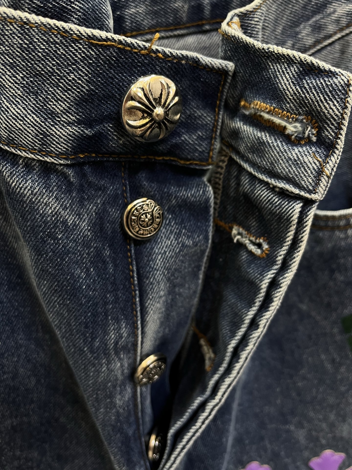 CHROME HEARTS Embroidery pattern DENIM JEANS Blue クロムハーツ 刺繍 パターン デニムパンツ ブルー